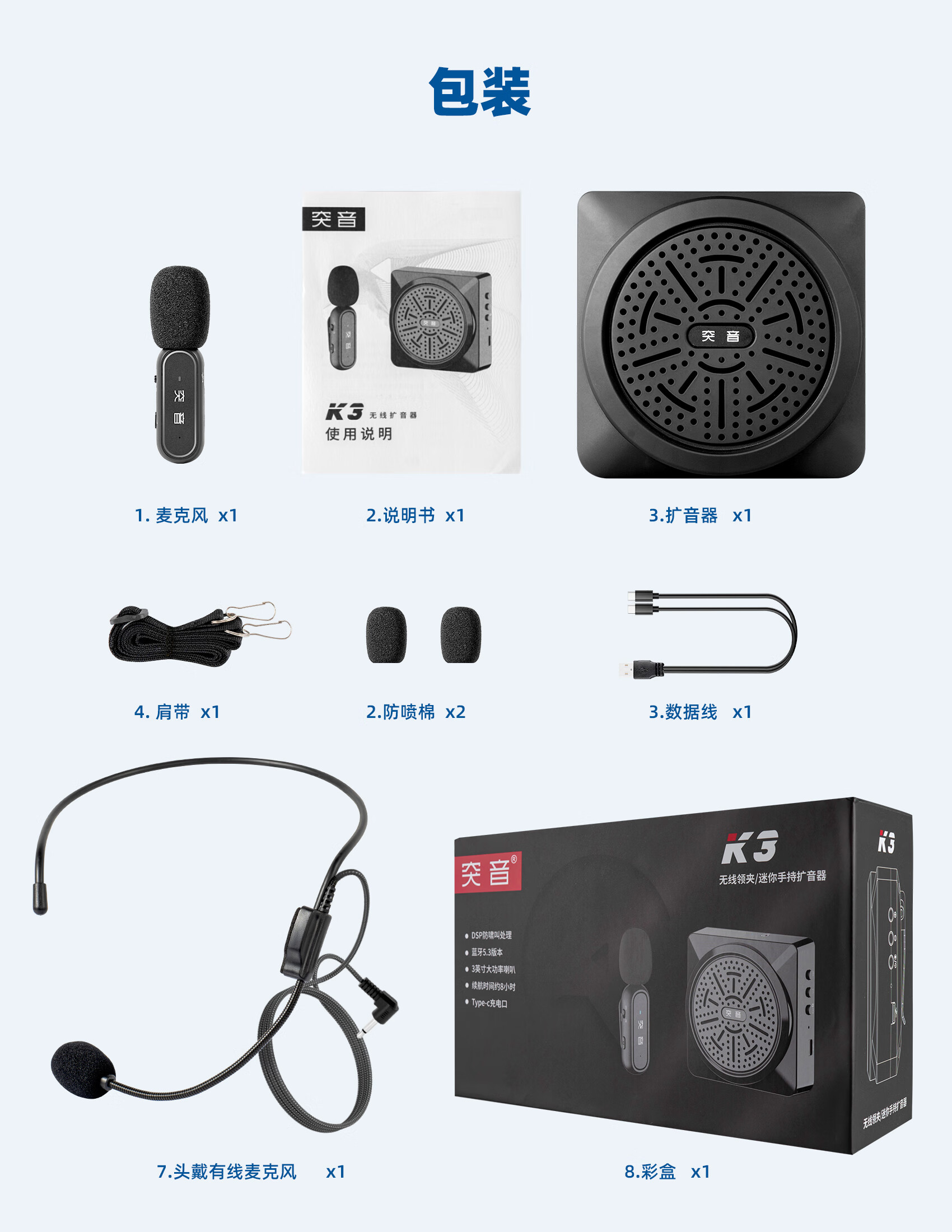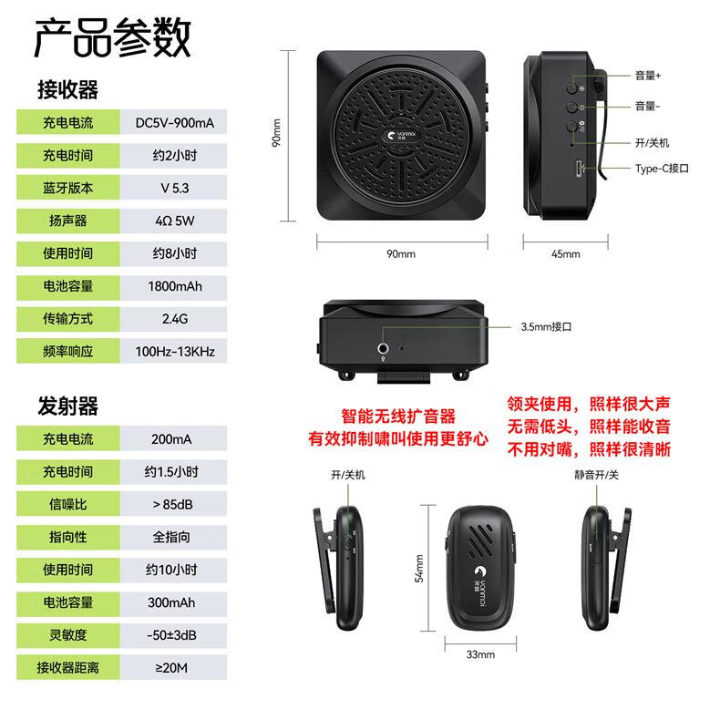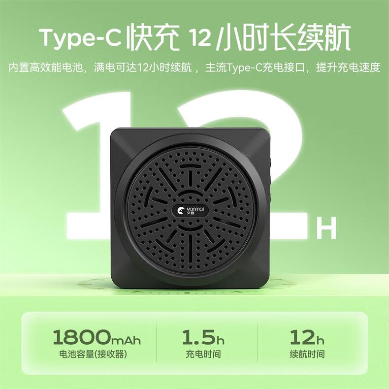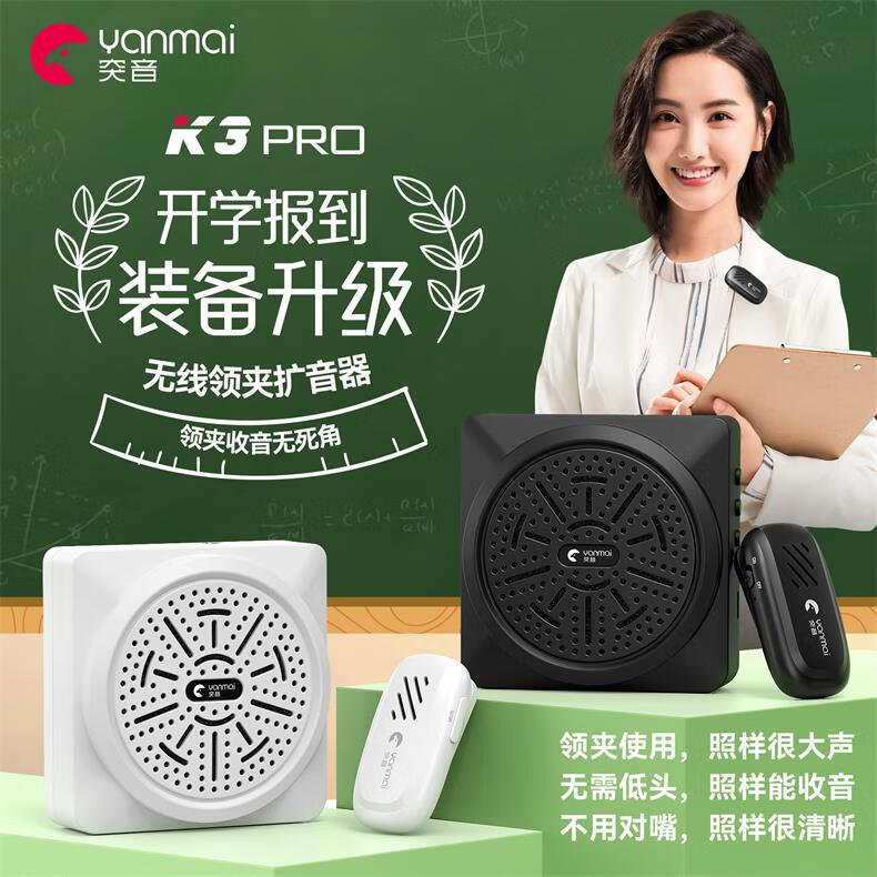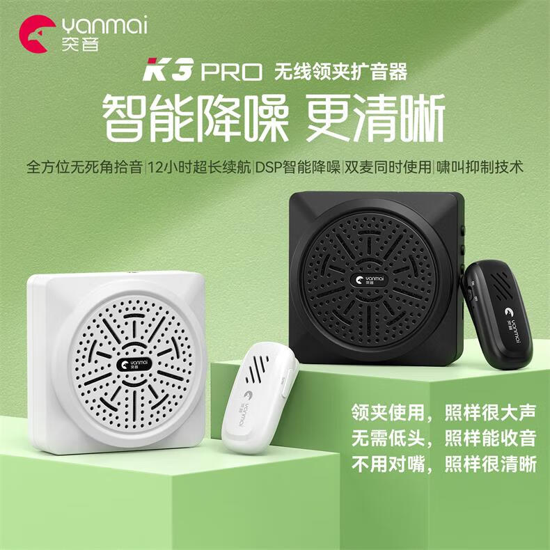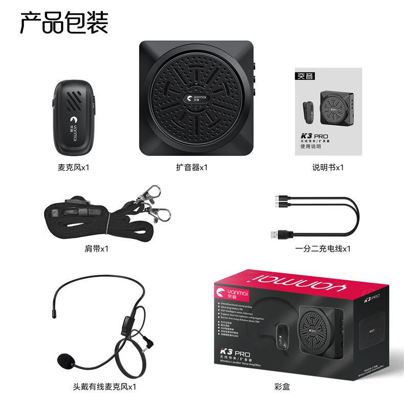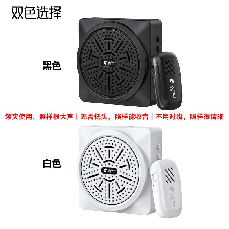 Yanmai【无啸叫】无线麦克风领夹式小蜜蜂教师专用无线扩音器教师上课会议话筒大音量降噪演讲导游扩音机 黑色】无线领夹扩音器+有线耳麦
