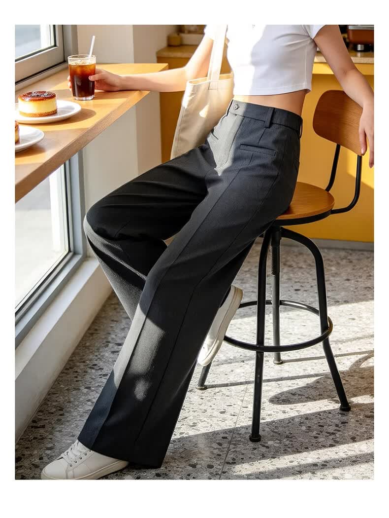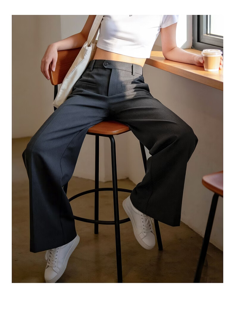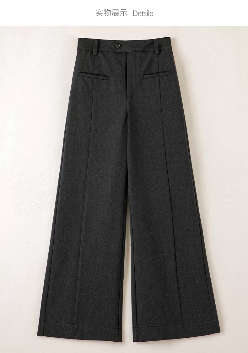 晚白【新品】2026春款经典高腰显瘦垂顺利落气质干练直筒裤女 深灰色 29