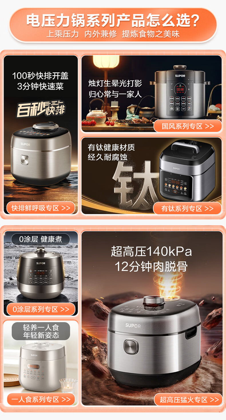 苏泊尔(SUPOR)0涂层有钛球釜电压力锅5L双胆全自动智能预约 触控SY-50YC5322Q电饭煲高压锅4-6人