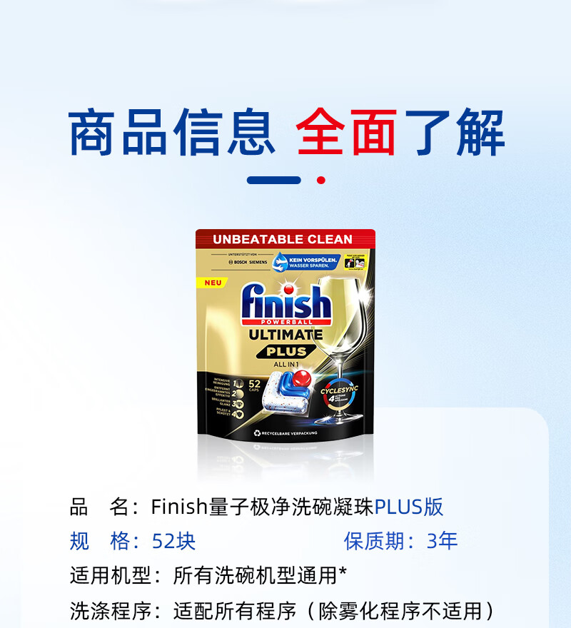亮碟(finish)洗碗机用洗碗凝珠洗碗块升级洗涤剂洗碗粉耗材 PLUS版原味52颗