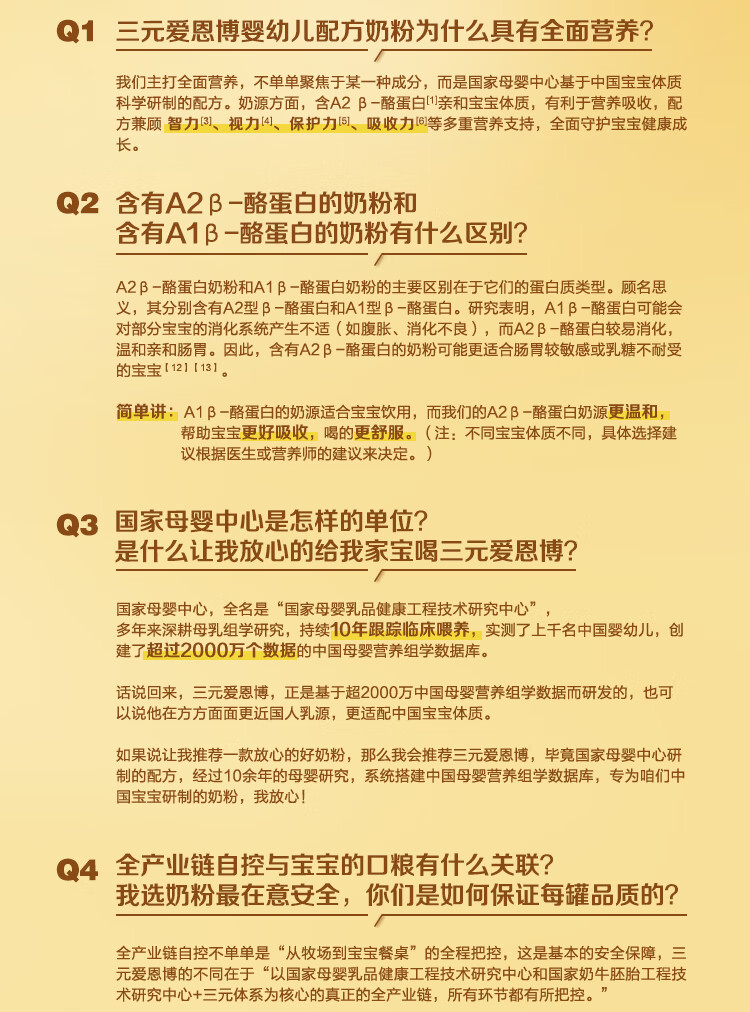三元(SAN YUAN)【A2奶源】爱多恩爱恩博幼儿配方奶粉3段(12-36月)800g/罐