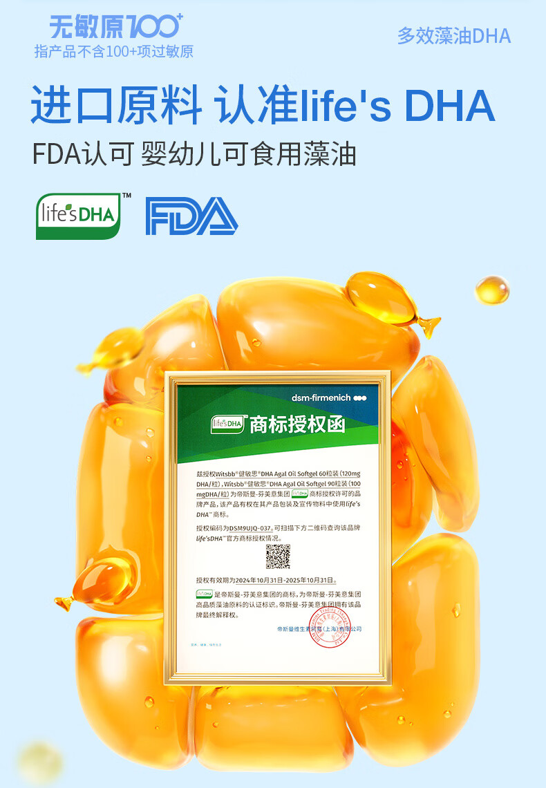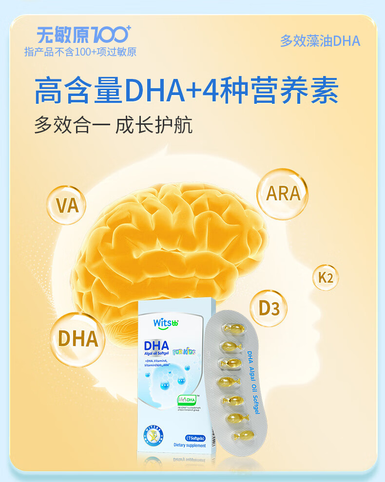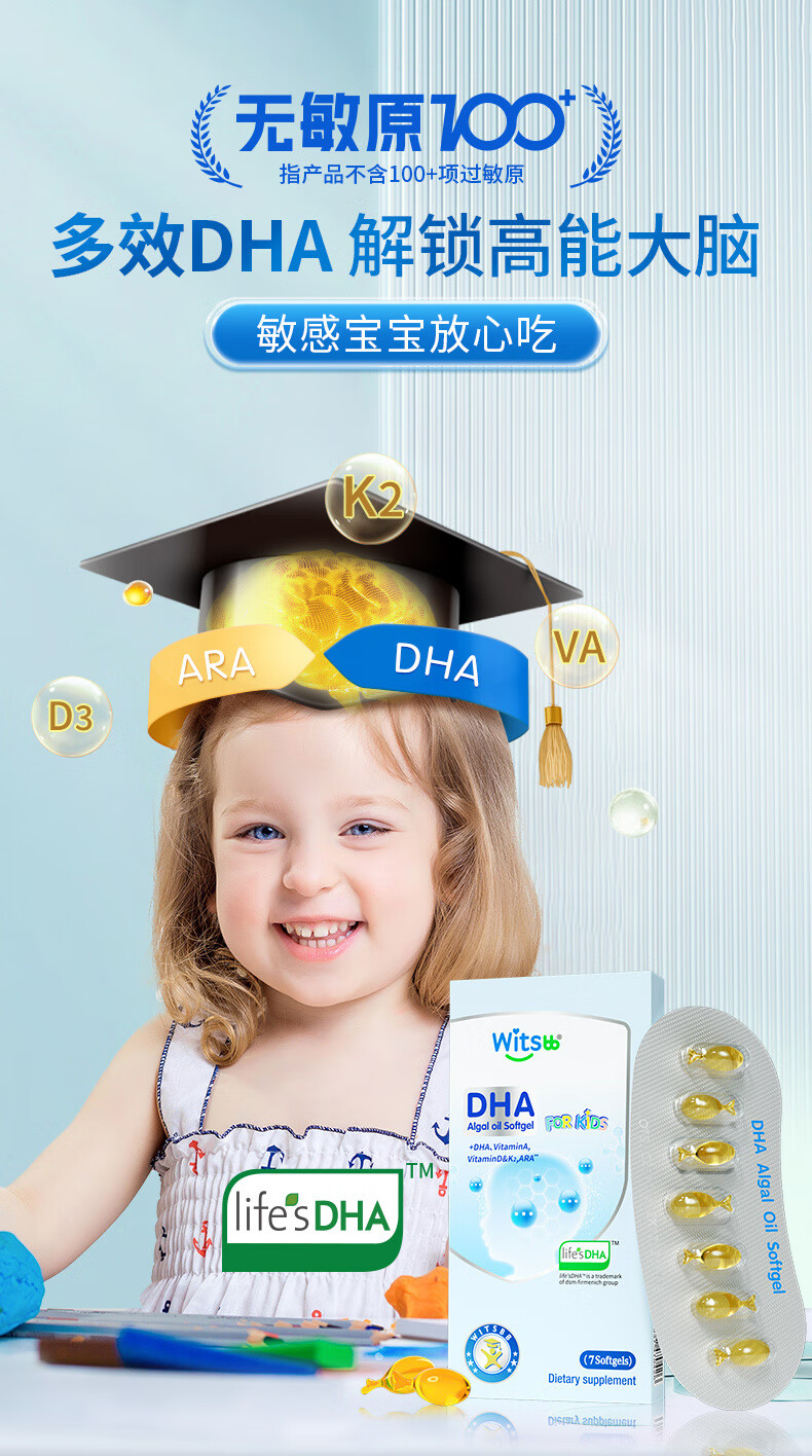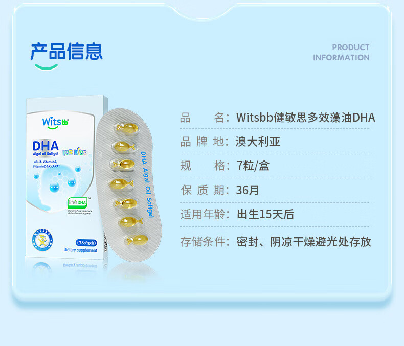 witsbb多效藻油健敏思DHA含ARA尝鲜装宝宝儿童敏宝专研 7粒装
