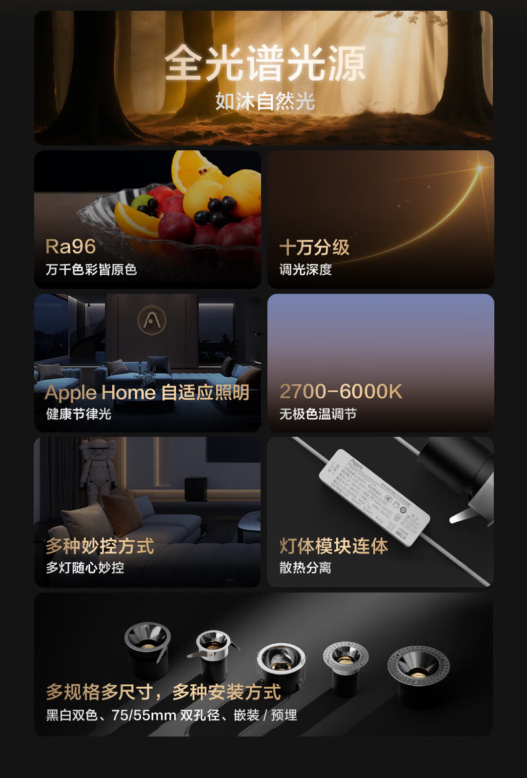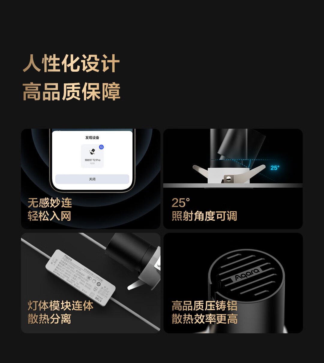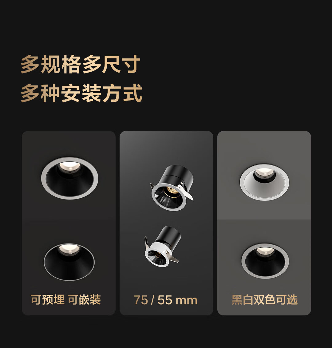 Aqara智能照明防眩筒射灯T2Pro智能控制吊顶灯自适应照明已接入HomeKit 射灯 T2 Pro(75mm/36°/12w/黑色反光罩/非预埋)