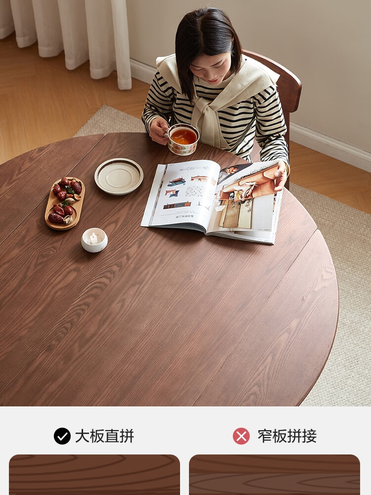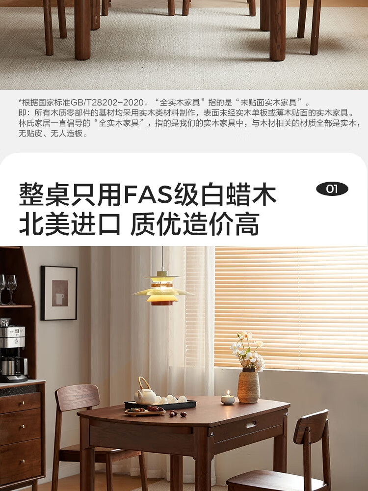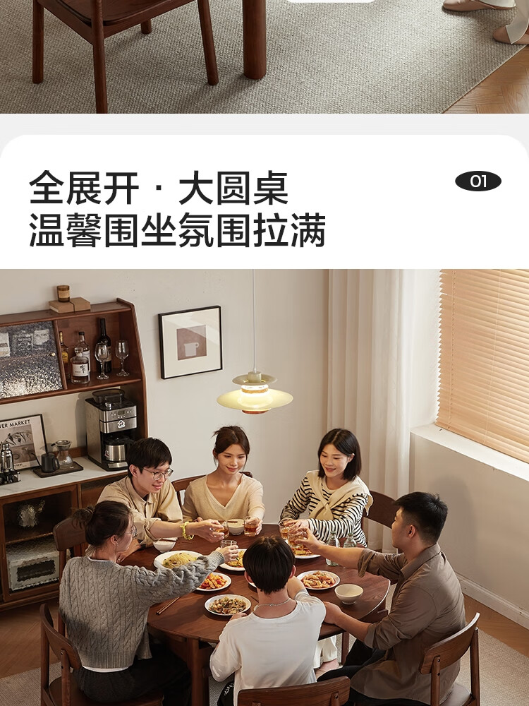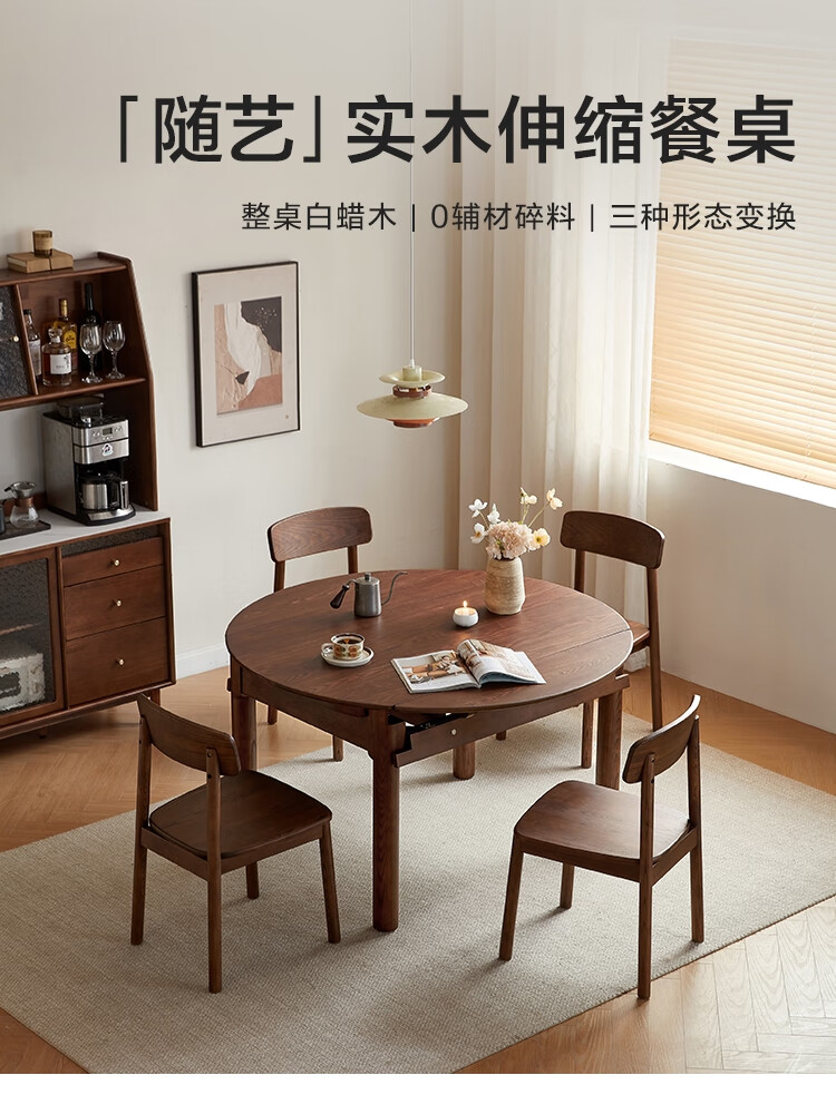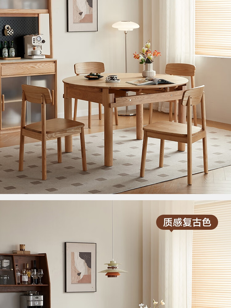 林氏家居全实木餐桌可伸缩圆桌白蜡木饭桌家用2025新款小户型木业LH254R6 【1.5m|复古色】餐桌+实木餐椅*6
