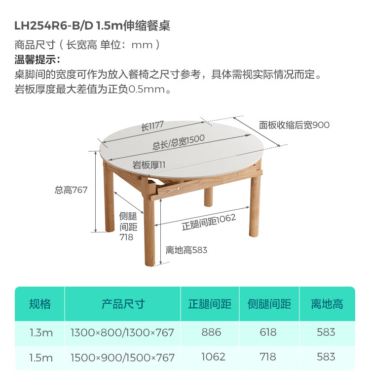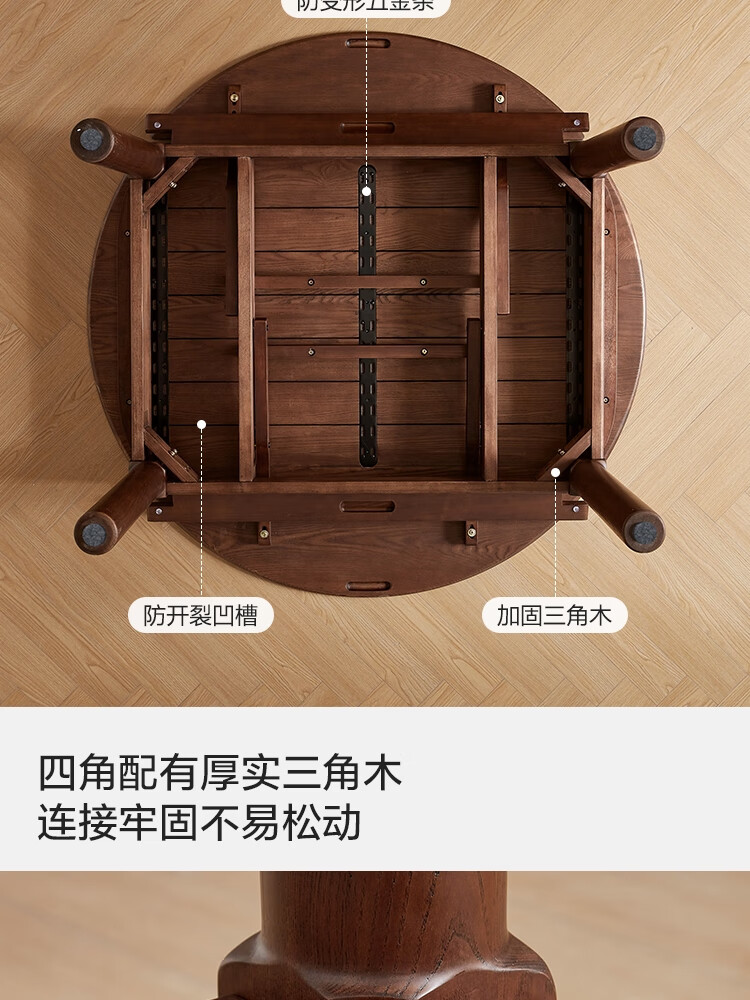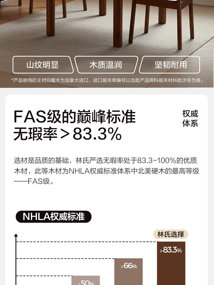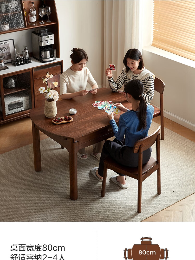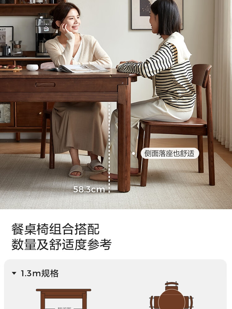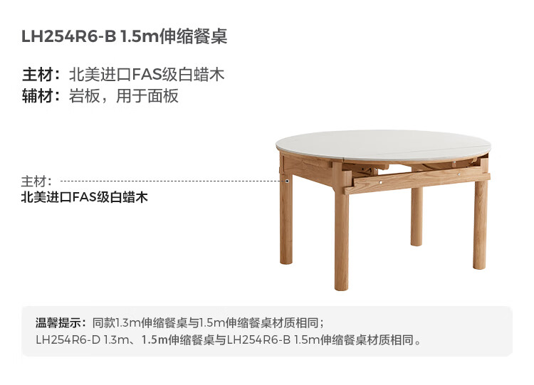 林氏家居全实木餐桌可伸缩圆桌白蜡木饭桌家用2025新款小户型木业LH254R6 【1.5m|复古色】餐桌+实木餐椅*6