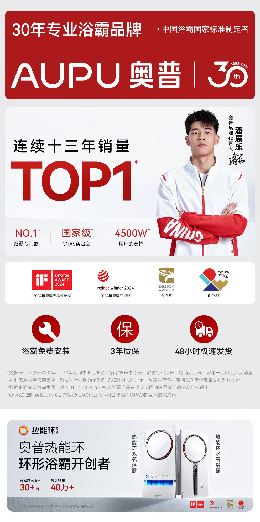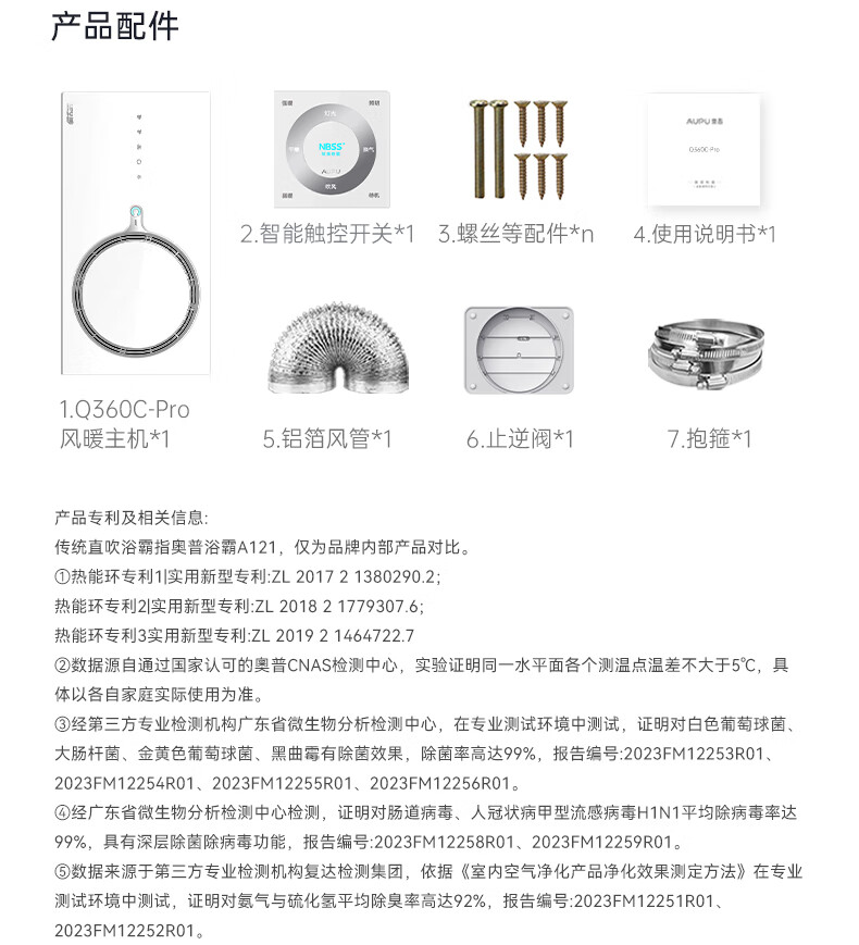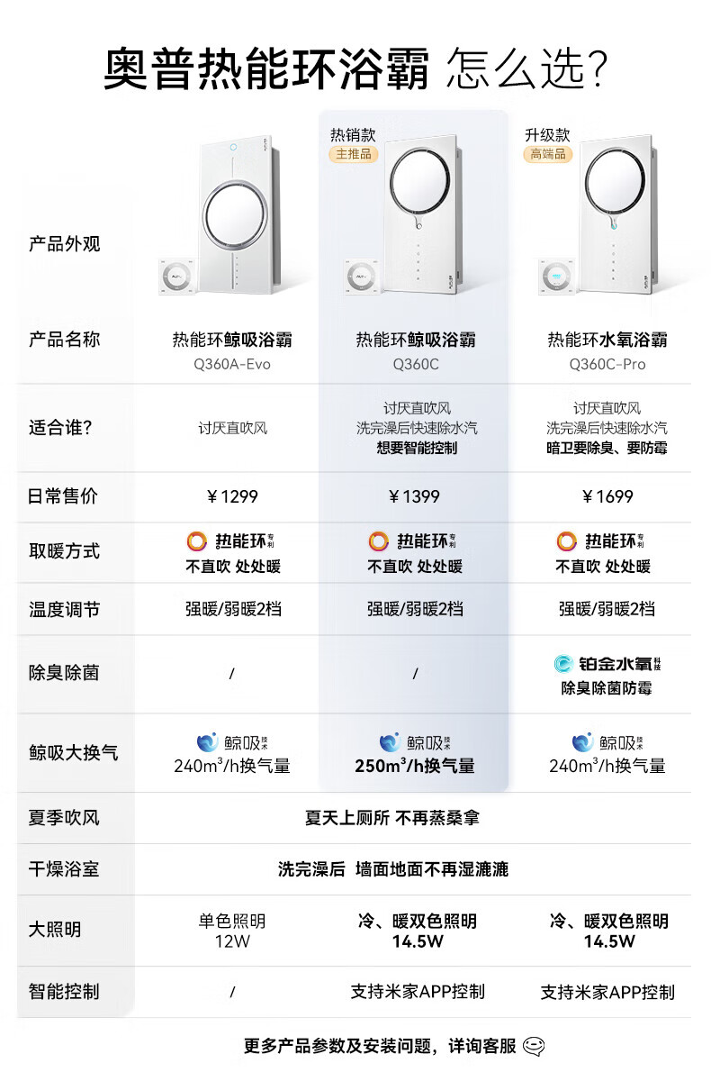 奥普【国家补贴】热能环水氧浴霸Q360Cpro两档速暖除臭除菌照明换气