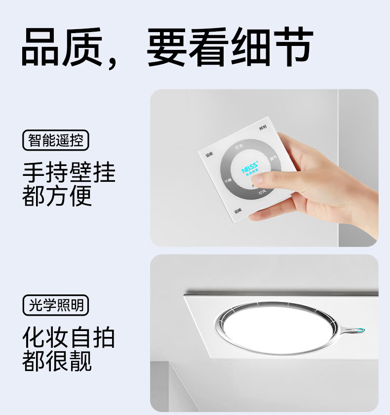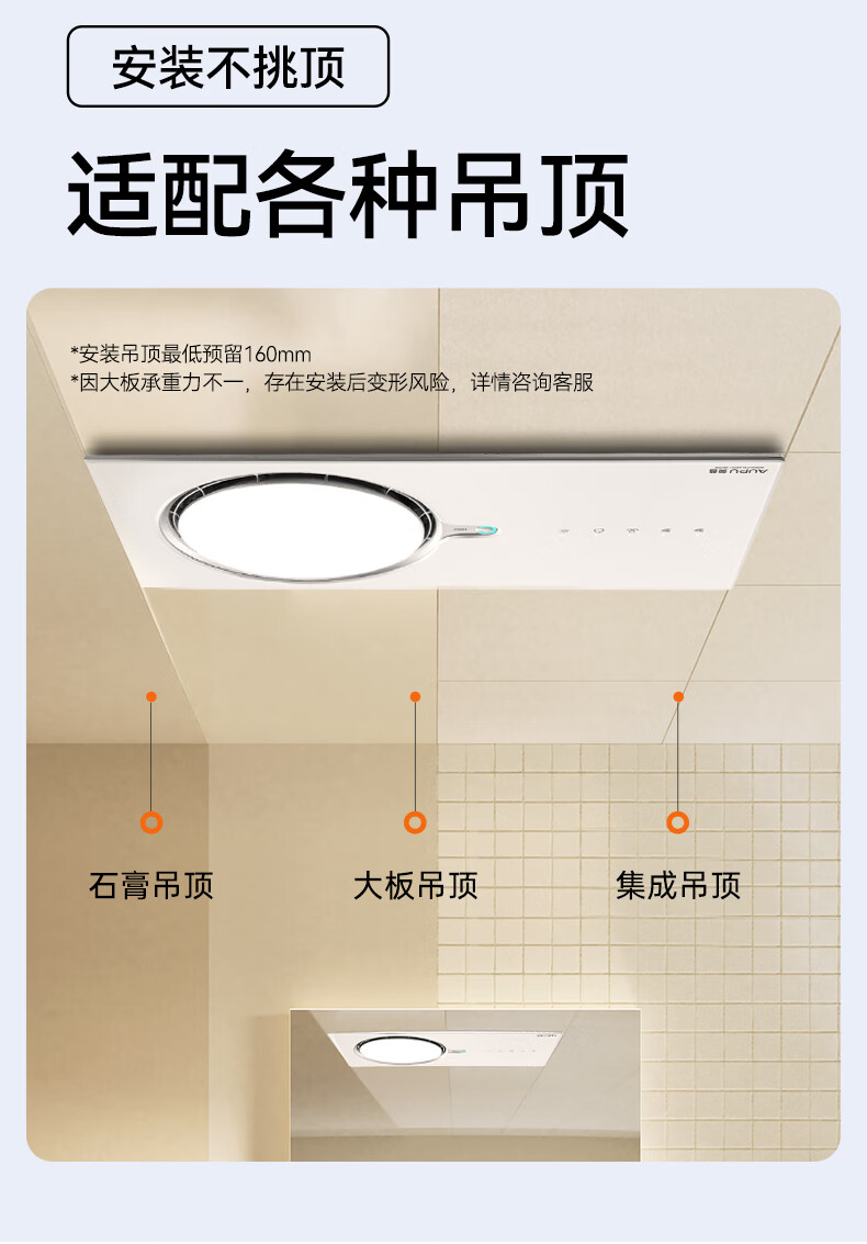 巴洛斯顿免检修口线性风暖型浴霸除菌浴室卫生间蜂窝石膏大板吊顶取暖排气 U1奶油白免检修口