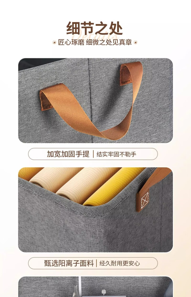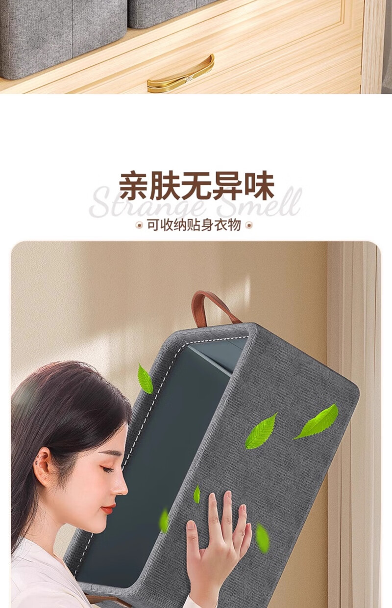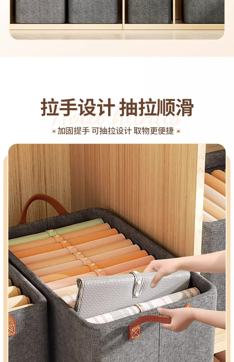 京东物流 布艺衣物收纳箱子卧室收纳神器拉链式超大容量收纳盒 银河灰【1个装-单视窗】甄选棉麻面料/加粗钢架 72#【长50*宽40*高33cm】约装衣服110件/秋冬衣物12件