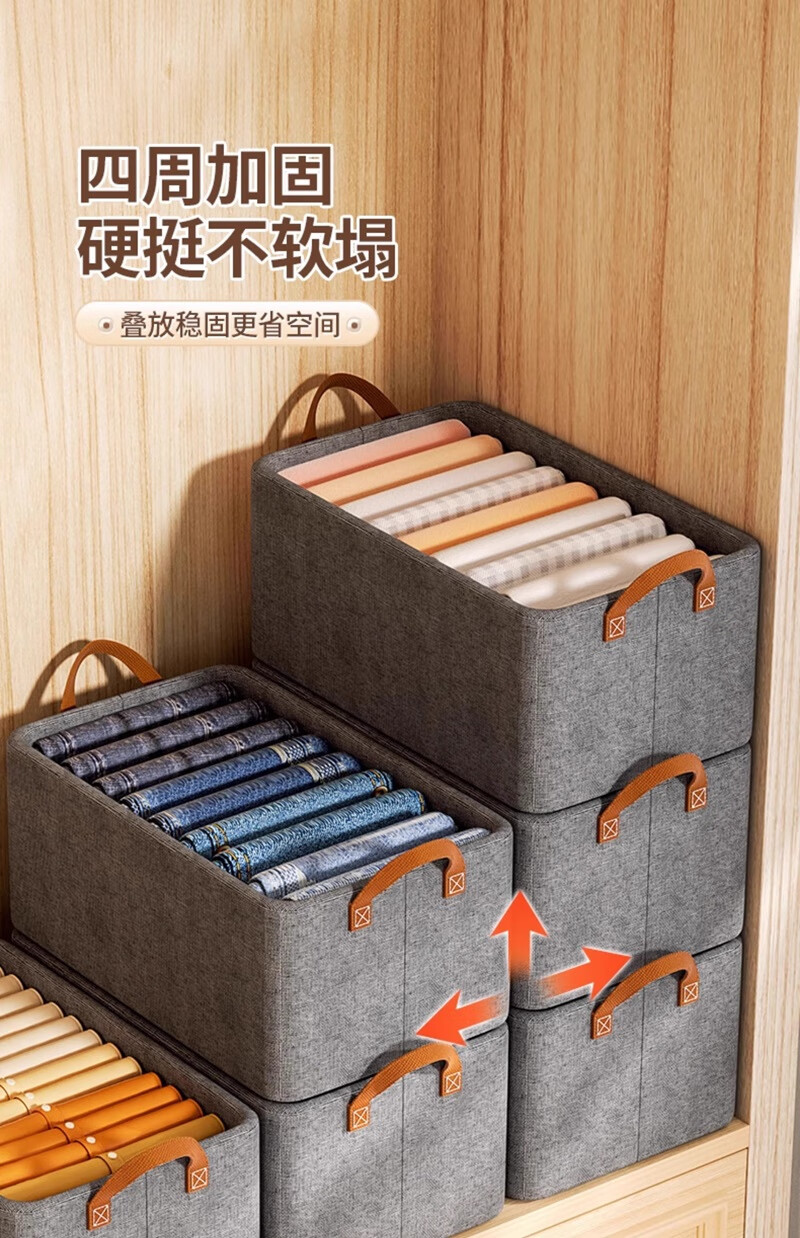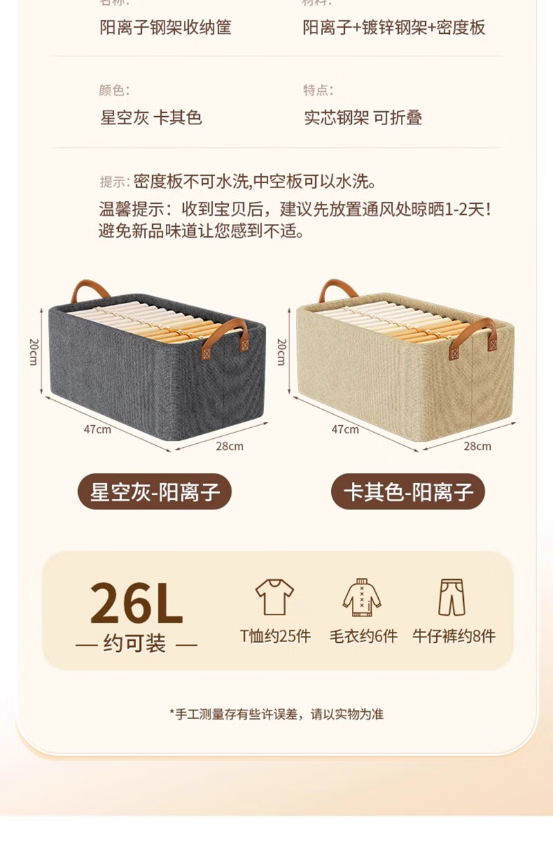 京东物流 阳离子收纳箱可折叠衣柜收纳神器家用衣物裤子收纳盒 星空灰 【镀锌钢架丨双层加厚】 【一个装】