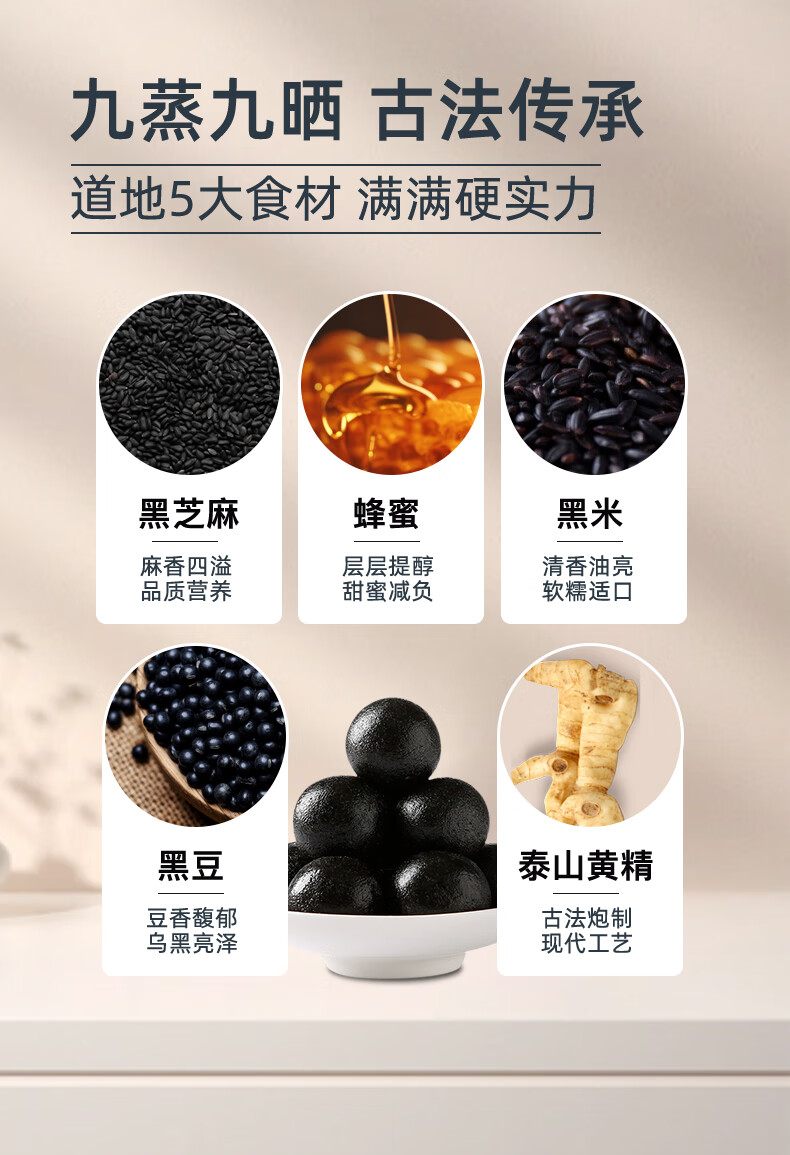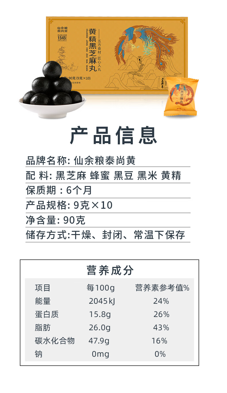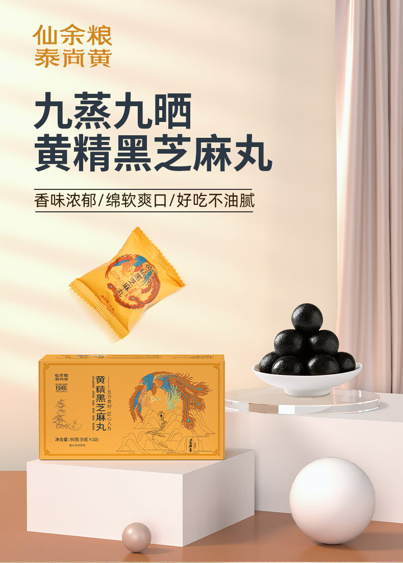 仙余粮泰尚黄泰山特产黄精黑芝麻丸9g*10粒 九蒸九晒滋补代餐即食零食 黄精黑芝麻丸 9g*10包 /盒