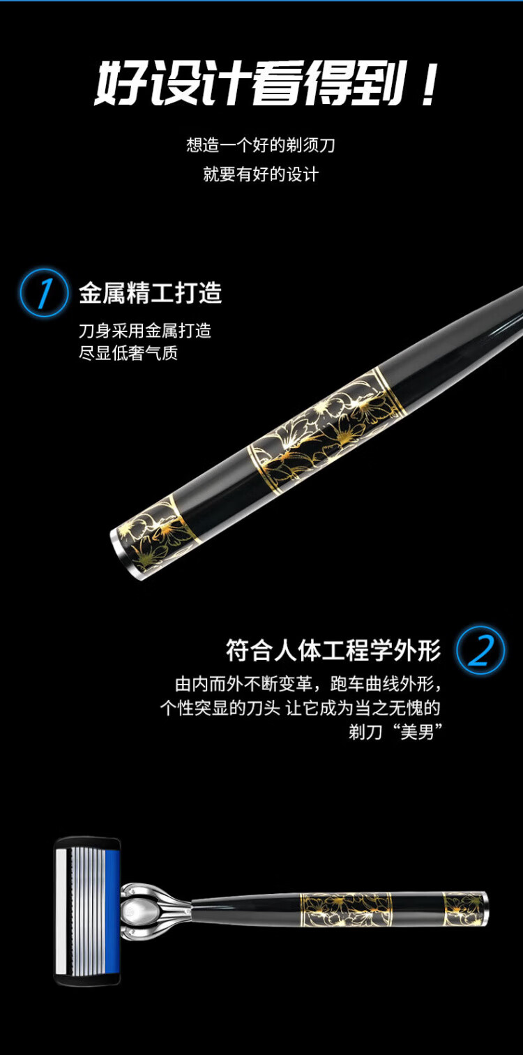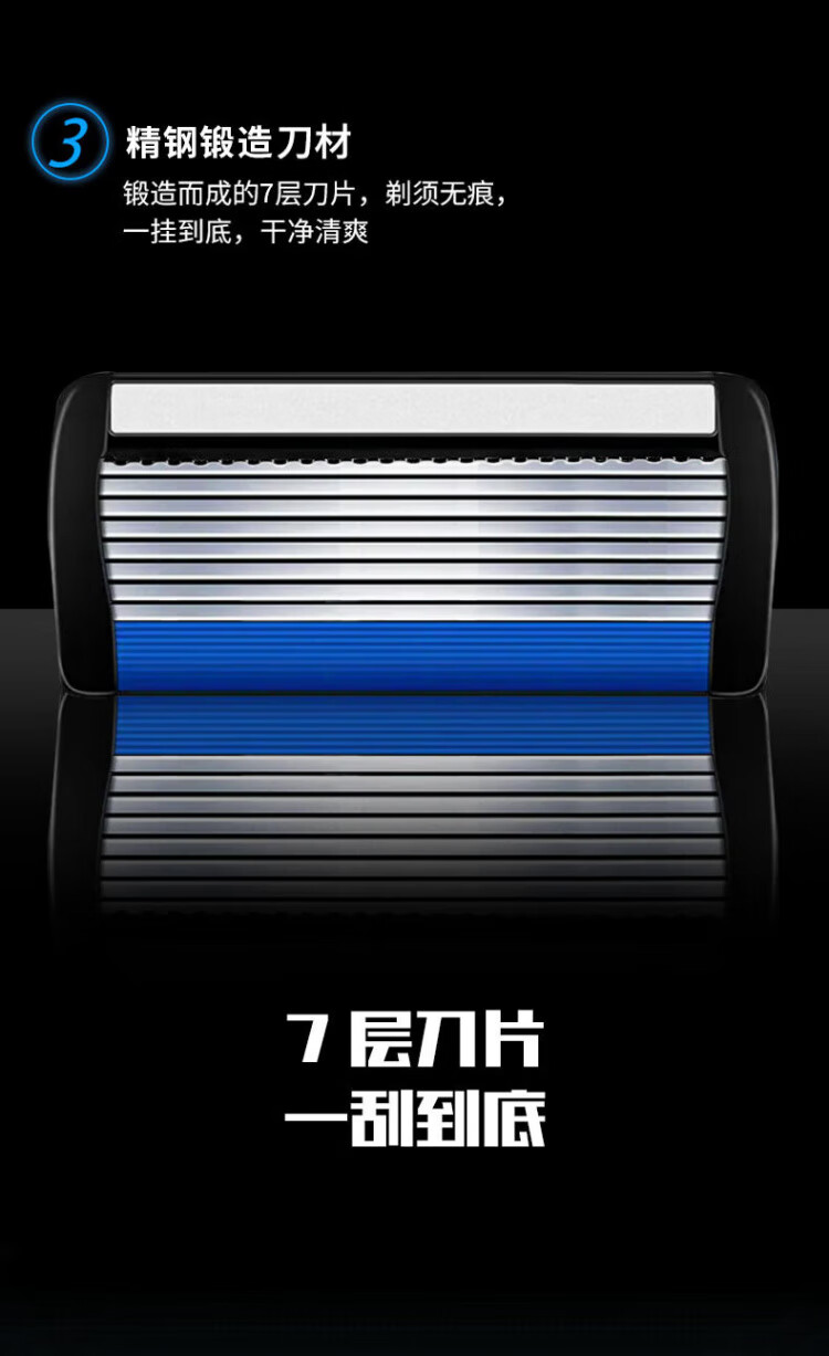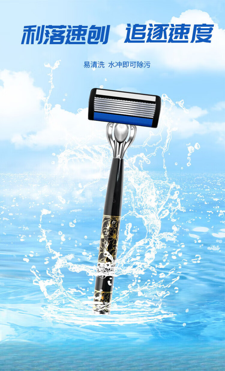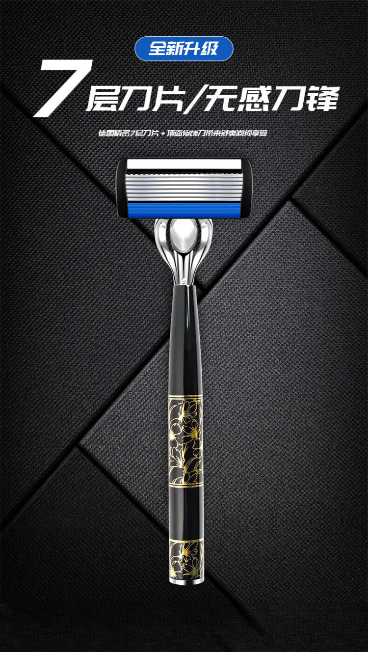 DEATKN德国新款七层剃须刀手动刮胡刀防刮伤润滑条吉利通用进口刀片 新国风刀架(无刀片)
