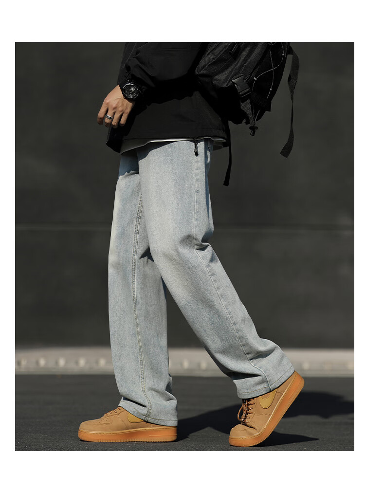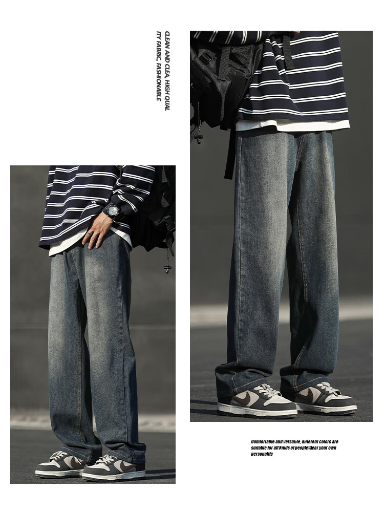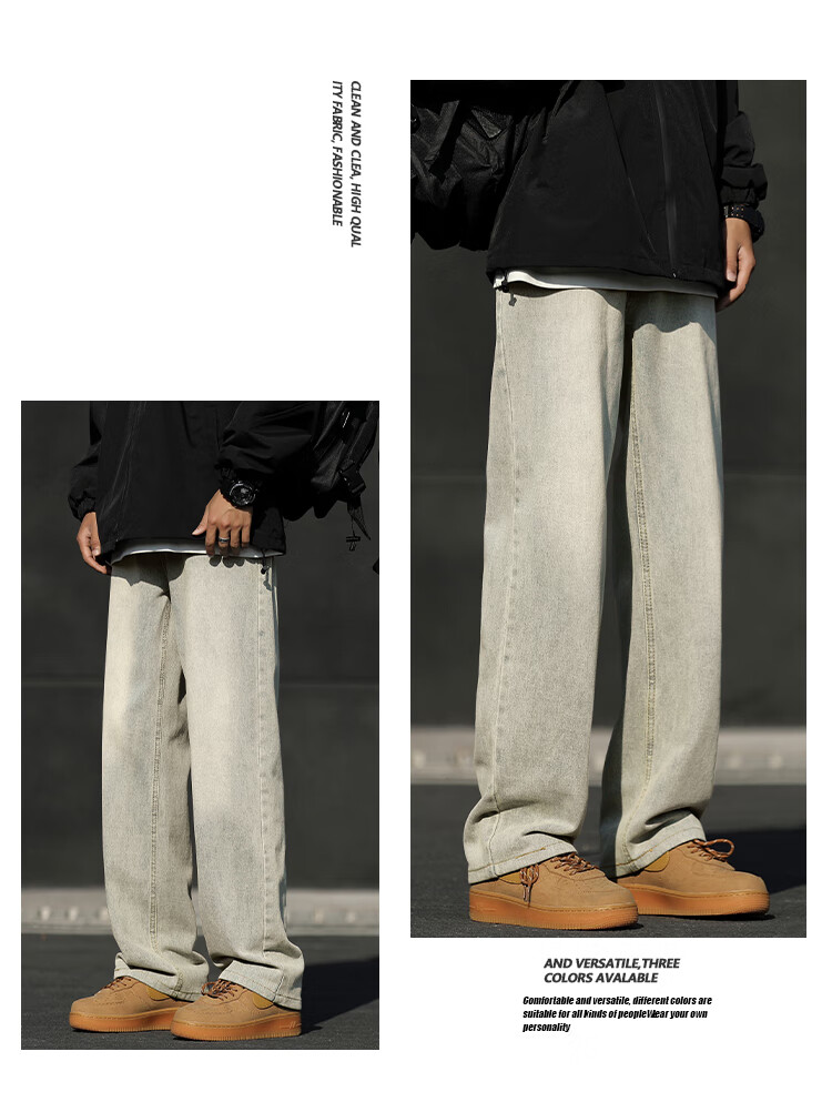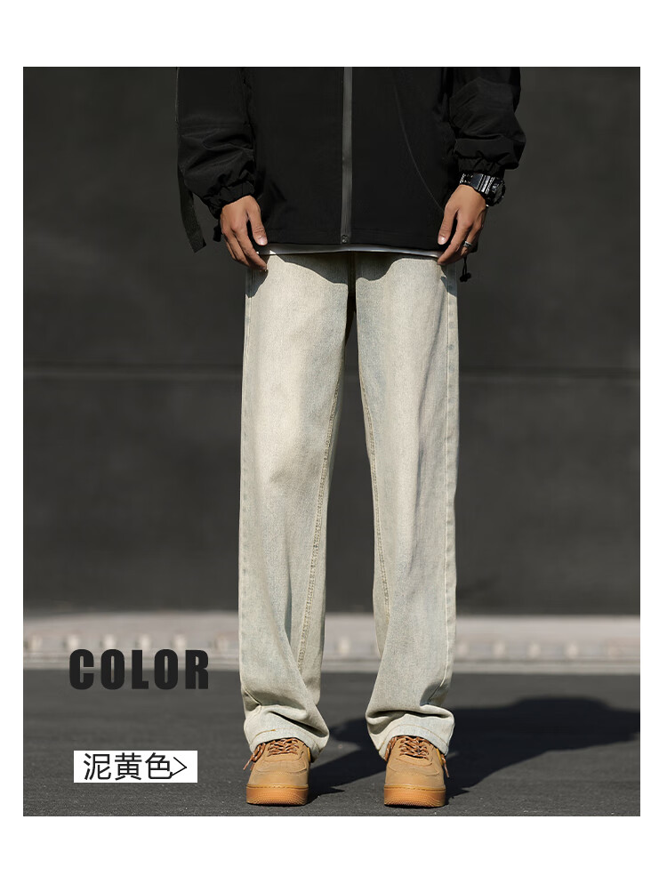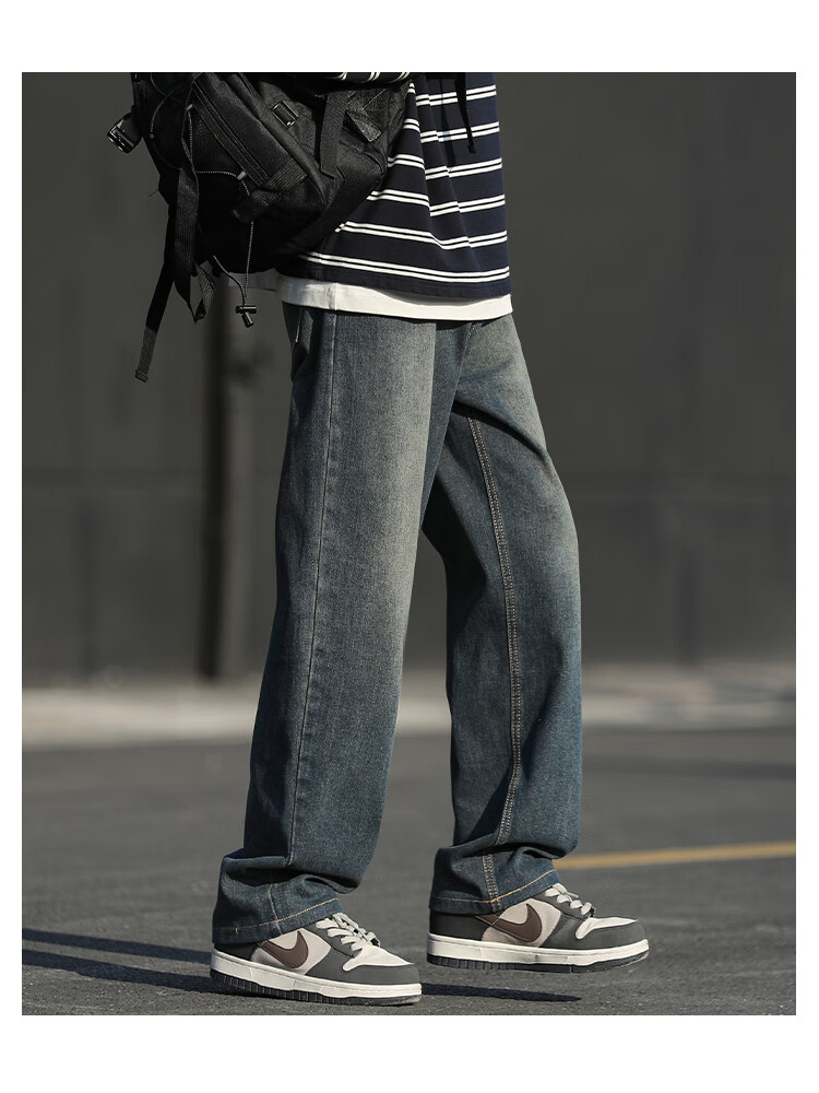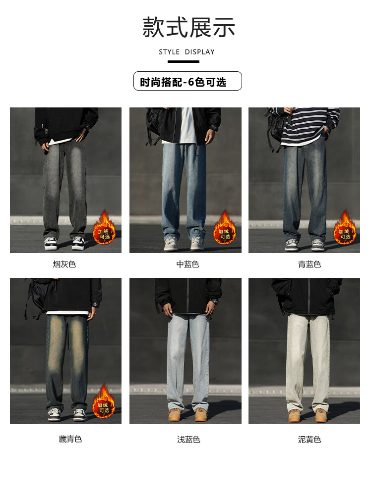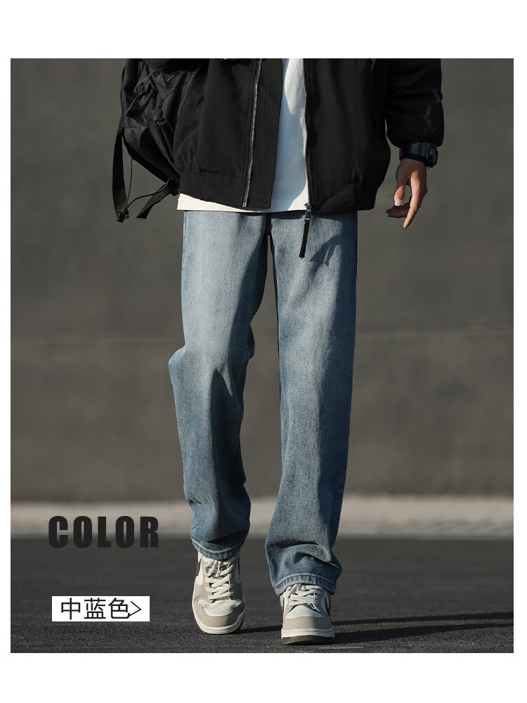 HIPANDA你好熊猫男裤2025年秋冬美式宽松水洗直筒牛仔裤复古休闲长裤子男 烟黑色-加绒款 S