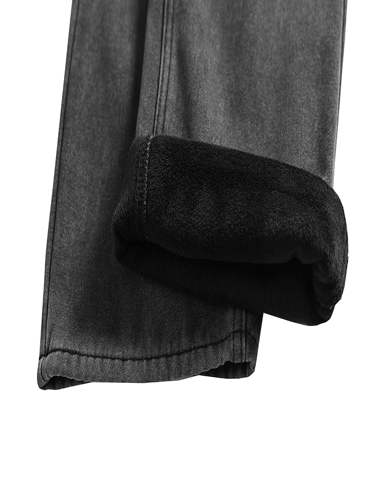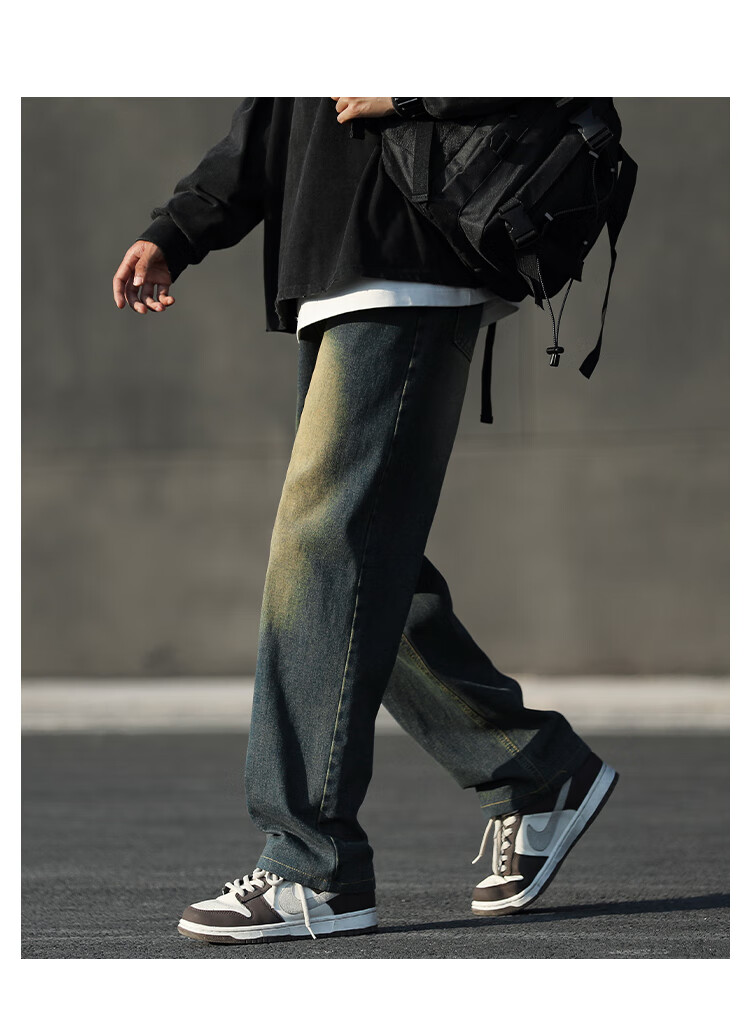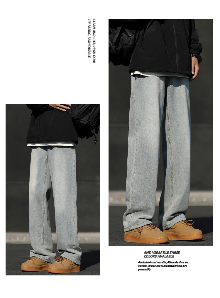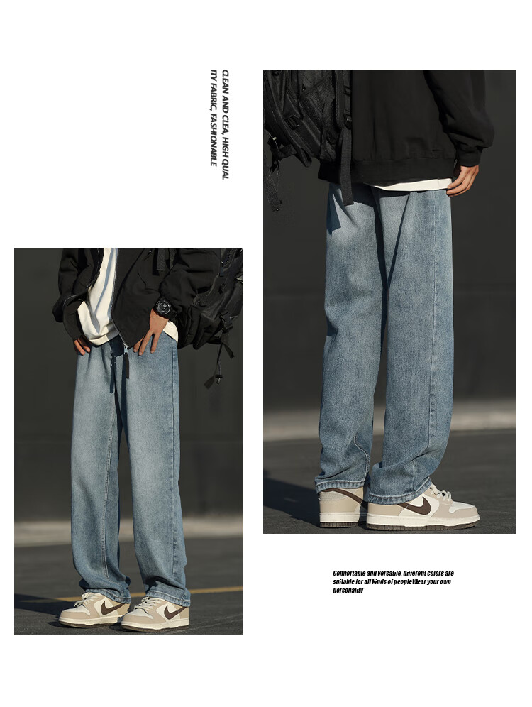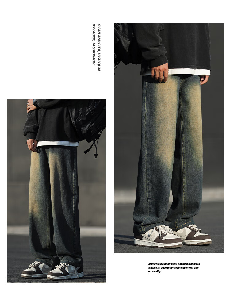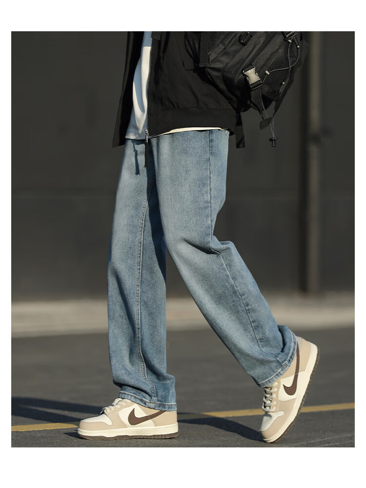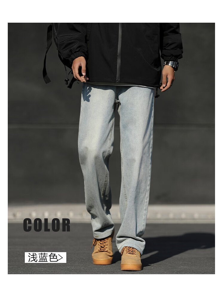 HIPANDA你好熊猫男裤2025年秋冬美式宽松水洗直筒牛仔裤复古休闲长裤子男 烟黑色-加绒款 S