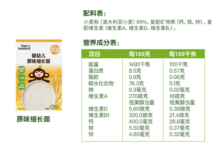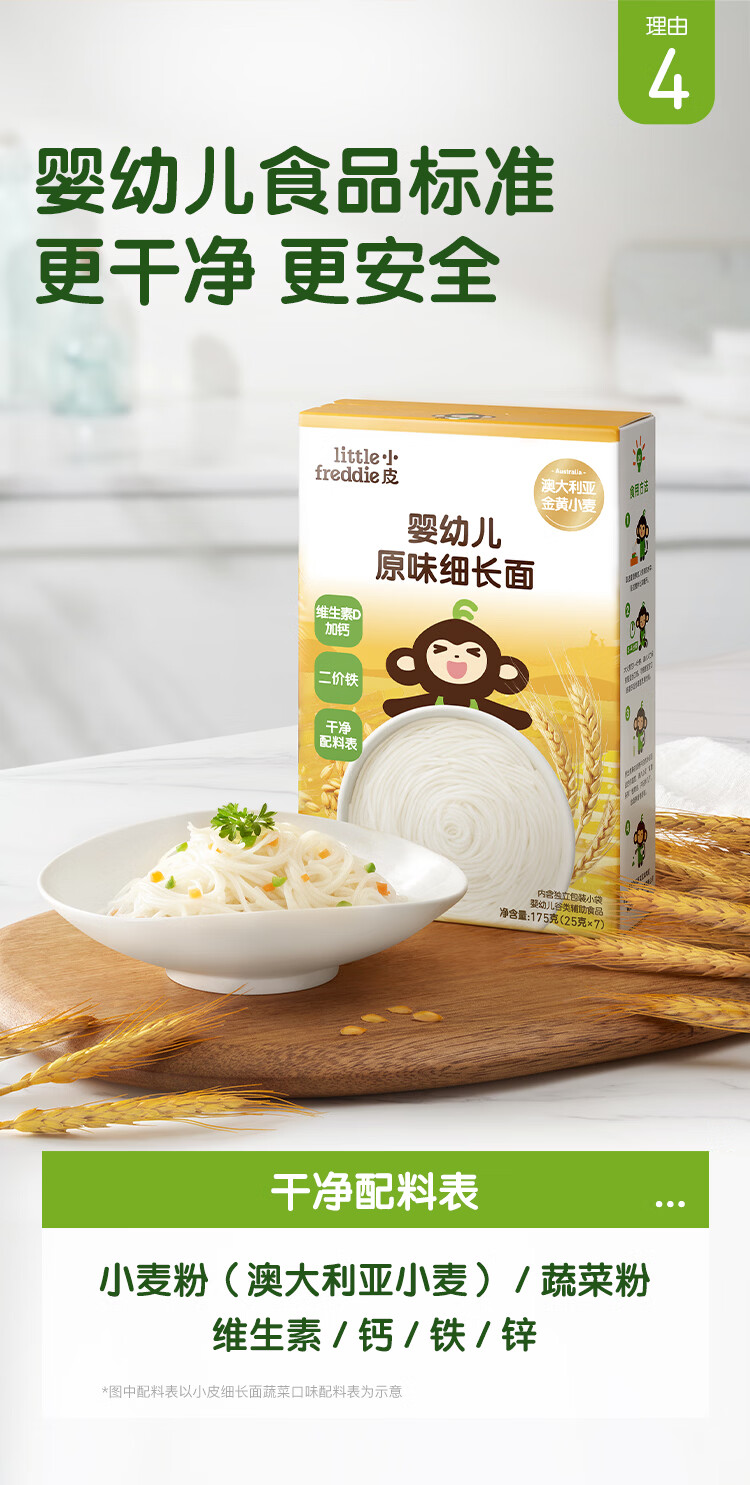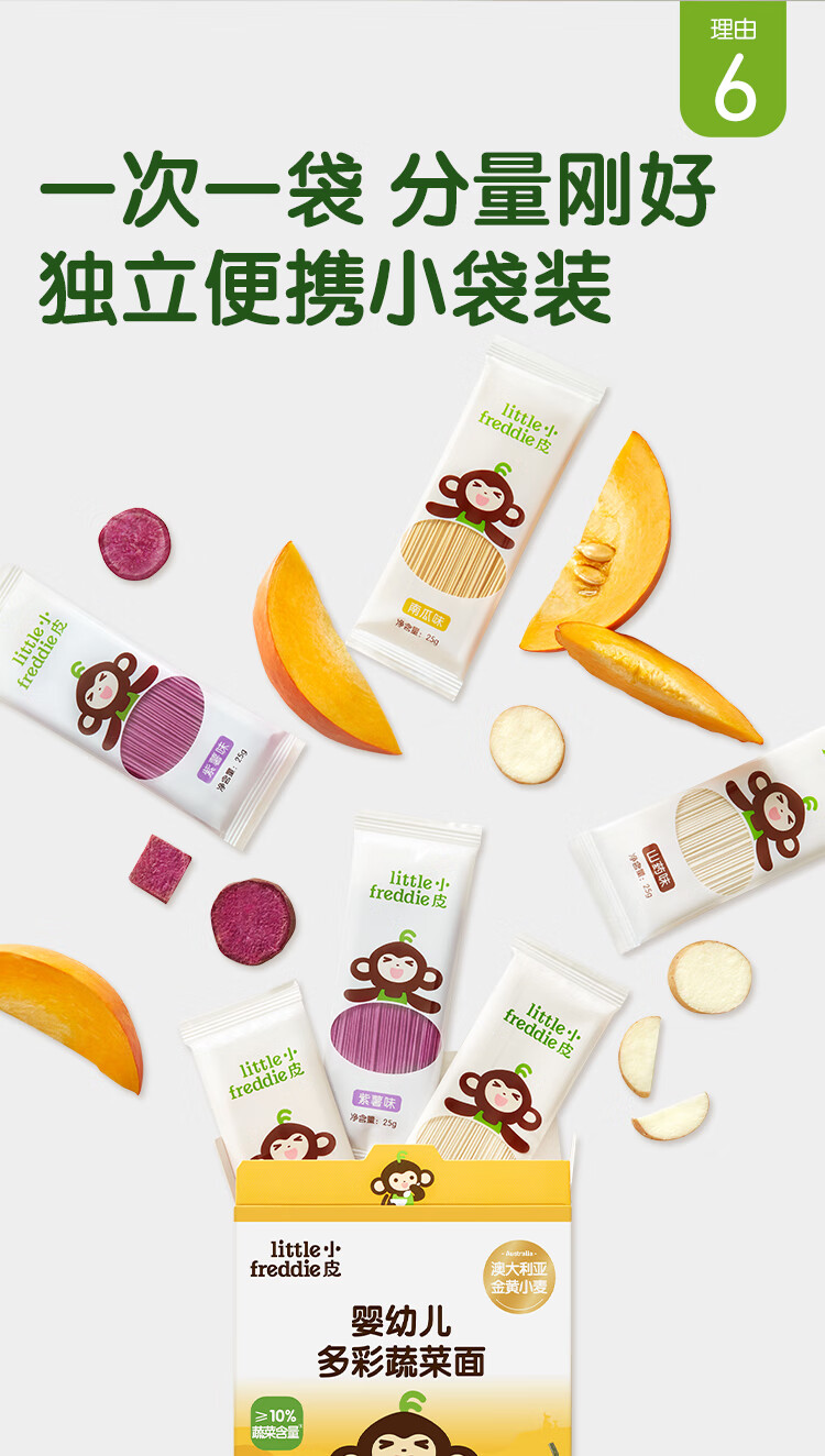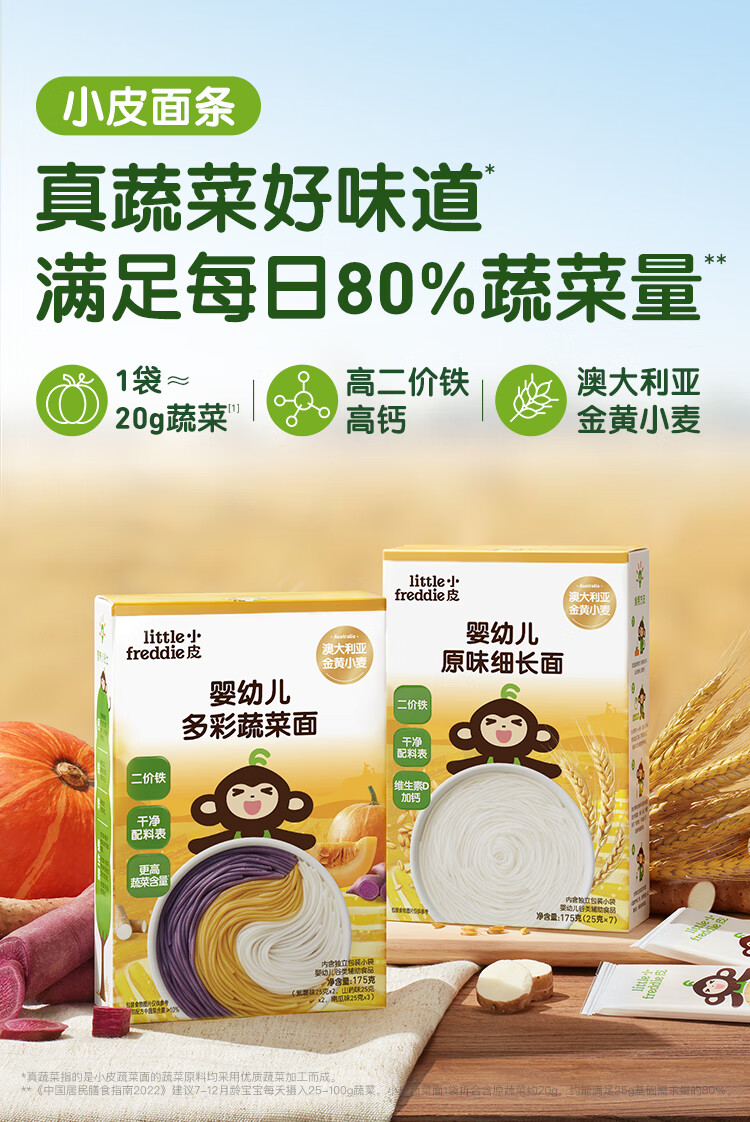 小皮(Little Freddie)婴幼儿面条多彩蔬菜面175g 宝宝面条儿童面条婴儿辅食6-12个