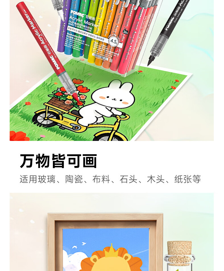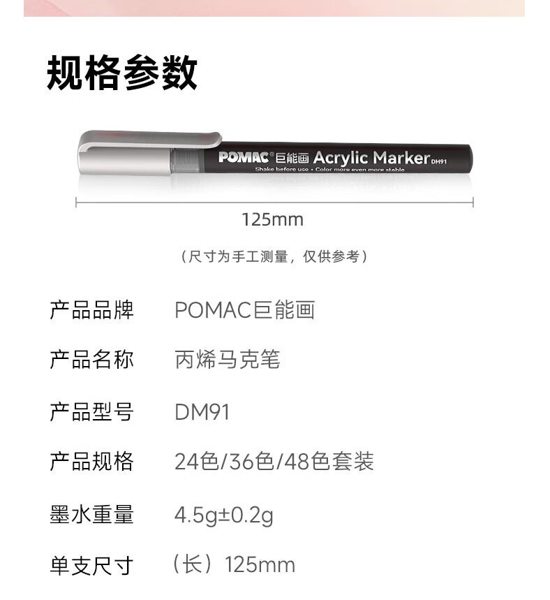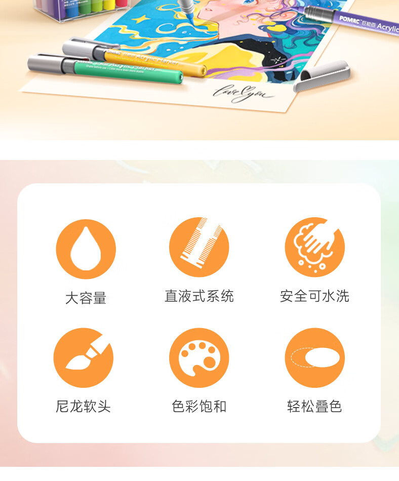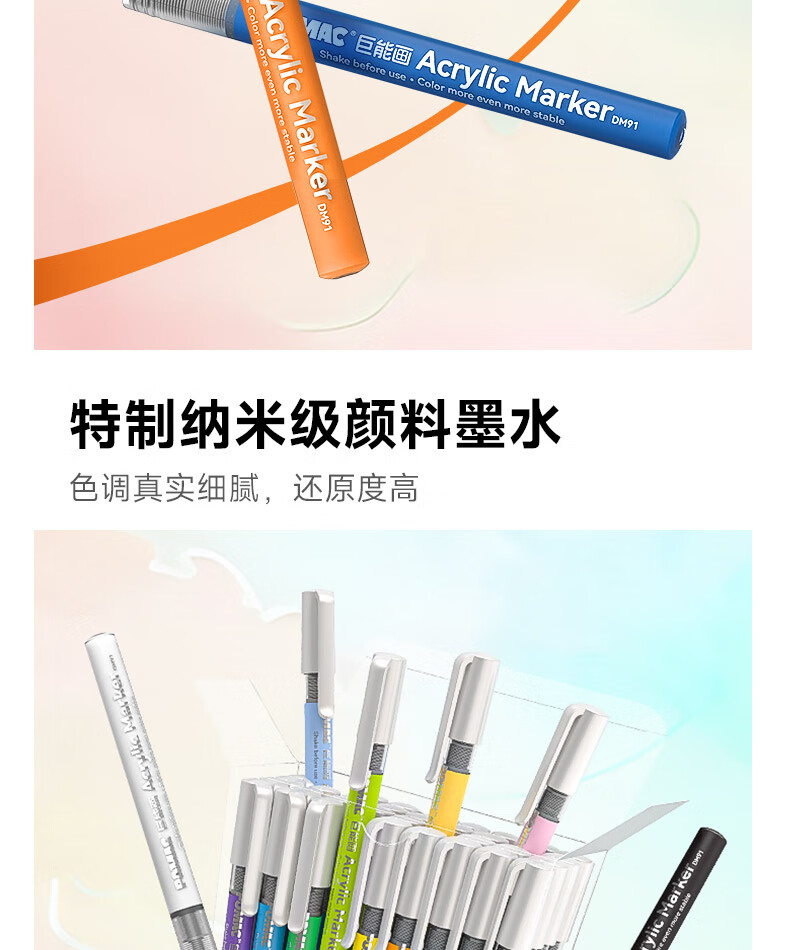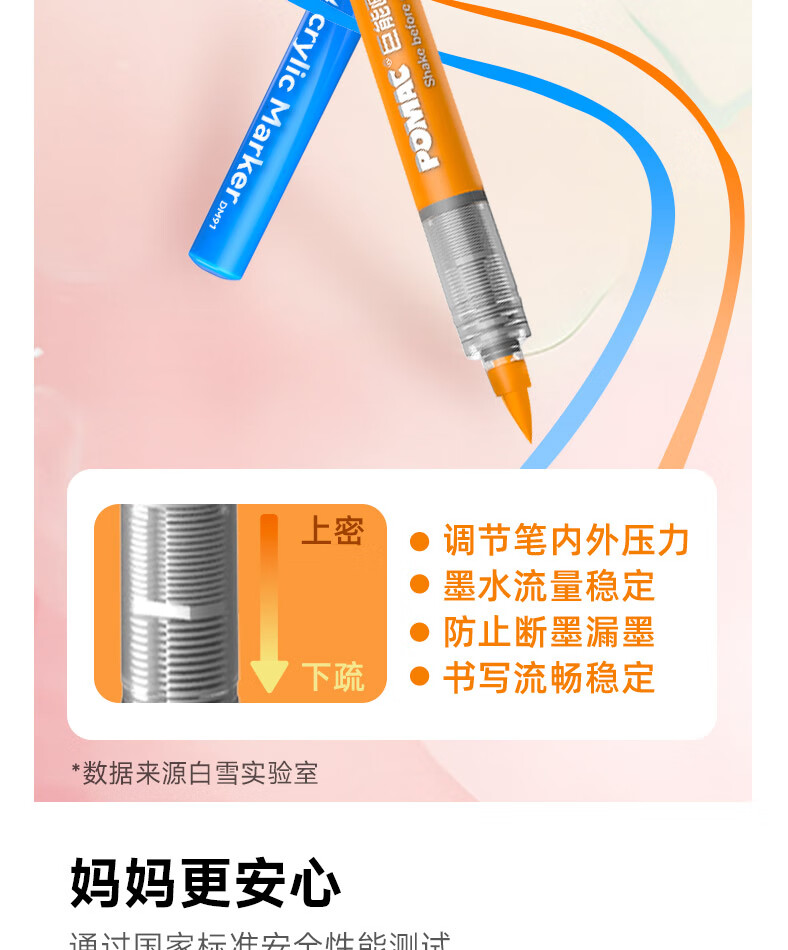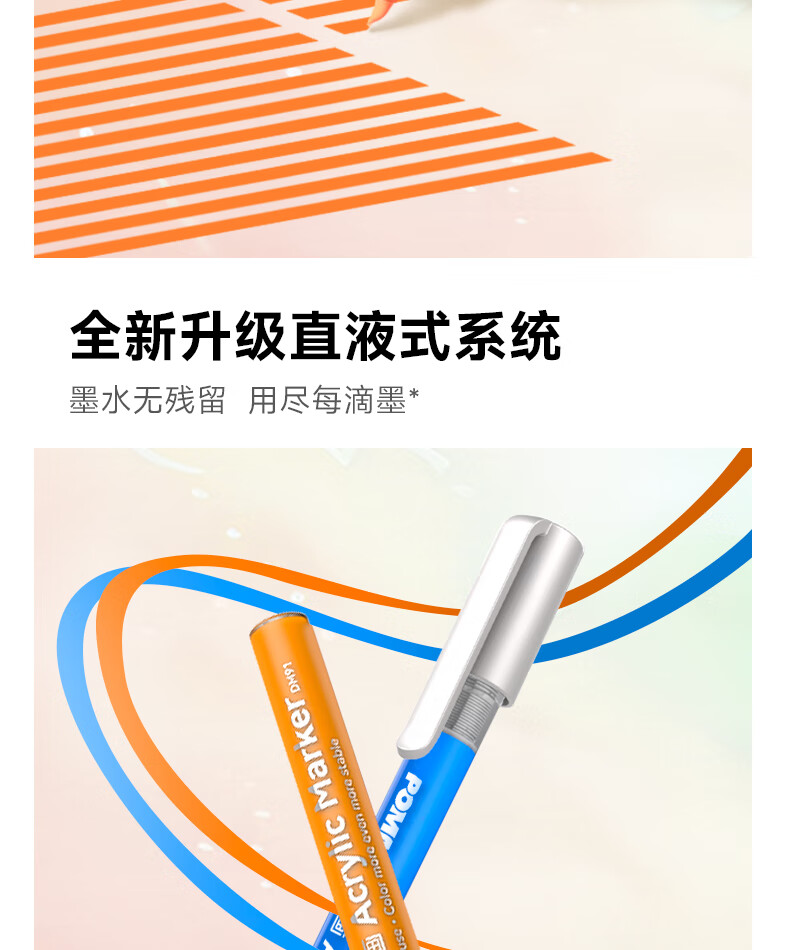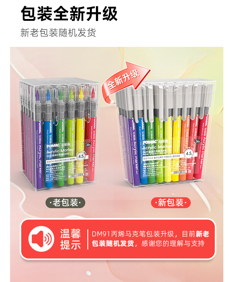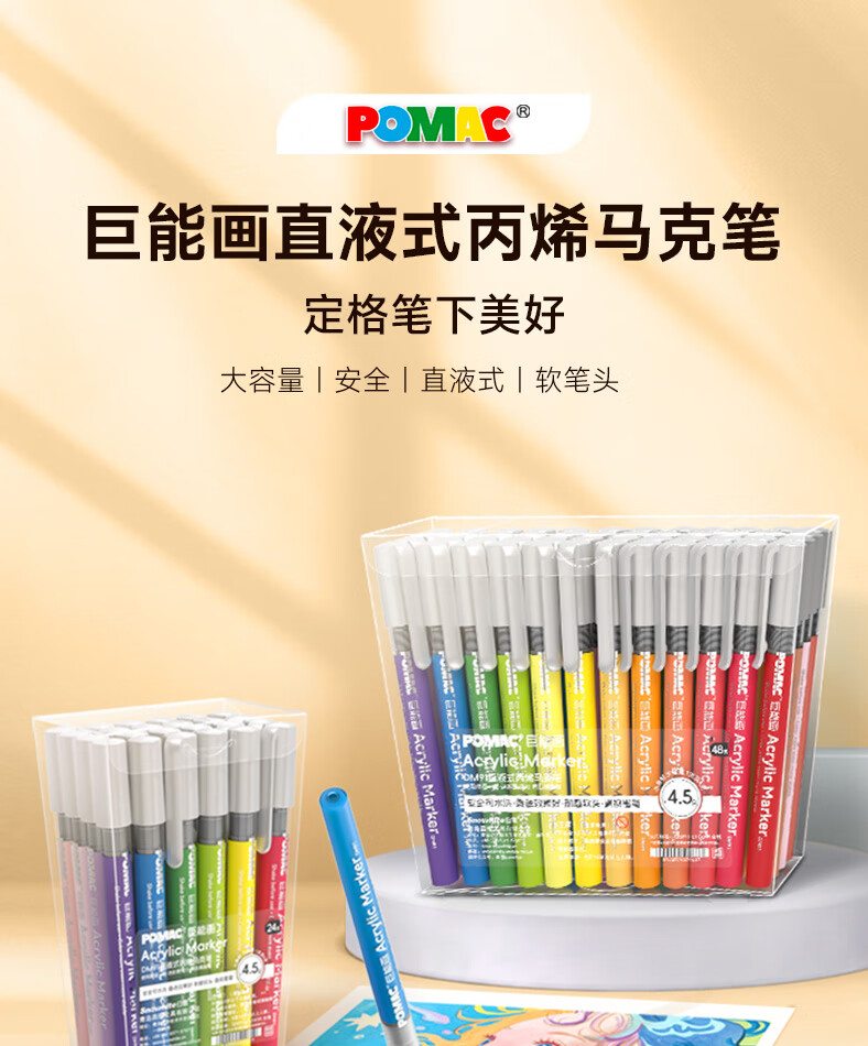 白雪【圣诞礼物】POMAC巨能画直液式丙烯马克笔软头儿童无毒可水洗画画水彩笔可叠色画笔DM91 36色/盒