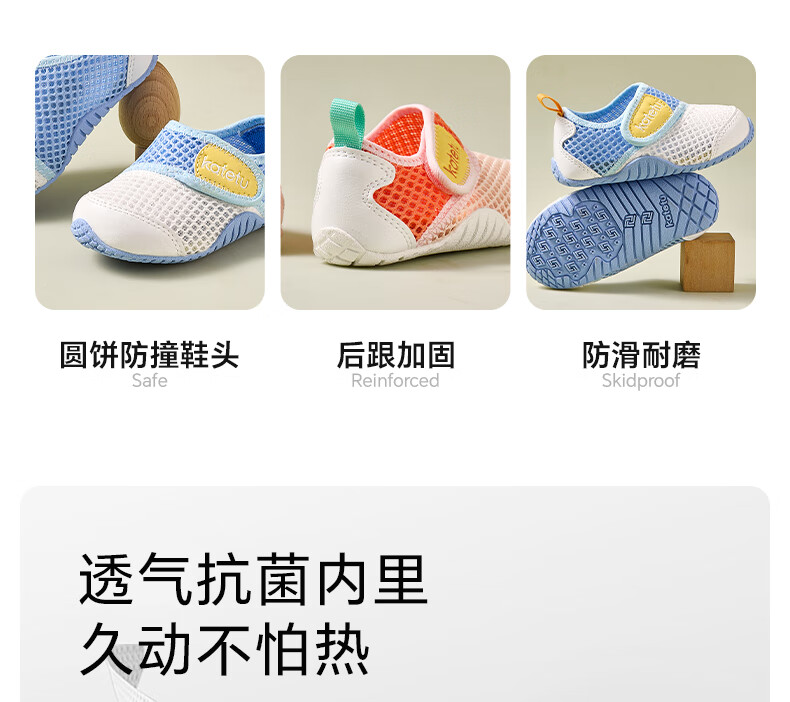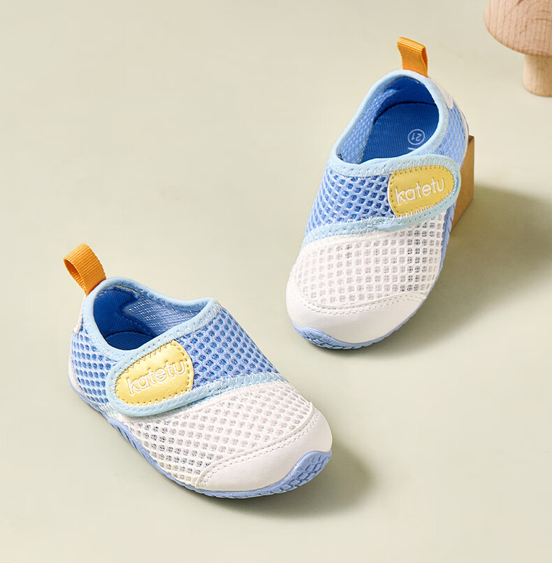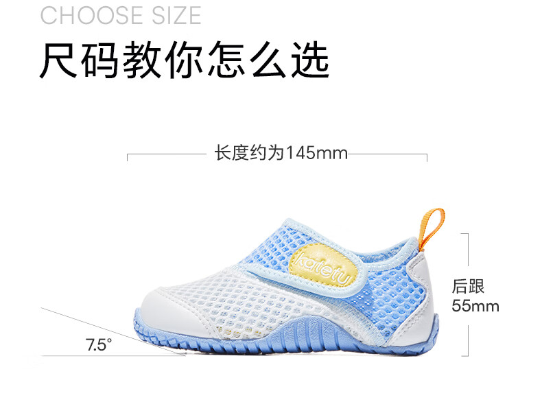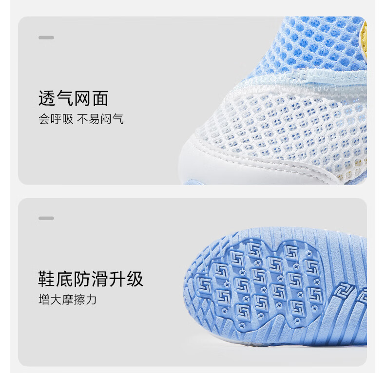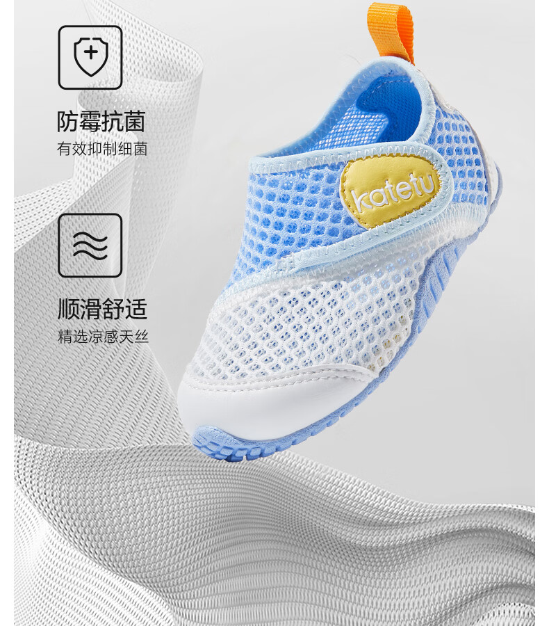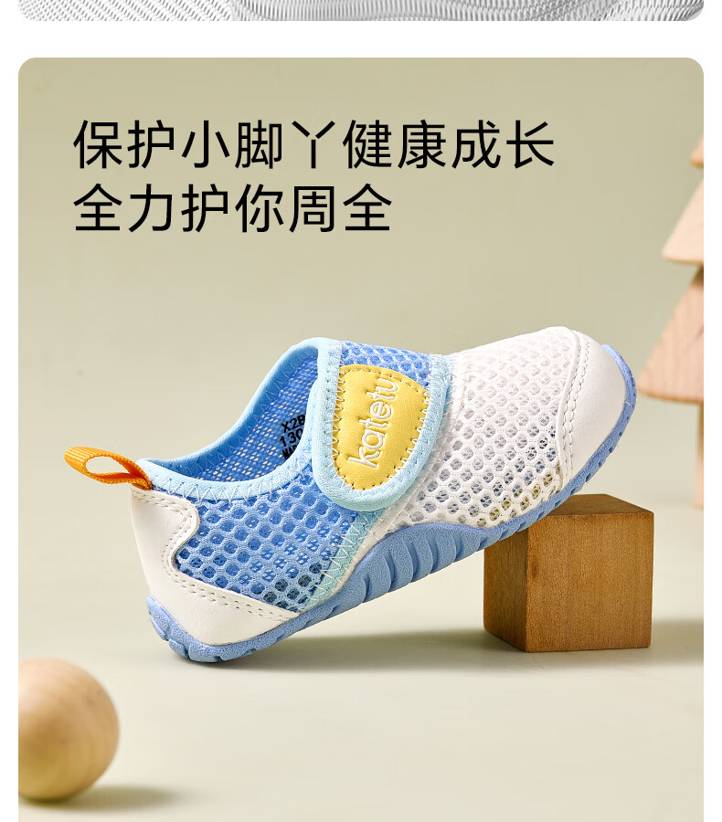 卡特兔童鞋婴儿学步鞋秋季儿童凉鞋软底网面宝宝鞋男女童幼儿园室内鞋 白蓝 25 内长15.5cm 脚长14.3-14.9