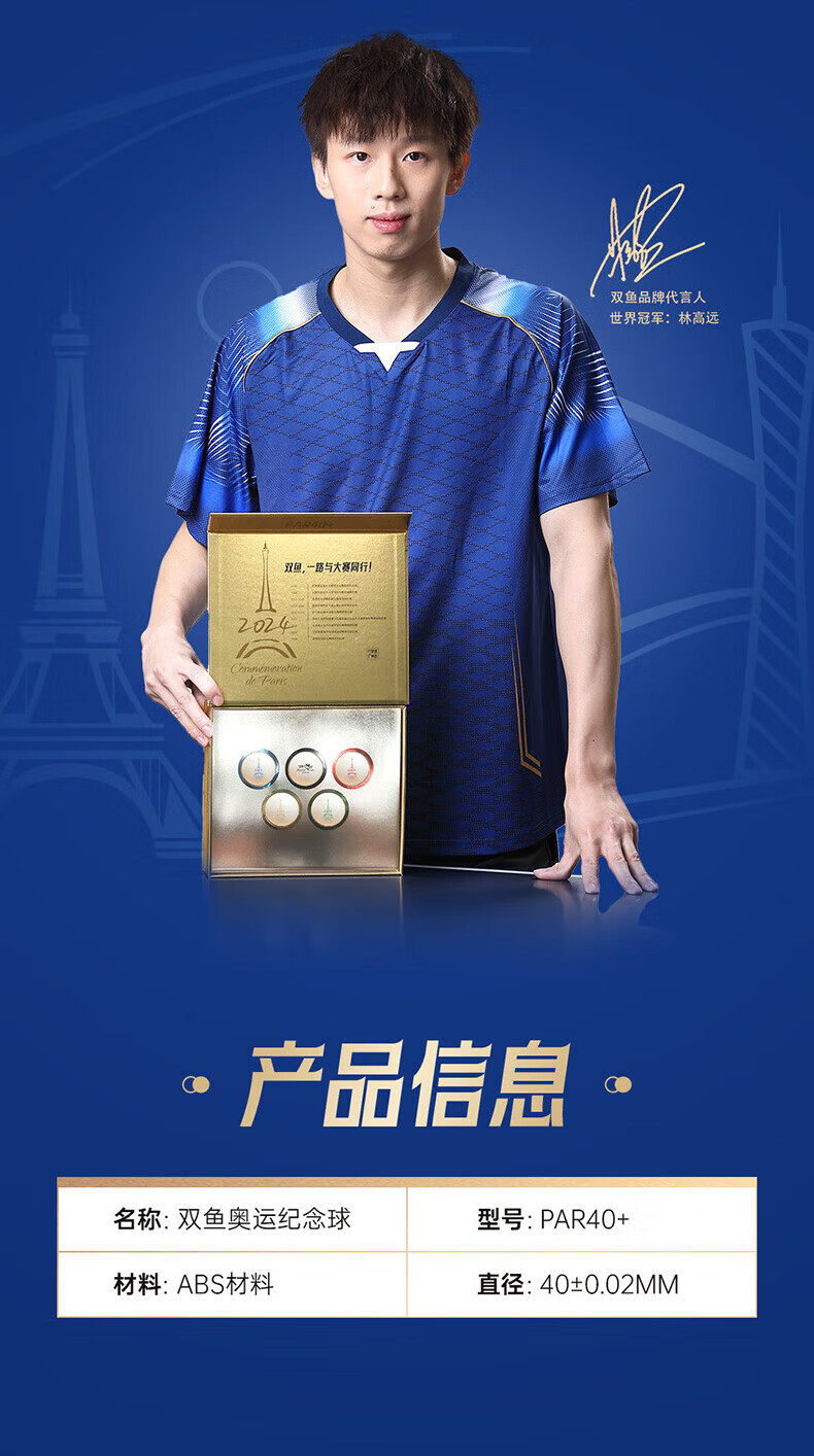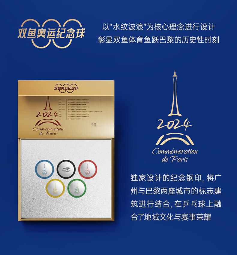 双鱼(DOUBLE FISH)奥运纪念球礼盒包装 5个装 指定专用球乒乓球球友赠礼珍藏球 三星级 5个珍藏纪念球