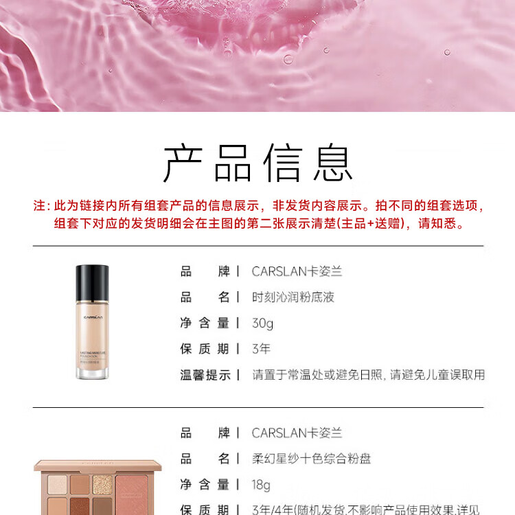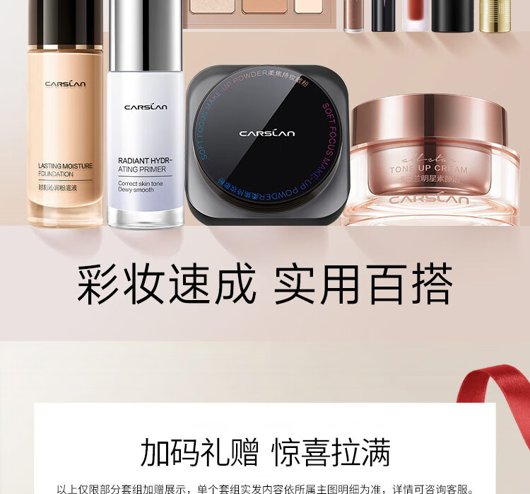 卡姿兰(Carslan)彩妆化妆品套装正品全套礼盒大牌一整套学生初学淡妆生日圣诞礼物 自然清新底妆组合