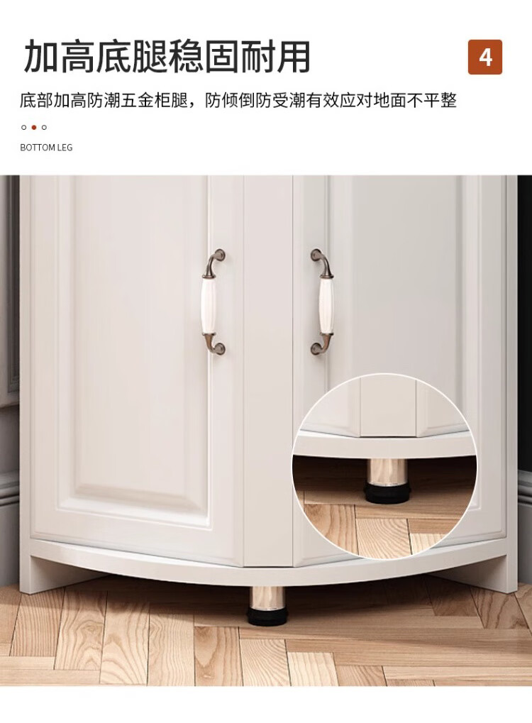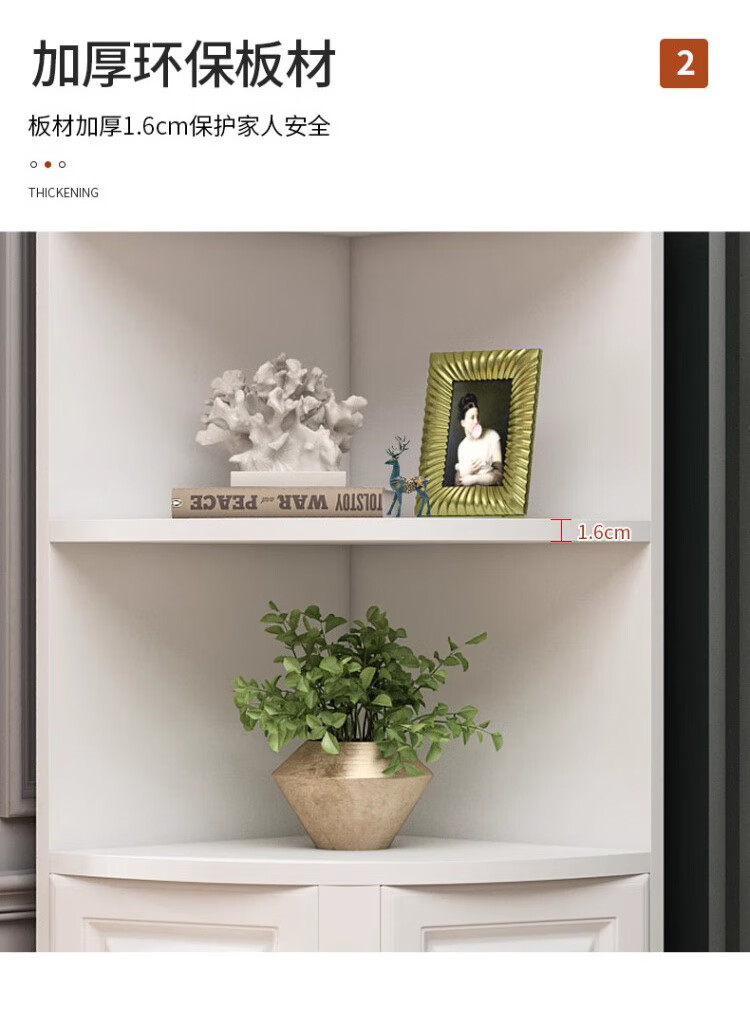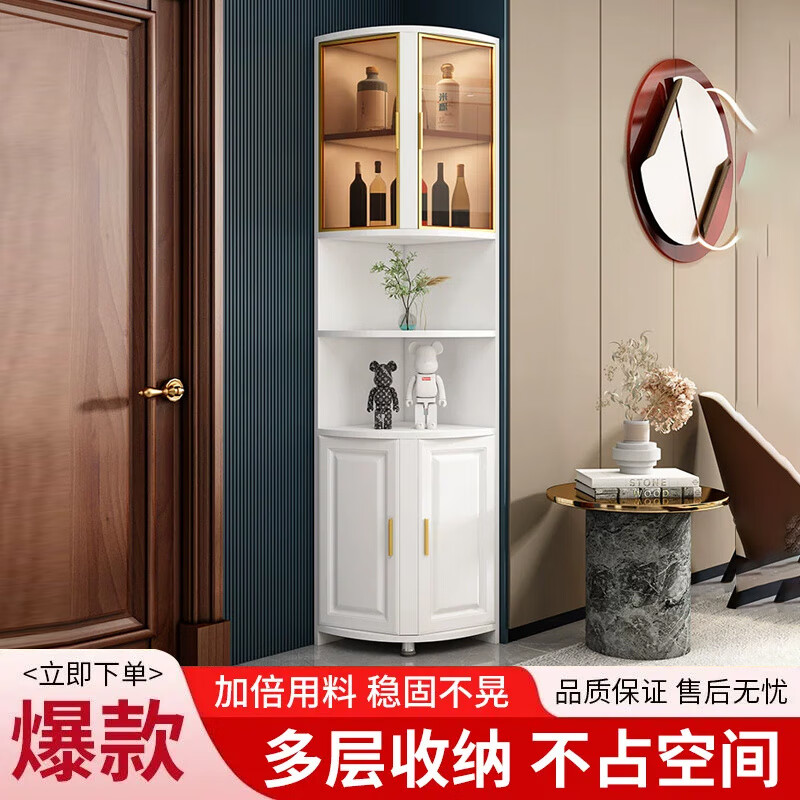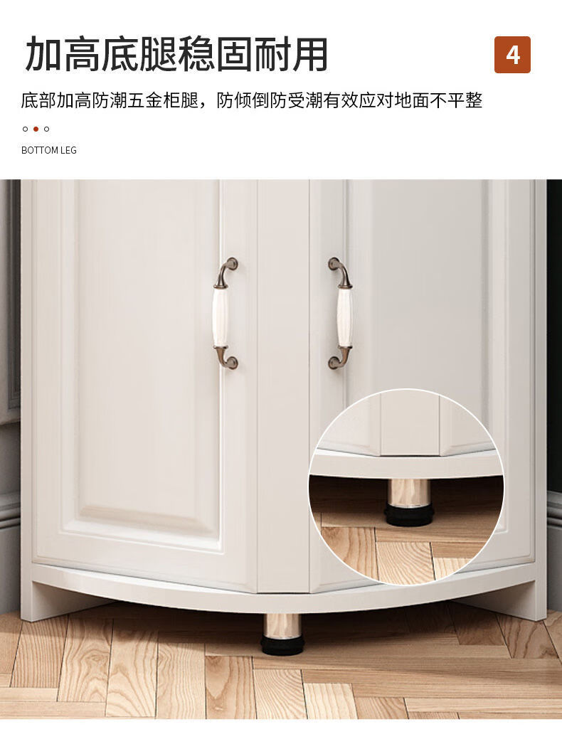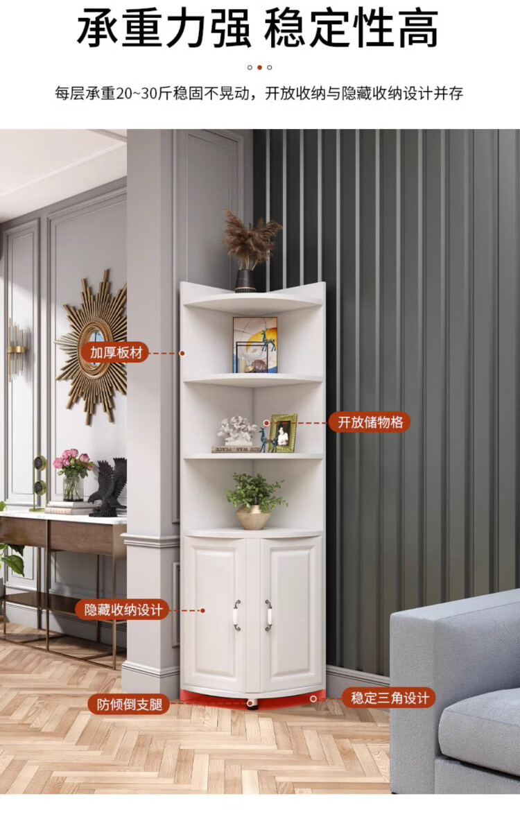 华莱德实木转角柜墙角三角柜角边柜收纳储物置物架客厅卧室转弯直角柜子 30×184五层白柜×颗粒