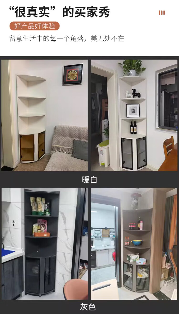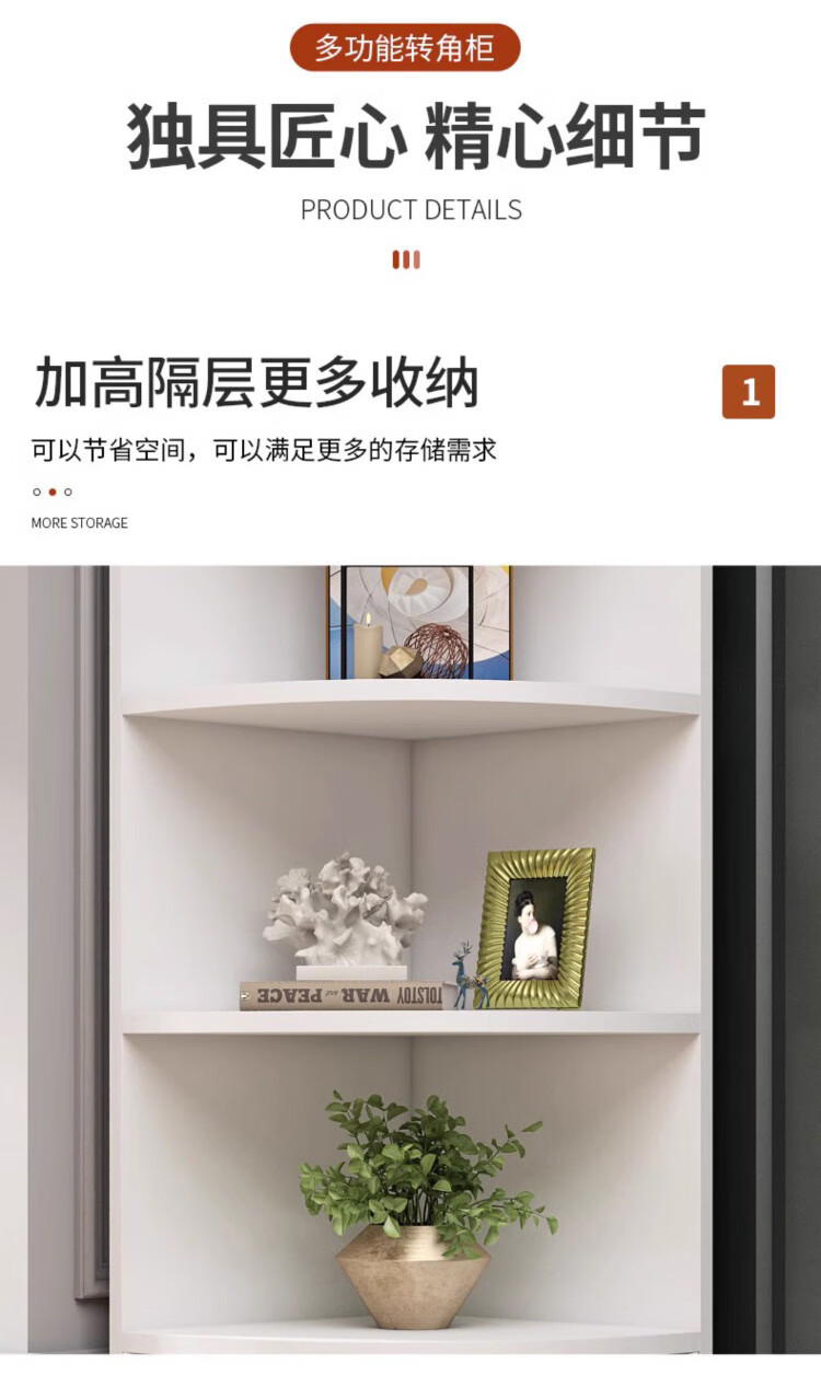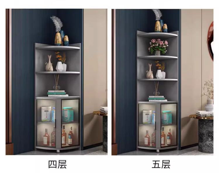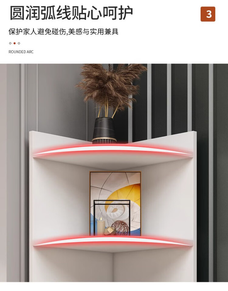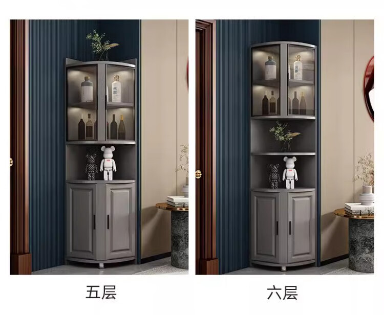 华莱德实木转角柜墙角三角柜角边柜收纳储物置物架客厅卧室转弯直角柜子 30×184五层白柜×颗粒