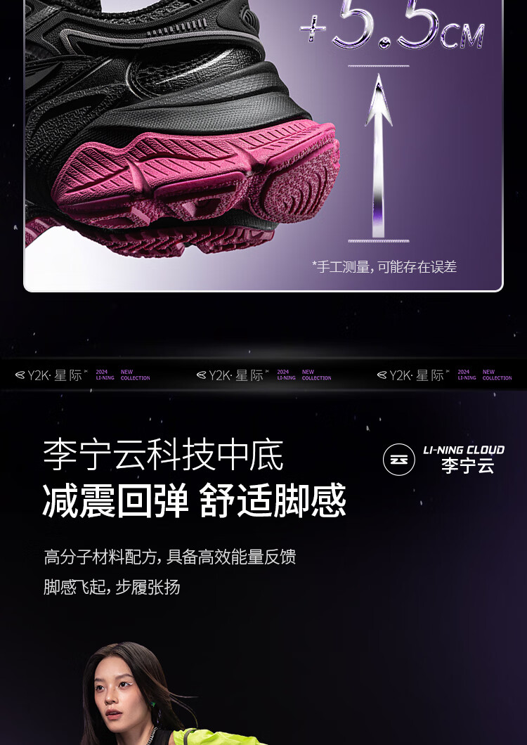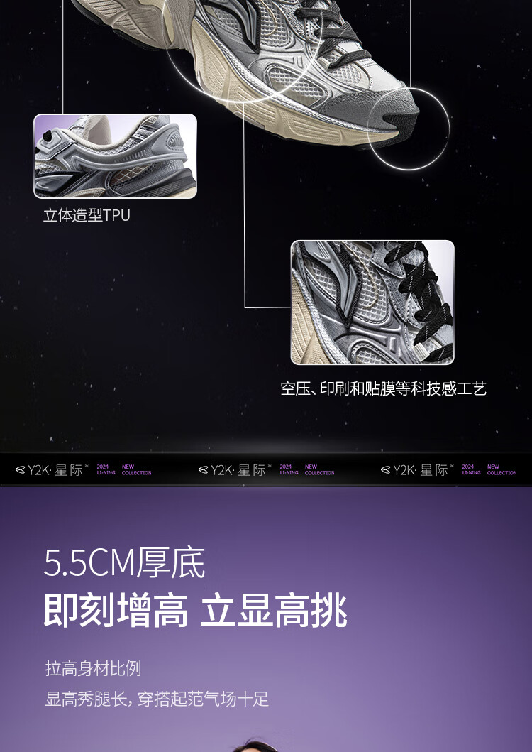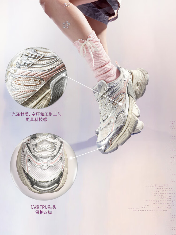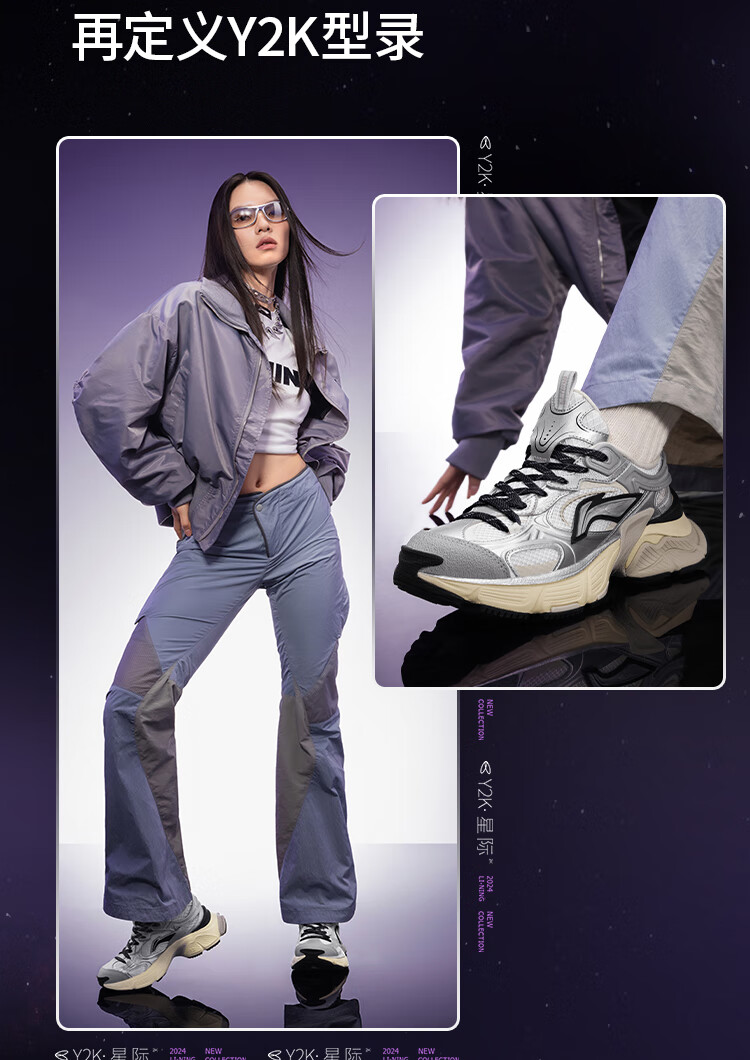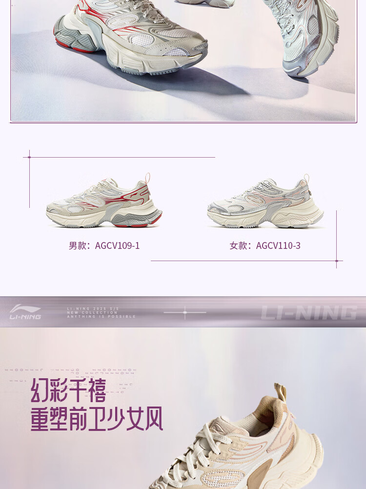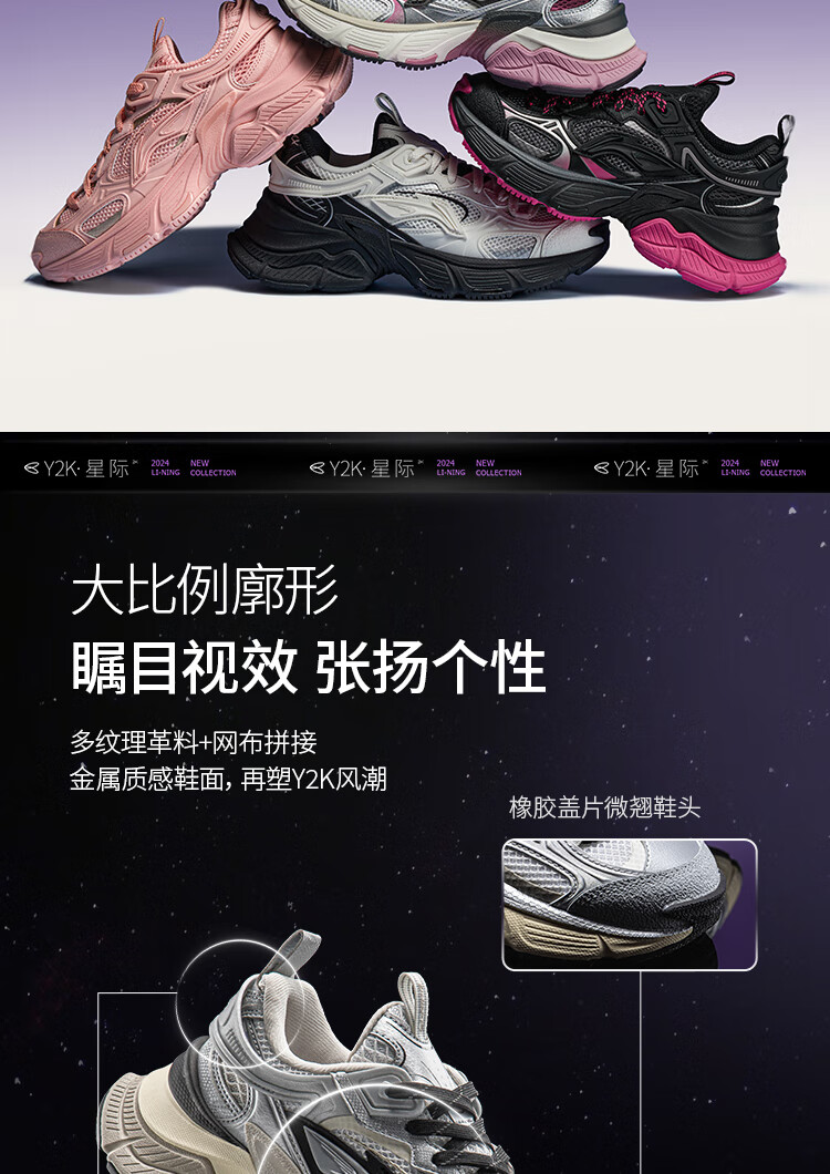 李宁星际-七夕丨Y2K休闲鞋女鞋透气老爹鞋复古运动鞋AGCU372