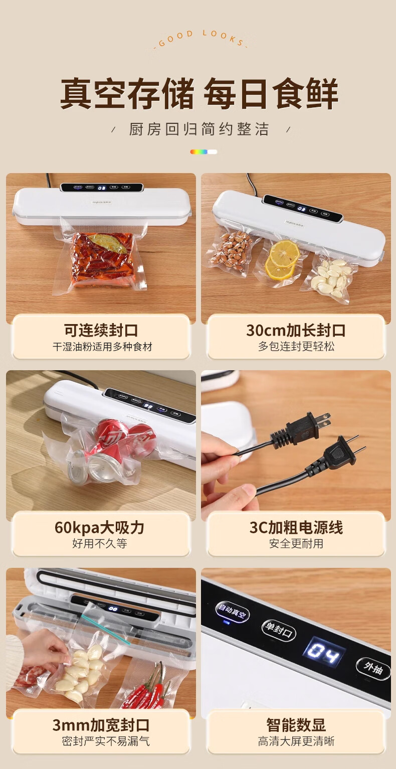 佳帮手真空封口机家用全自动抽真空机食品打包塑封包装机腊肉腊肠真空压缩神器