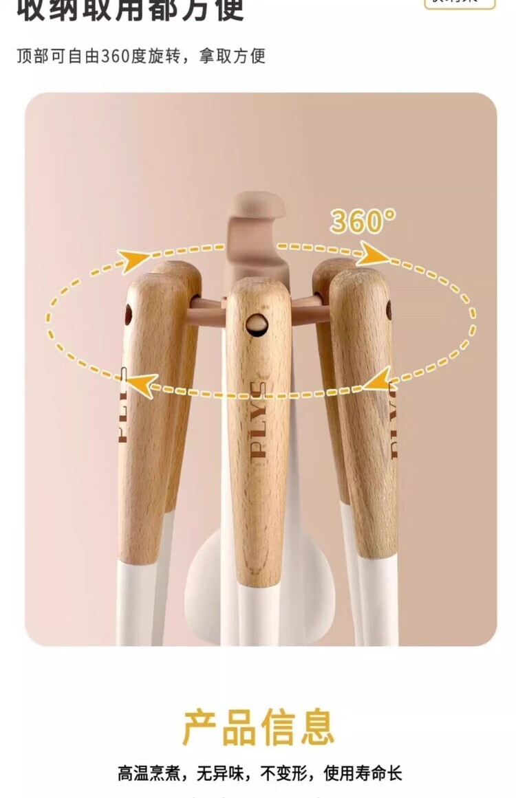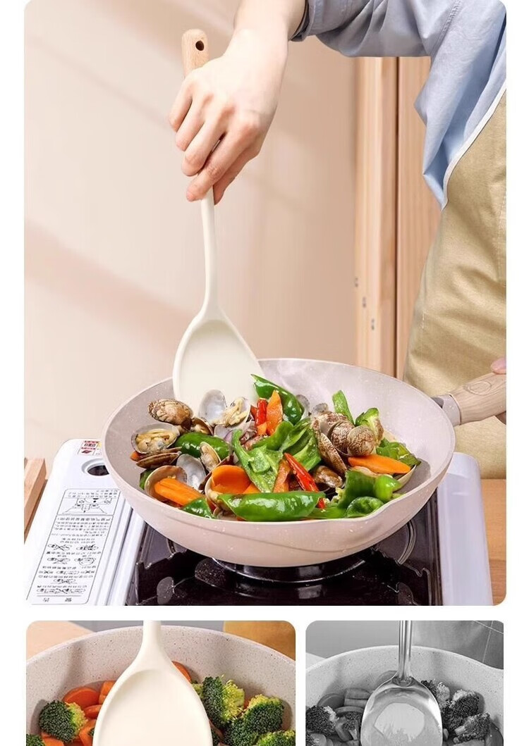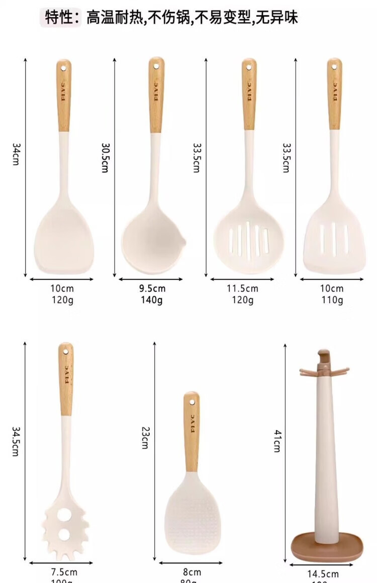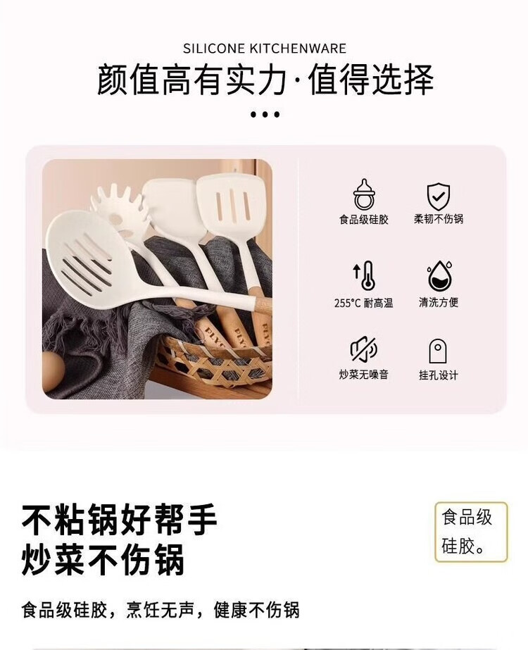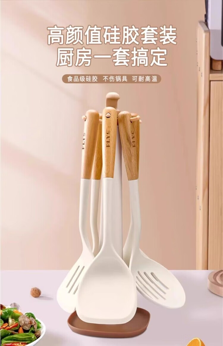 简漾硅胶锅铲套装炒菜铲子厨具全套不粘锅专用饭勺煎铲耐高温硅胶厨具 耐高温硅胶+不伤锅 米白色厨具7件套