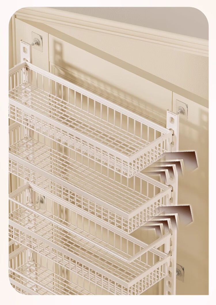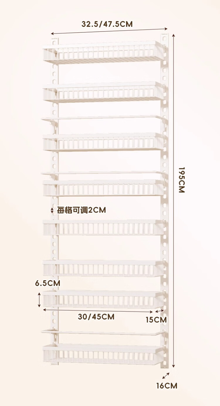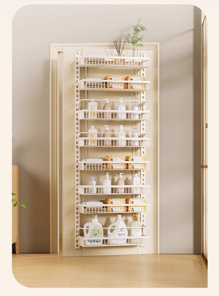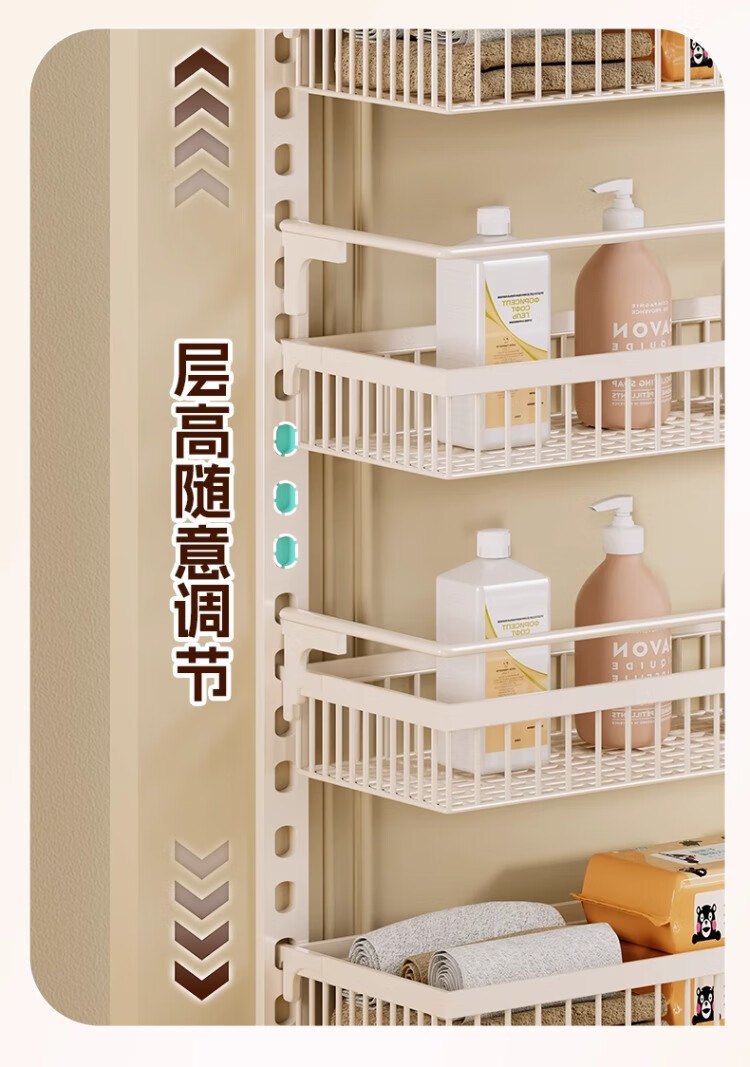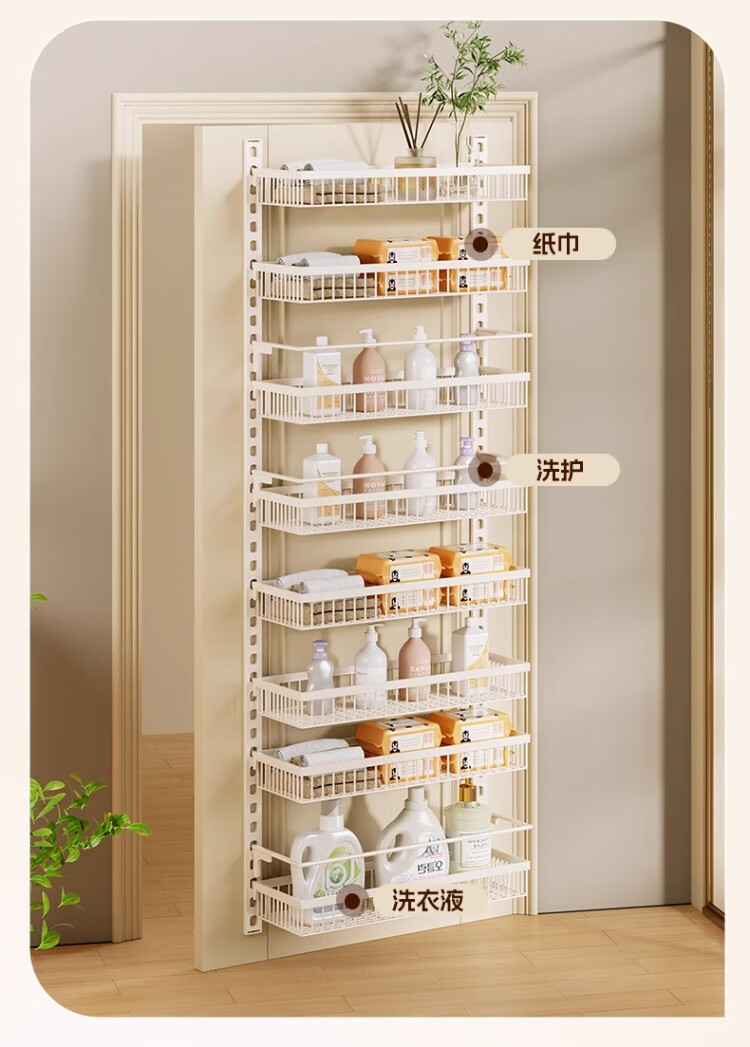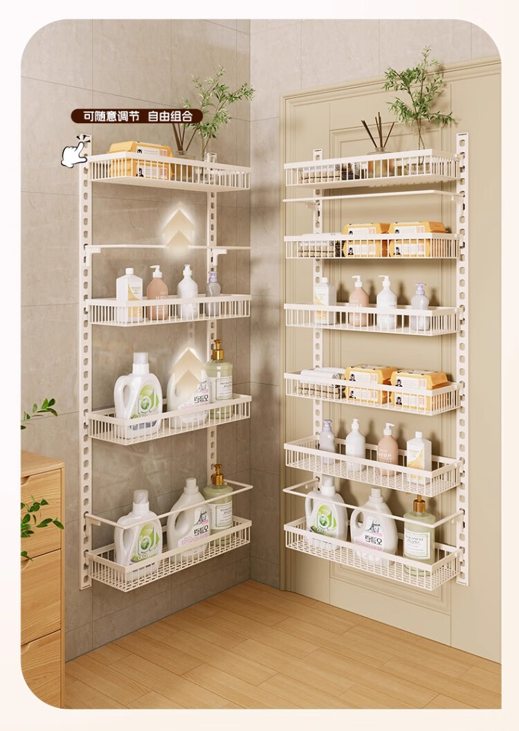 尔思家浴室置物架厕所免打孔墙上置物架浴室门口夹缝壁挂多层收纳架子 八层47.5cm宽【白色大号】配3层护栏
