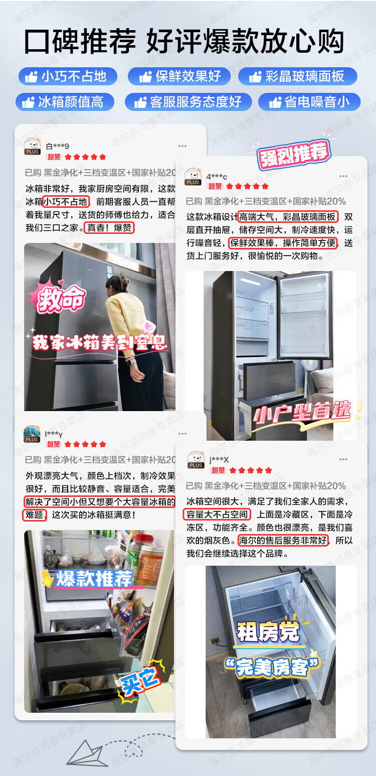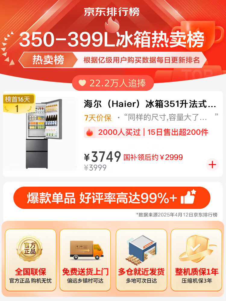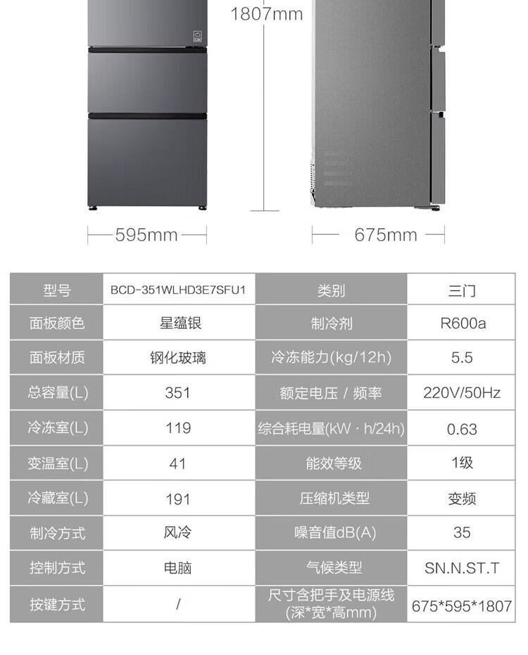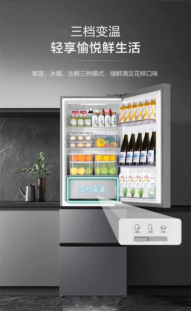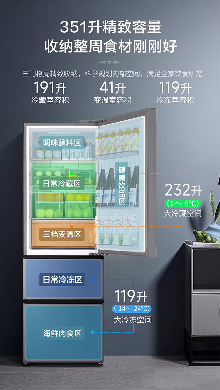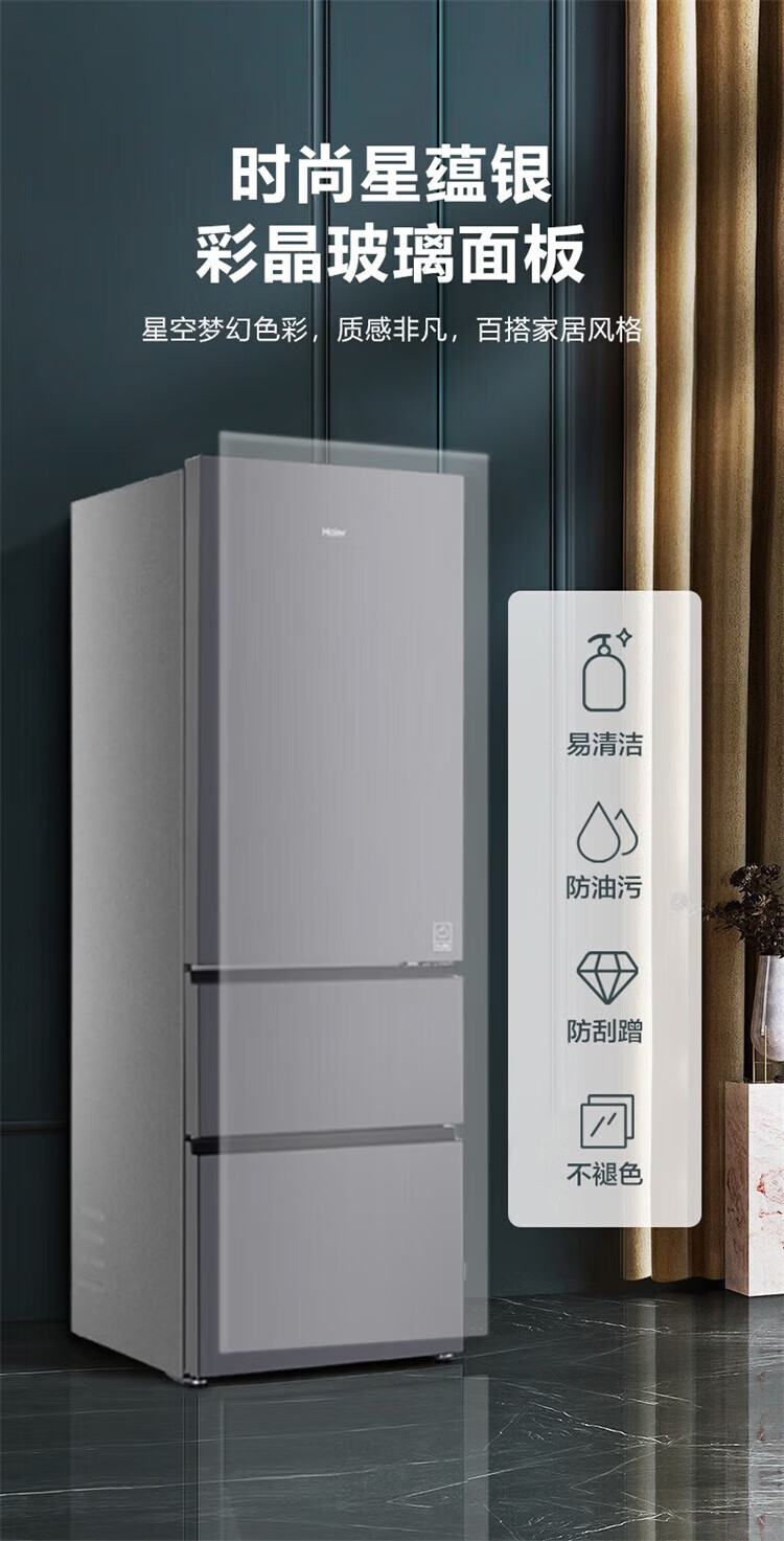 海尔冰箱351升法式三开门多门双变频节能一级能效双循环系统风冷无霜小型出租房屋家电家用国家补贴20% 黑金净化+三挡变温区+WIFI智控+支持以旧换新