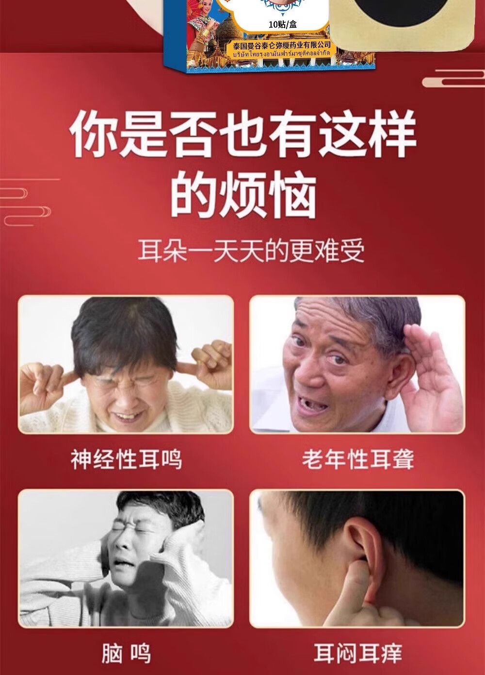 泰仑弥缦藏致耳鸣穴位贴神经性蝉鸣声嗡嗡响有声日本进口专用膏药贴滴耳液 单盒【耳鸣嗡嗡响】10贴 2025新上市仁仁药铺正品耳鸣贴