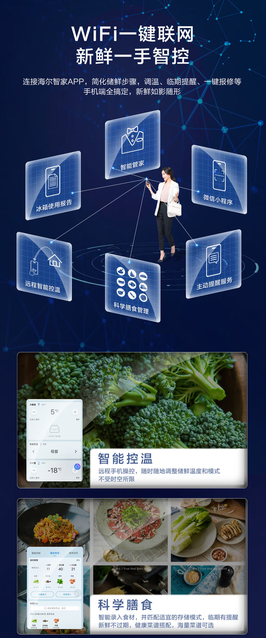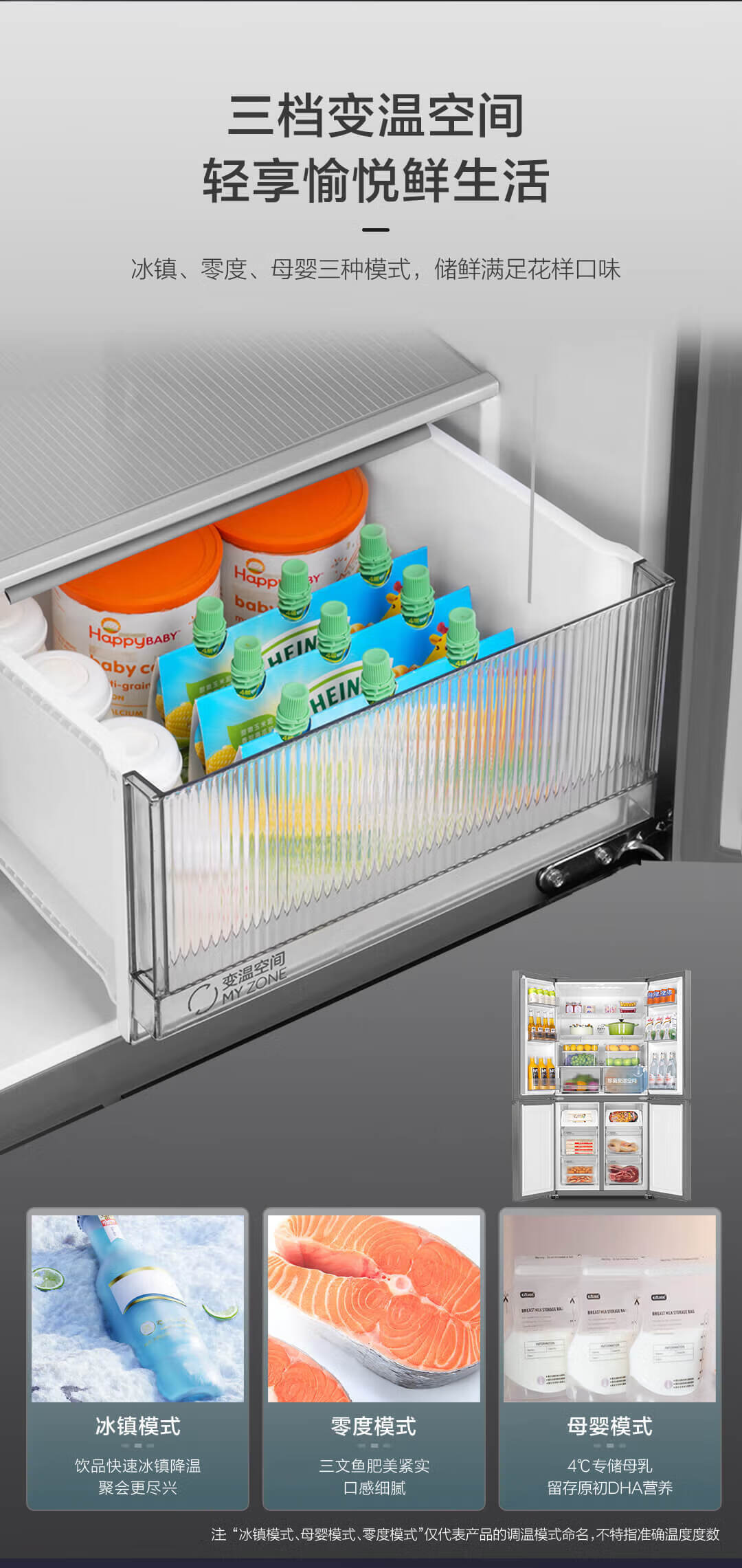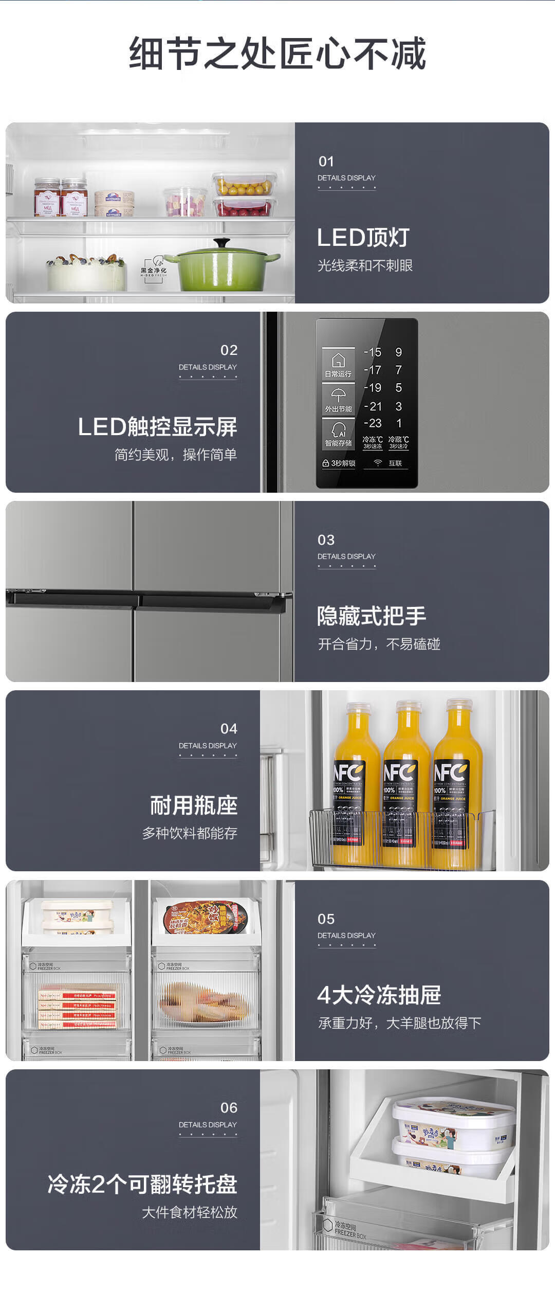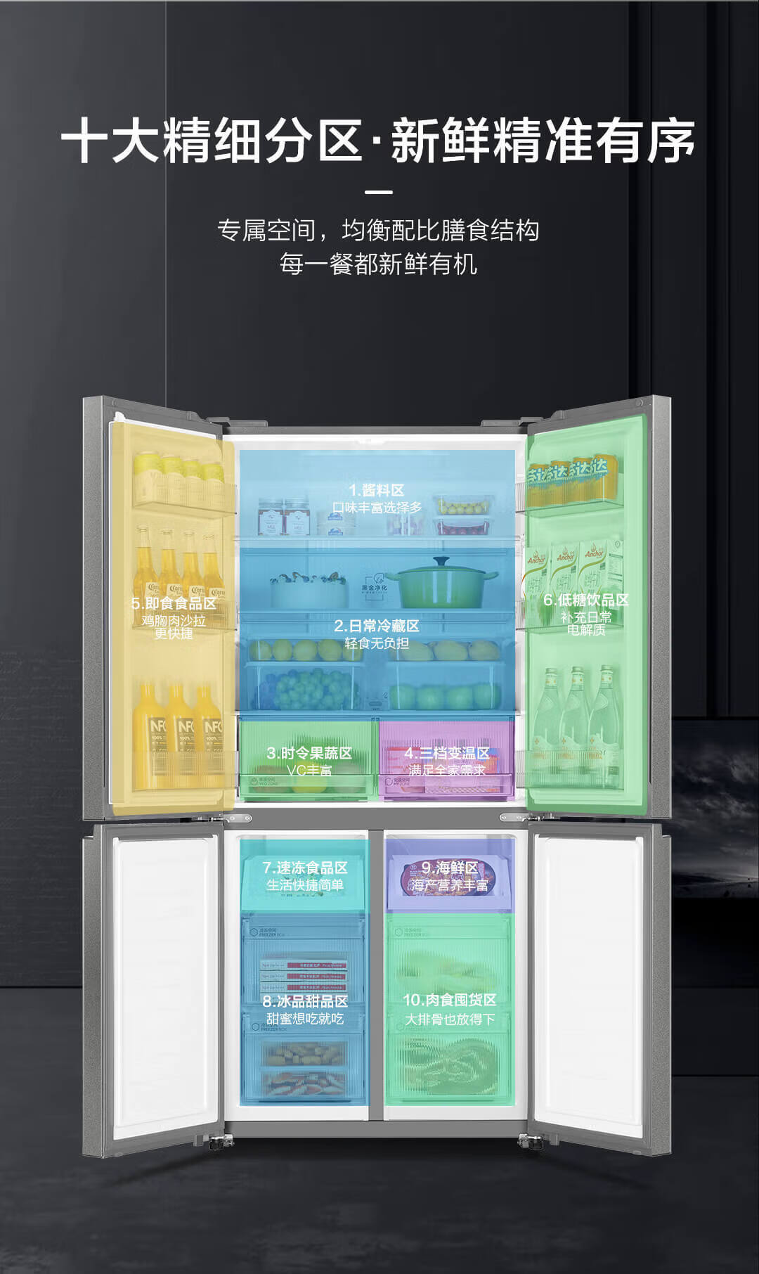 海尔(Haier)【新品】冰箱四开门539升风冷无霜一级能效双变频节能省电环超大容量双开门十字对开门超薄电冰箱 539升+母婴变温空间+黑金净化除菌+wifi智控