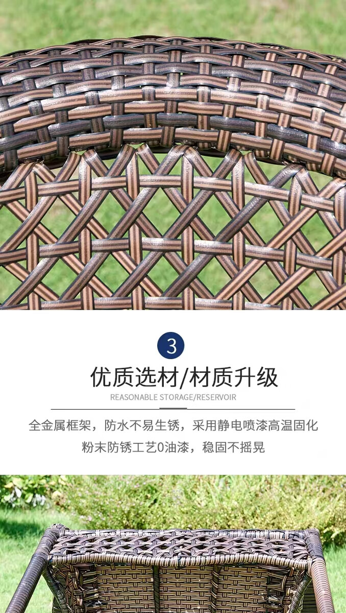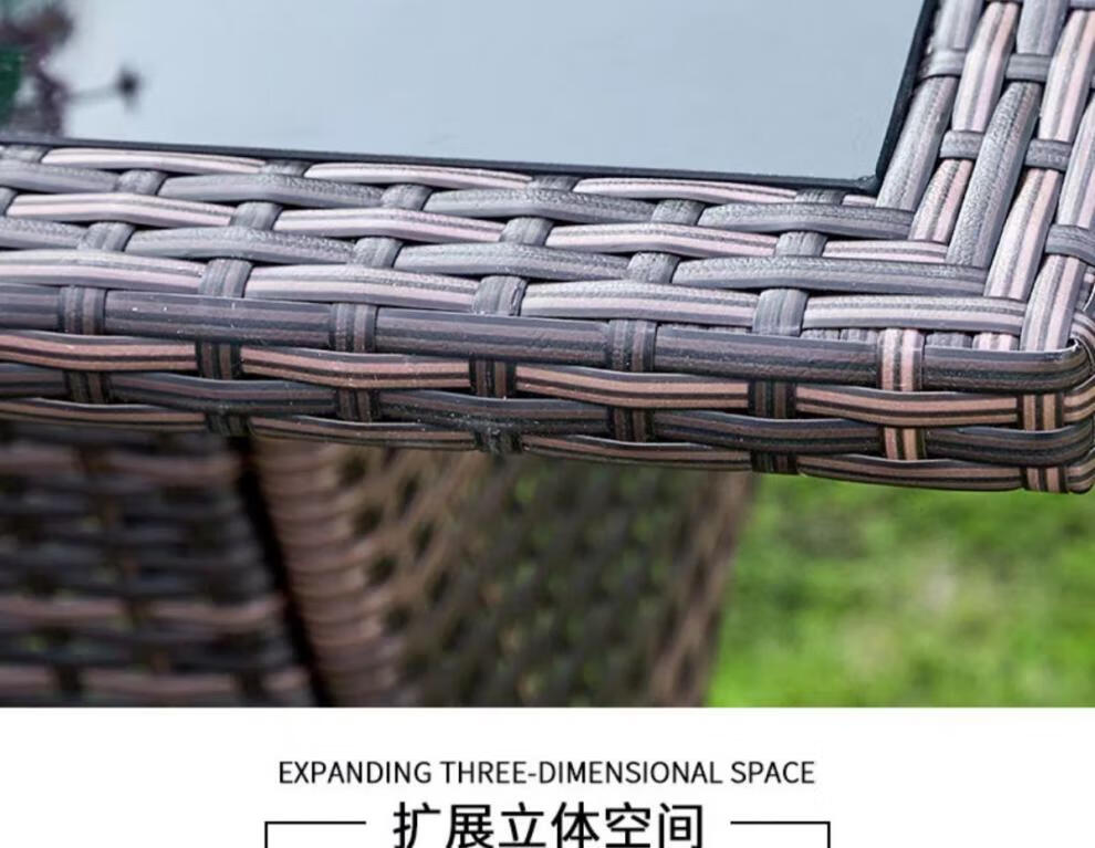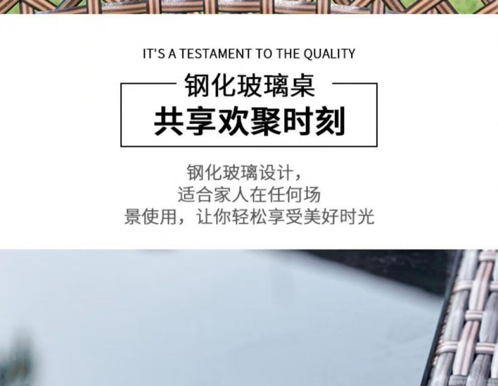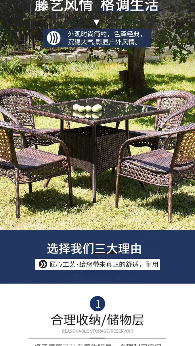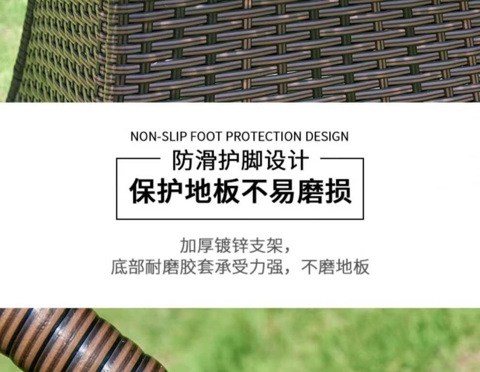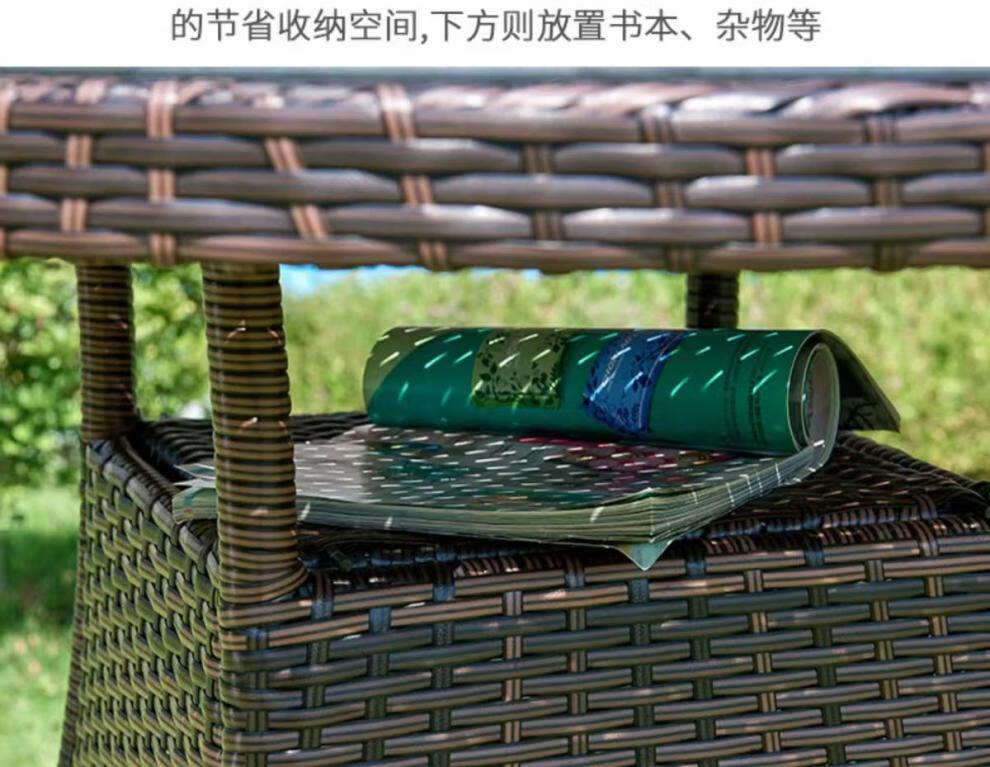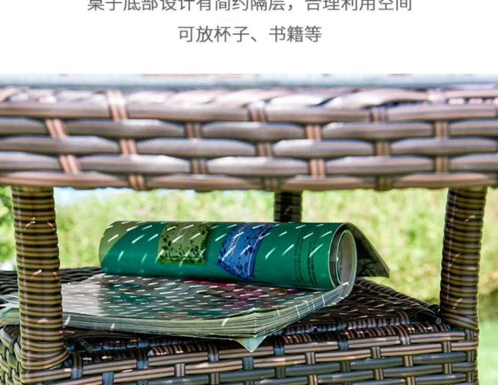 迈途森阳台小桌椅藤椅三件套组合套装户外休闲茶桌椅室外庭院防水靠背椅 4椅+80黑玻璃方桌 带坐垫