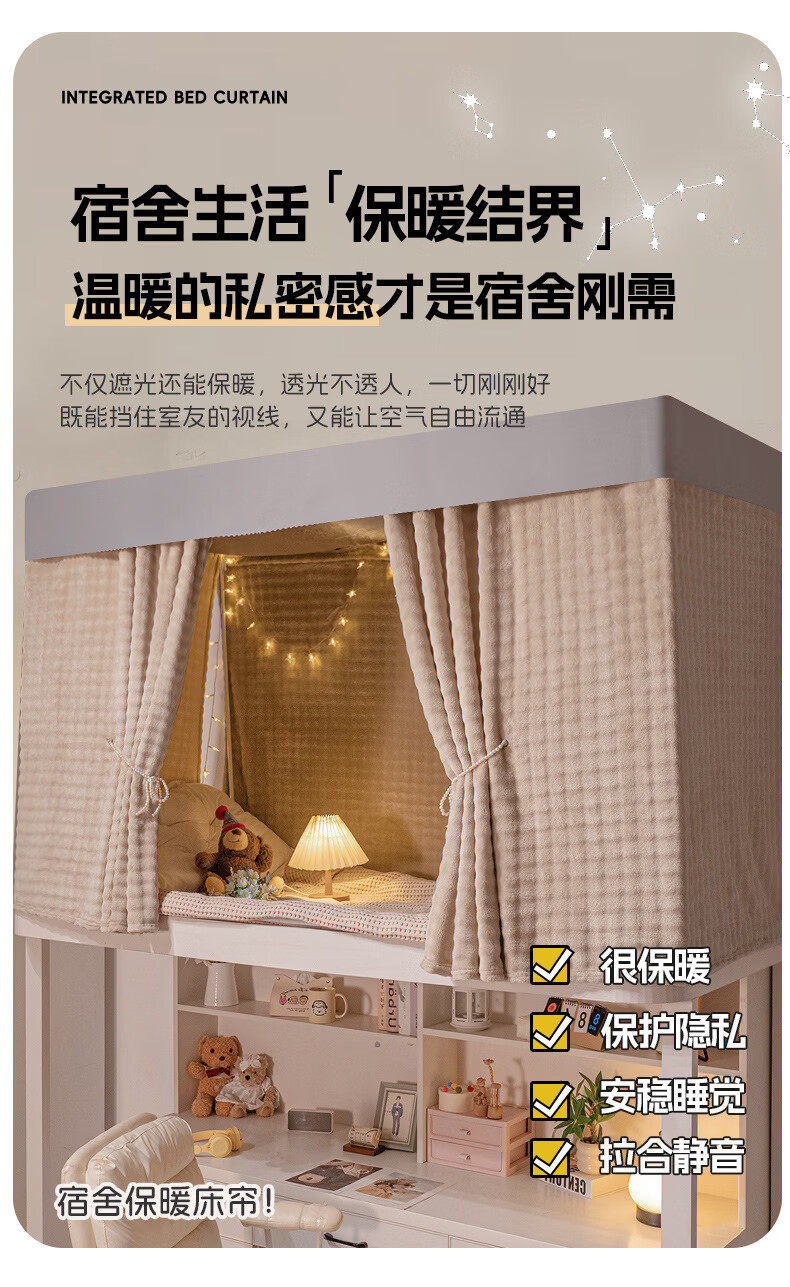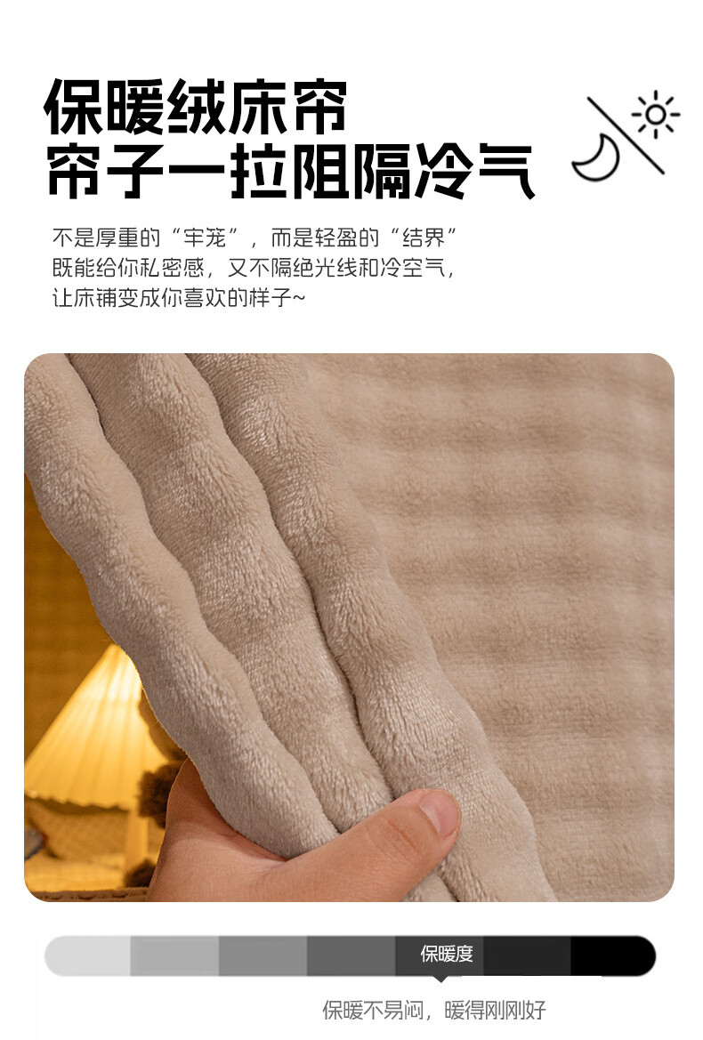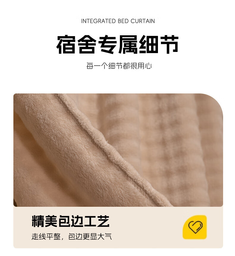 高睿加厚物理遮光宿舍床帘学生寝室上铺男下铺女法兰绒保暖纯色帘子 棕色(A面泡泡B面绒) 1.15米绒床帘一片【一片仅围一正面】
