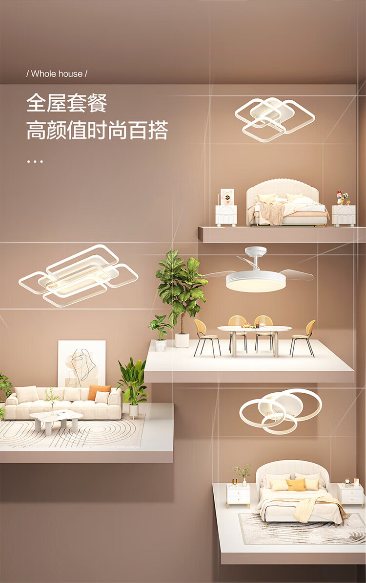 佑家儿童房间风扇灯小尺寸餐厅吊扇灯卧室阳台电扇灯 A款哑光白 18WLED单灯 变频六档