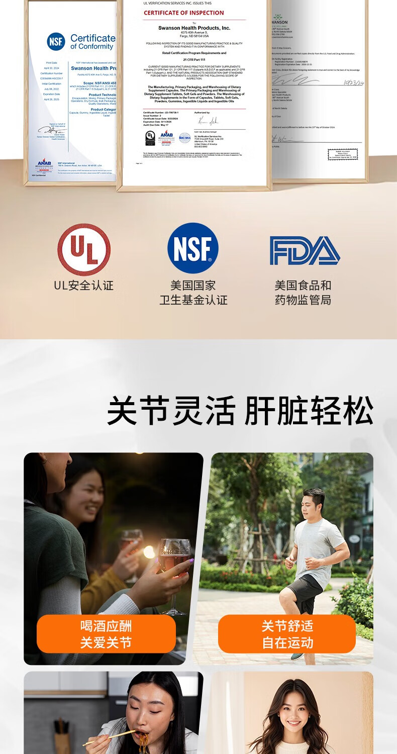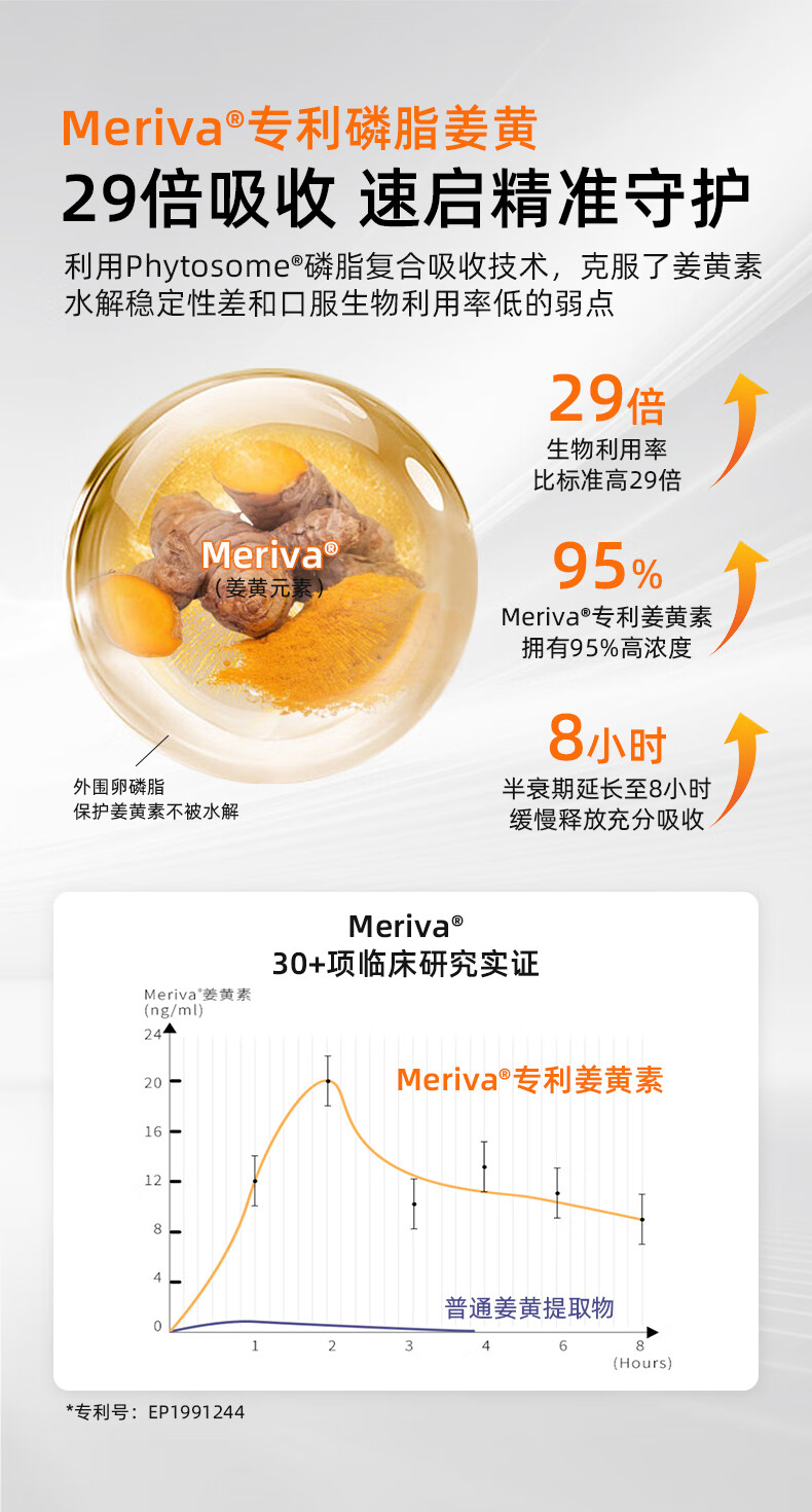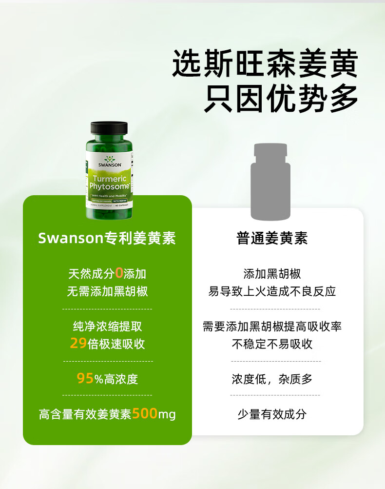 斯旺森美国Meriva专利 29倍高吸收护关节肝代谢 姜黄磷脂胶囊 60粒/瓶