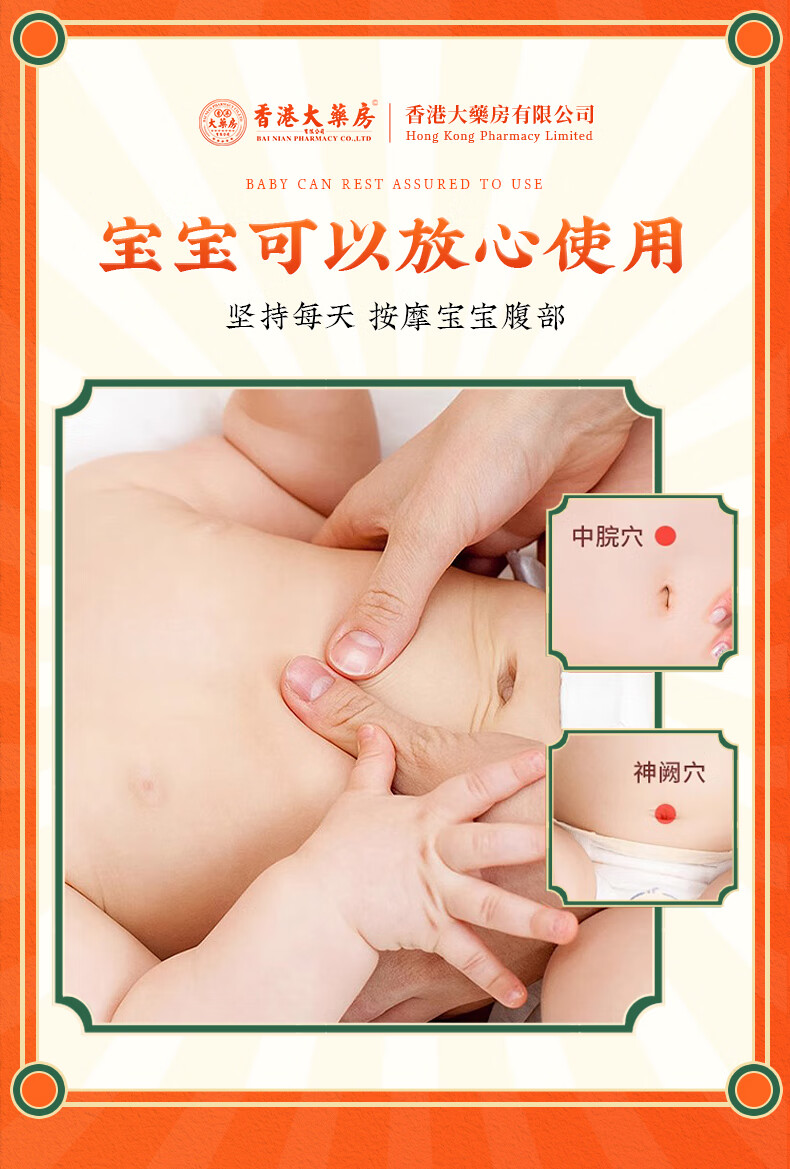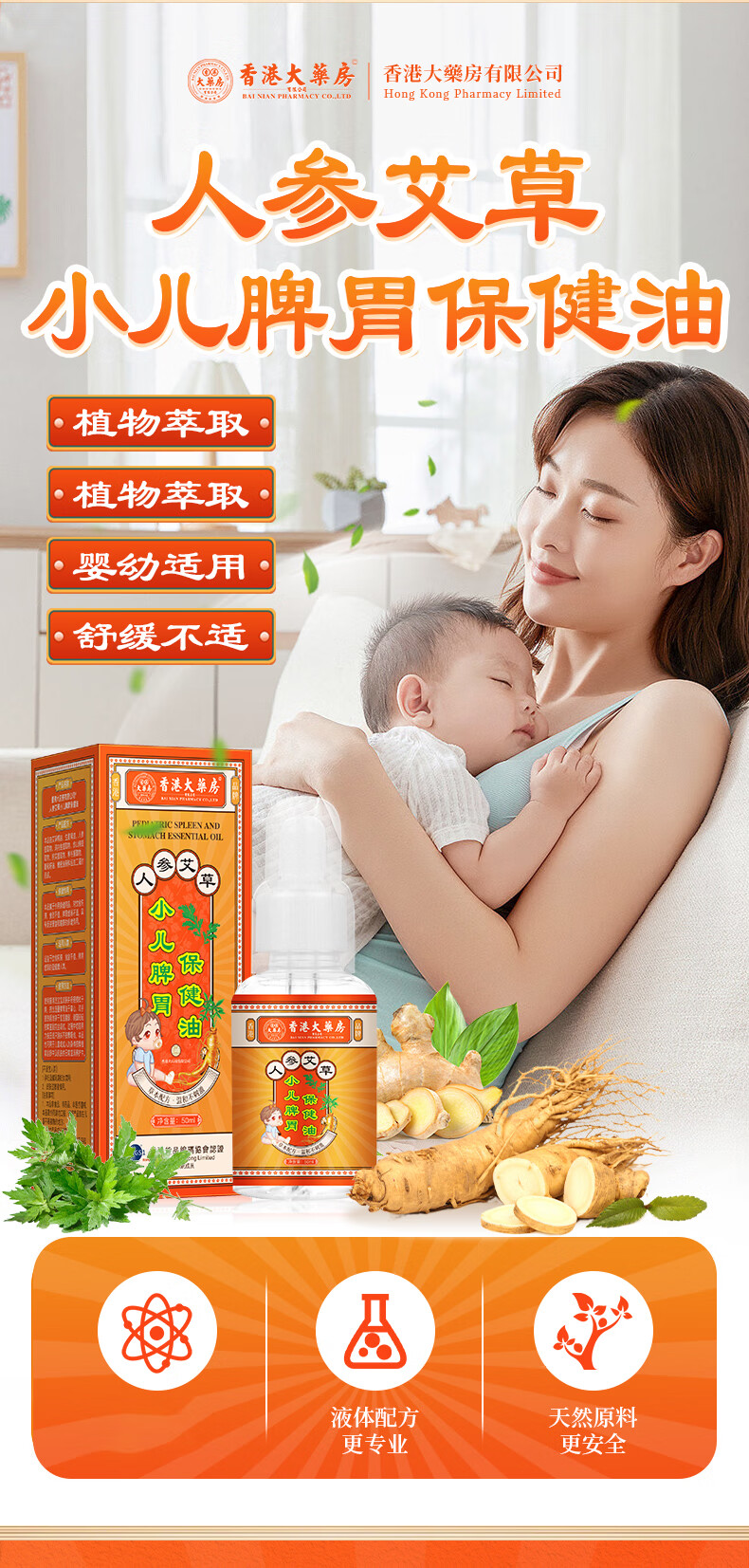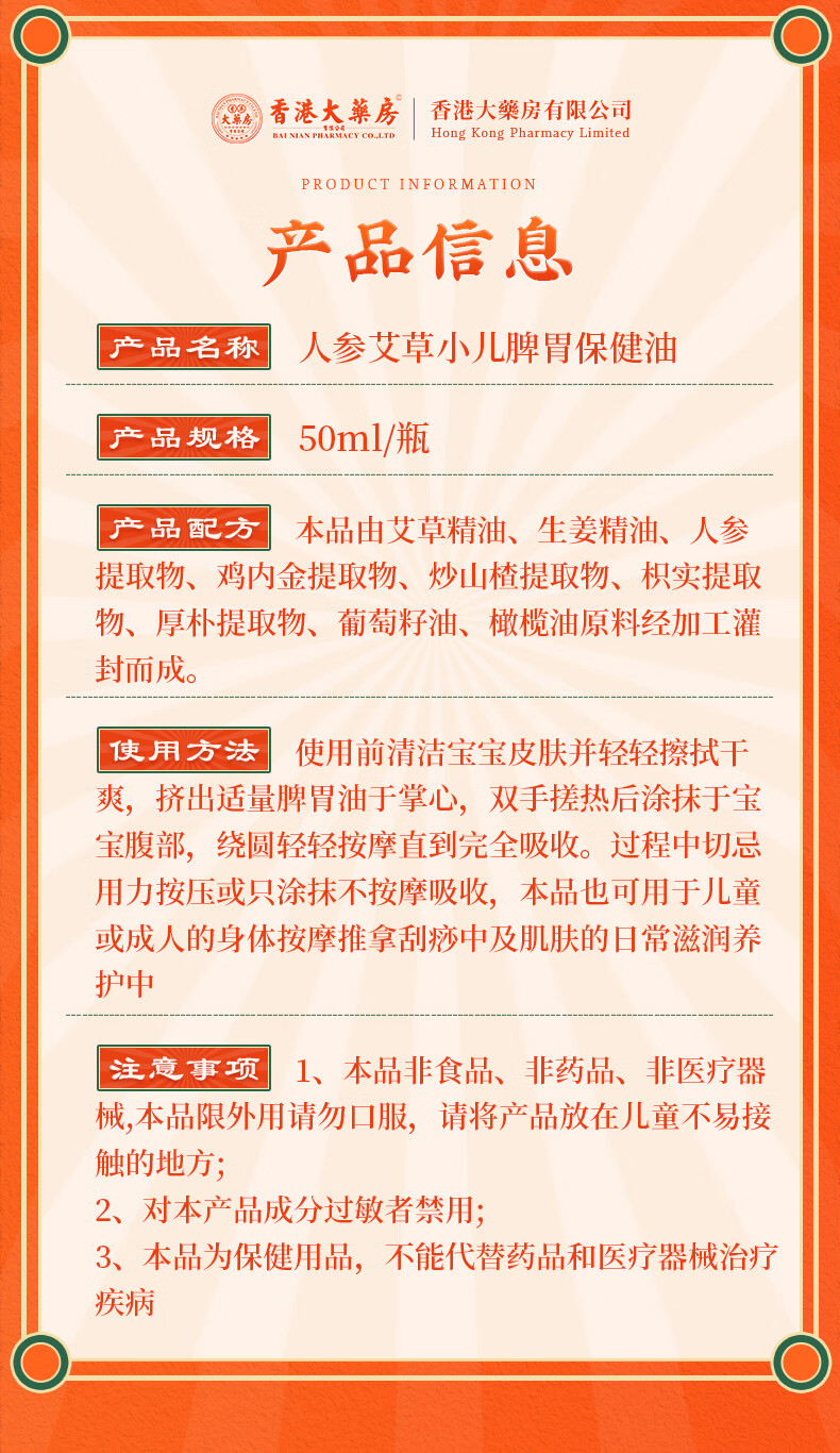 香港大药房有限公司小儿推拿油健脾保健油温通健脾精油儿童推拿积食调理肠胃脾胃虚弱 1瓶【体验装】全网销量NO1