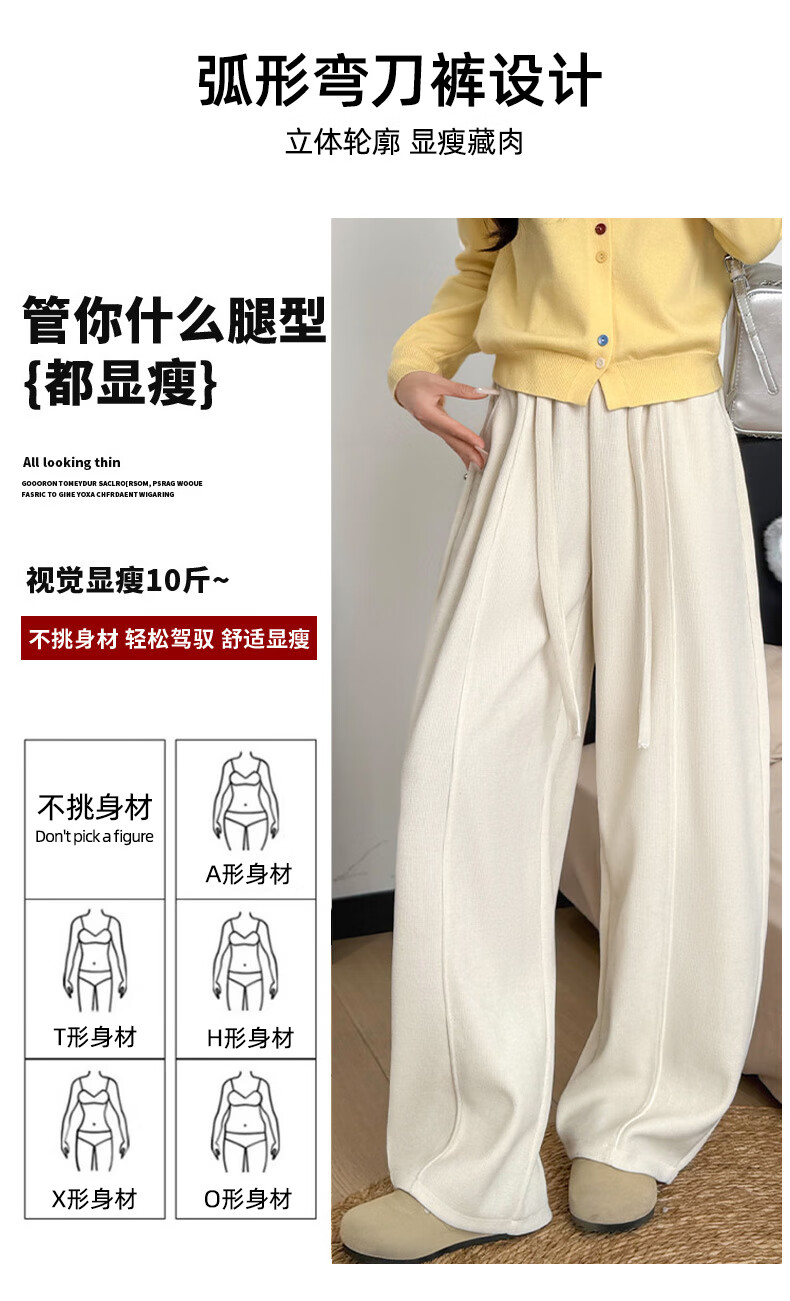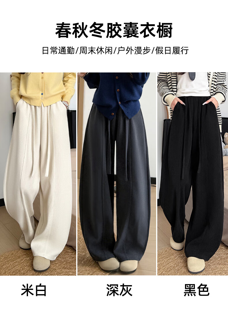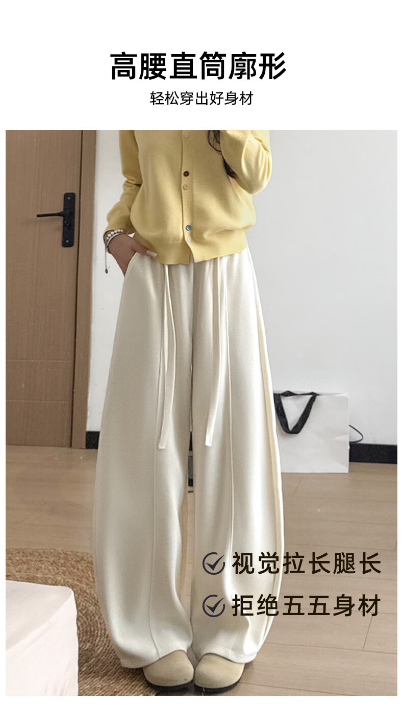 浪莎(LangSha)绵羊毛加绒休闲裤女2025冬季新款高腰垂感直筒防风保暖阔腿裤子女 米白-加绒 L 111-125斤