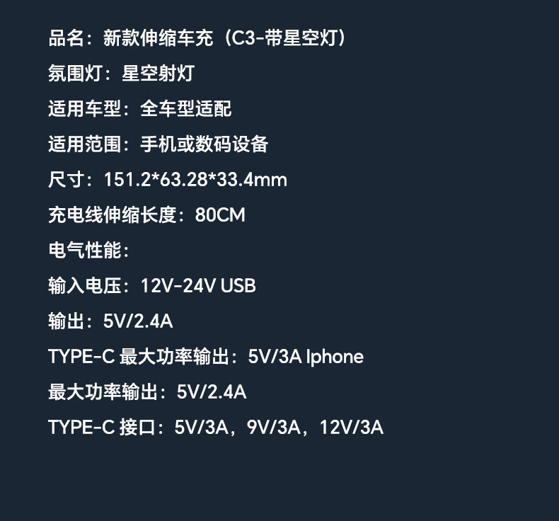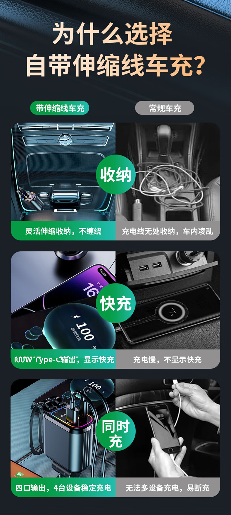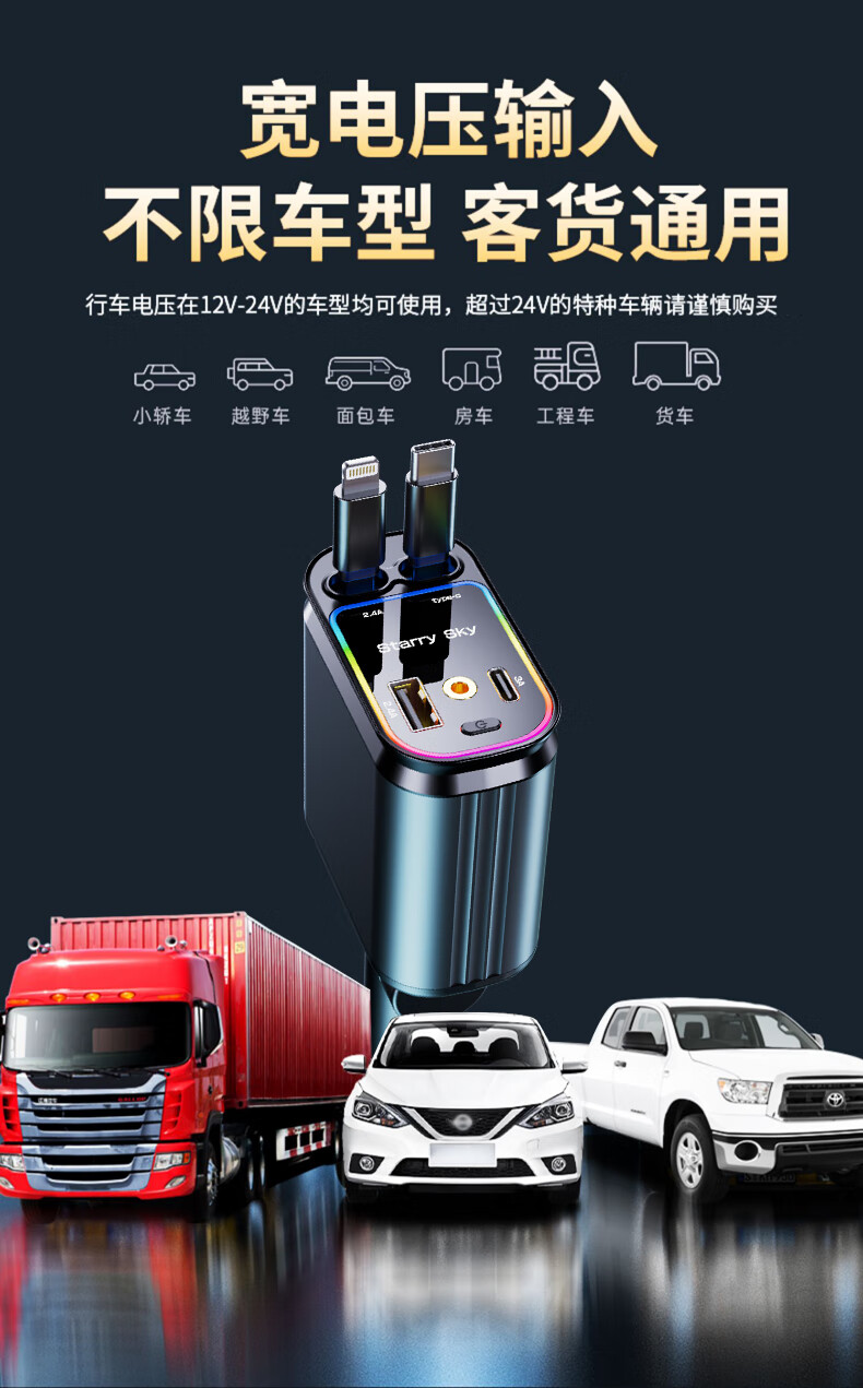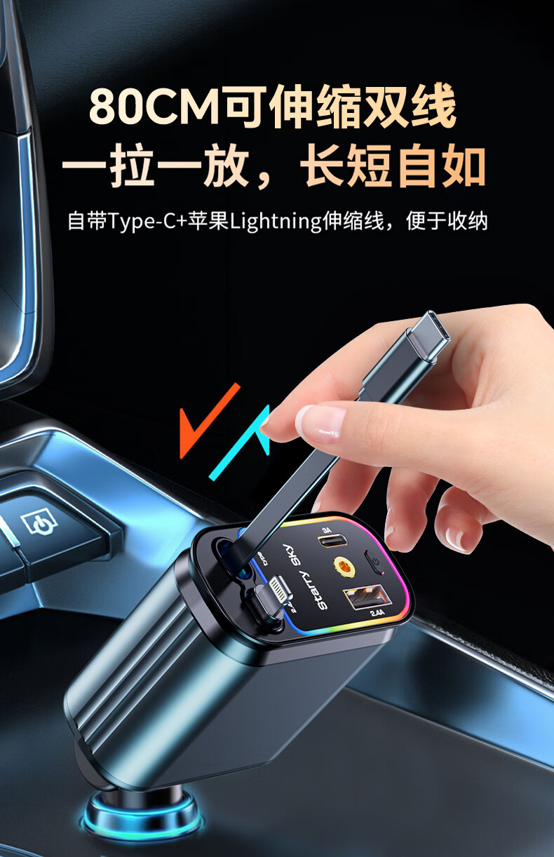飒望德国车载充电器超级快充线一拖三可伸缩三头点烟器快充转换器苹果 【240W升级版】紫色星空顶 提速400%