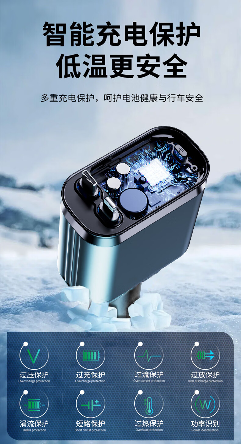 PSOOO汽车应急启动电源充气泵一体机适用于小米汽车载电瓶强起搭电宝多功能一体机紧急打火神器 【不限排量】送加粗夹