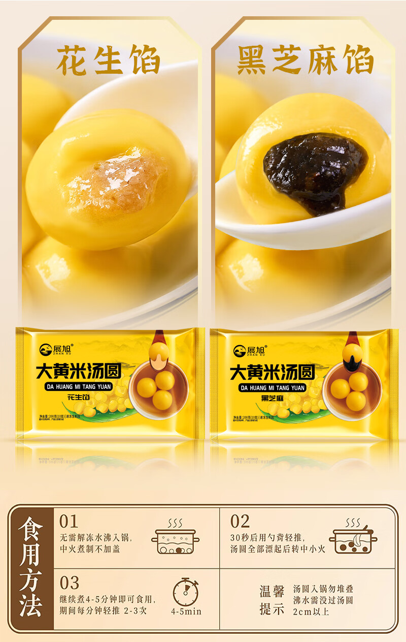 展旭大黄米黑芝麻花生汤圆200g/袋 【花生味】大黄米汤圆3袋