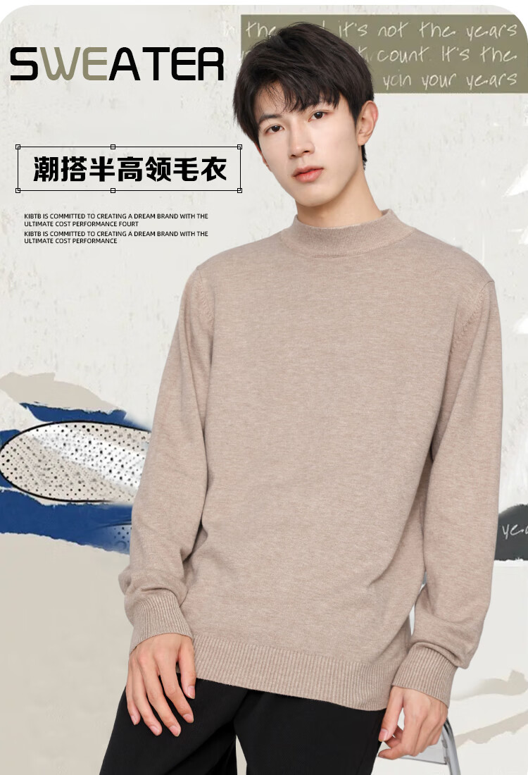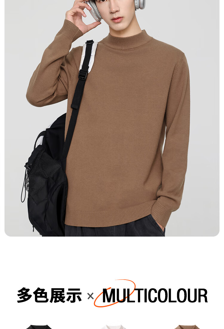真维斯(JEANSWEST)毛衣男秋冬新款针织衫青少年针线衫内搭保暖百搭纯色打底衫毛线衫 深灰(加绒高领) L (推荐110-130斤)