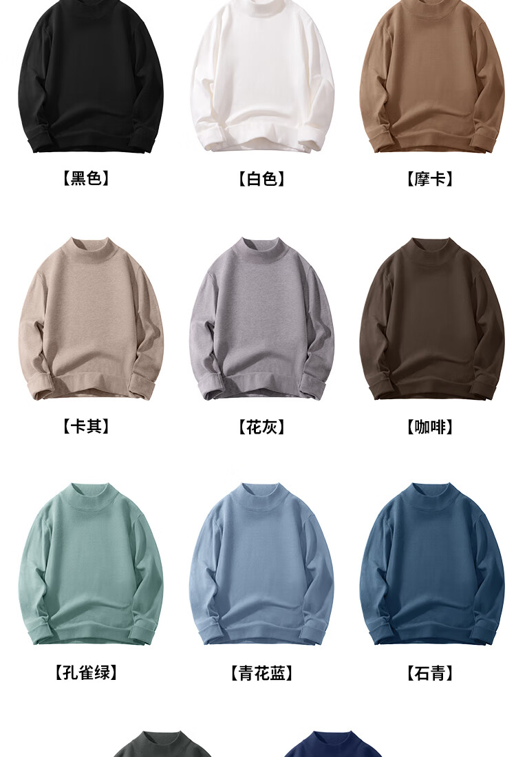 新款中老年男士长袖t恤厚款秋衣爸爸装上衣纯棉口袋半高领打底衫 【1208款】2件装-乌兰+卡其绿 3XL 175-200斤