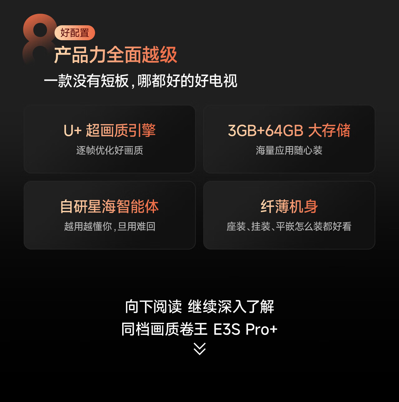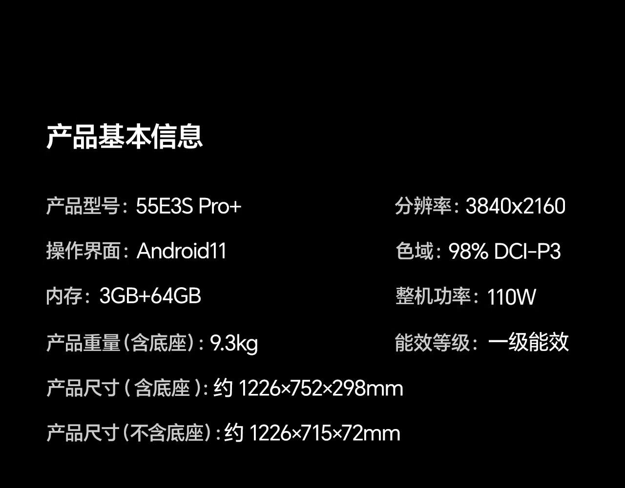 海信电视 55E3S-Pro+ 55英寸 万元级高色域 抗反光无倒影 144Hz高刷 Wi-Fi6 一级能效 E3QHPro升级 55英寸
