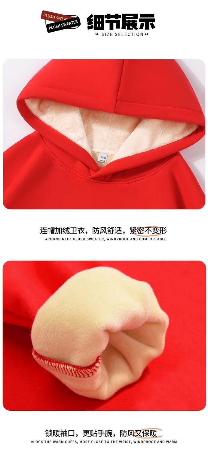 唐狮(TonLion)童装儿童加绒连帽卫衣秋冬2025新款男女童宽松百搭上衣中大童外套 粉色净版【支持1件定制图案】 130