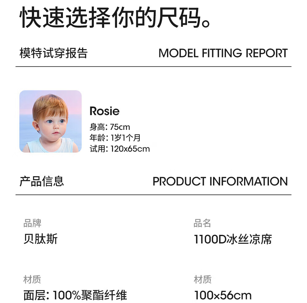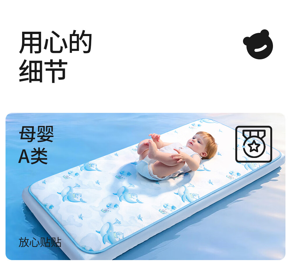 贝肽斯婴儿凉席宝宝透气冰丝凉垫儿童幼儿园午睡床席子云端漫步120*65cm