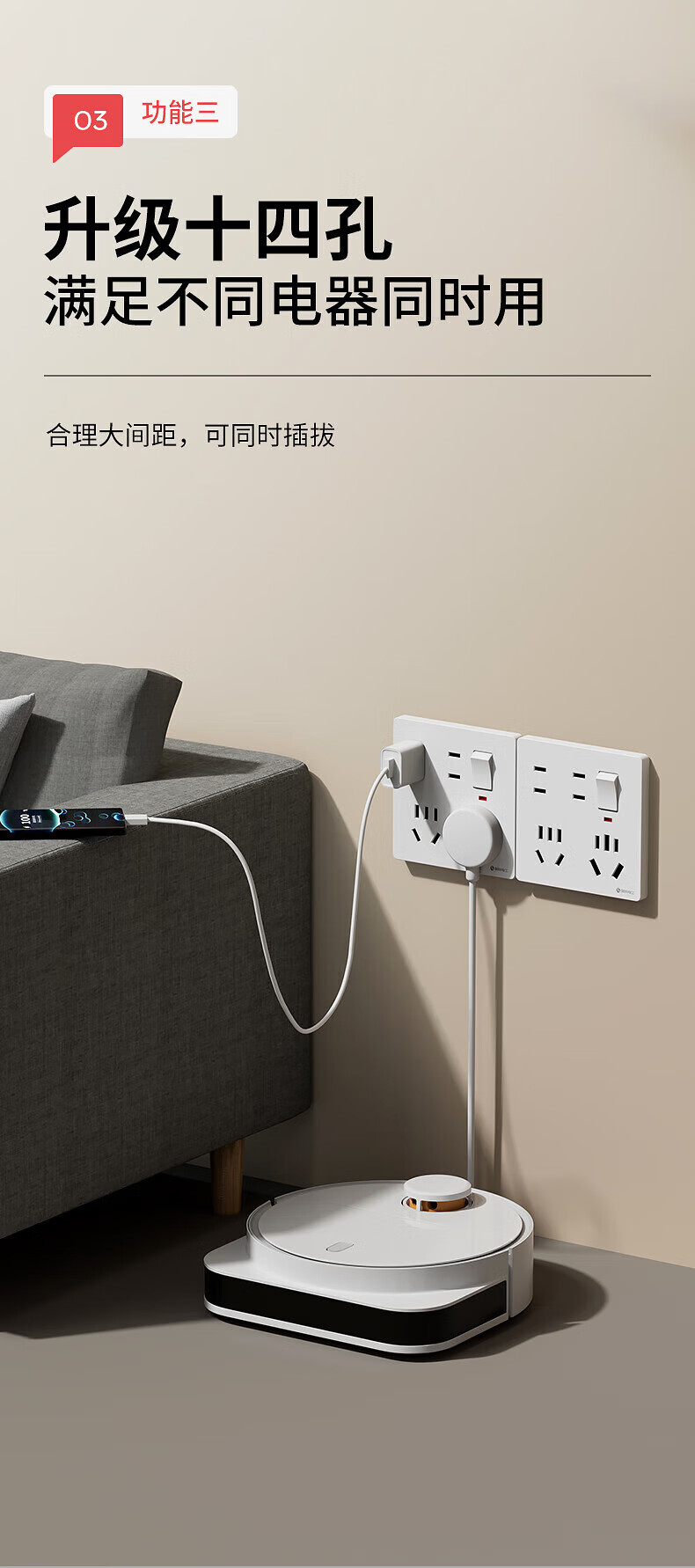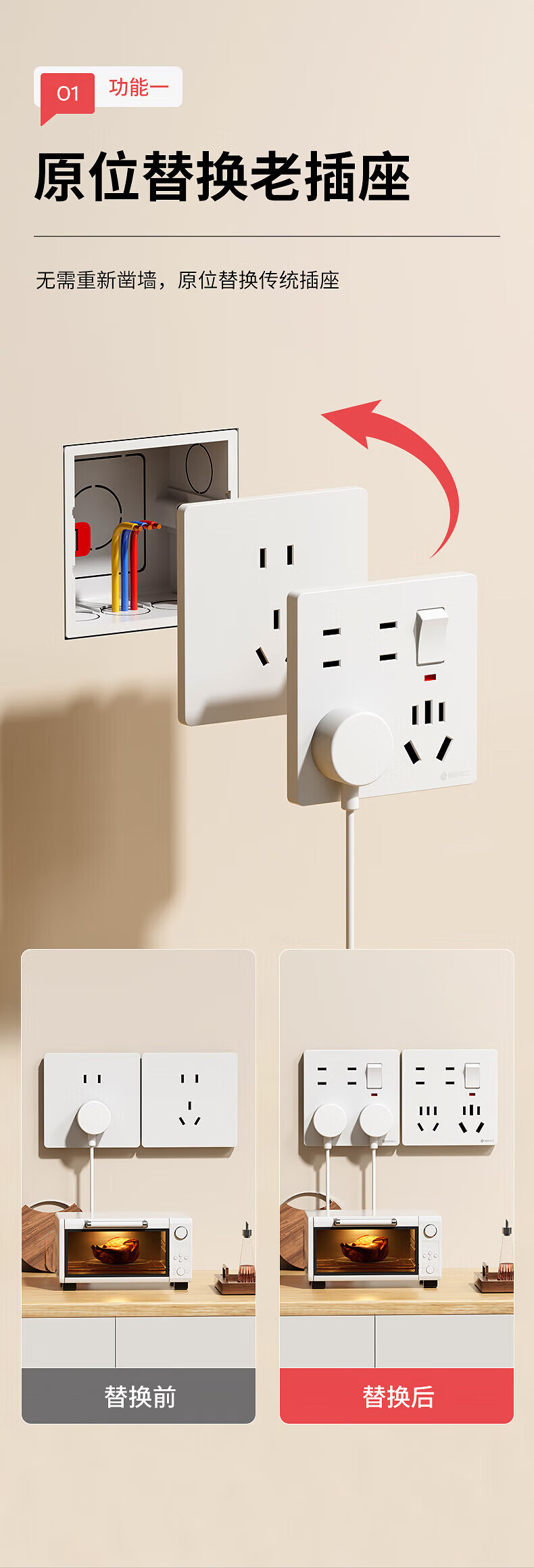 捷波朗插座一转多扩展原位替换免打孔转换器插排厨房延长多功能插座拓展 【向右扩展】白色五位三十五孔