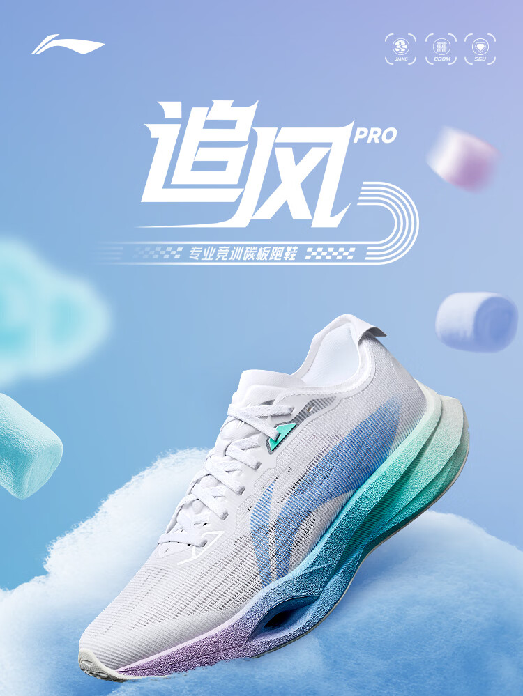 李宁追风pro|碳板跑步鞋男女鞋减震轻便透气百搭竞速专业运动鞋 标准白-3 41