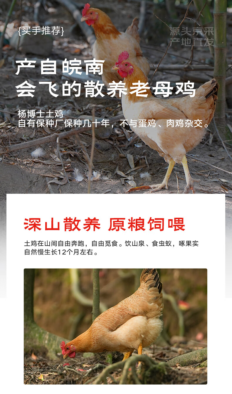杨博士 皖南散养土鸡老母鸡 净重1.6斤及以上 含鸡胗鸡心鸡肉源头直发