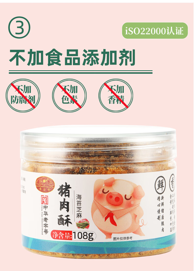 黄金香中华老字号 儿童营养猪肉酥松108g 海苔芝麻 烘焙寿司食材零食品