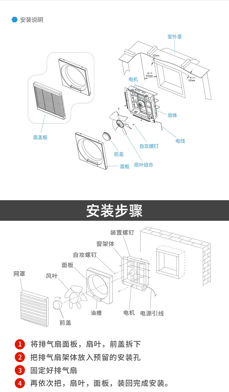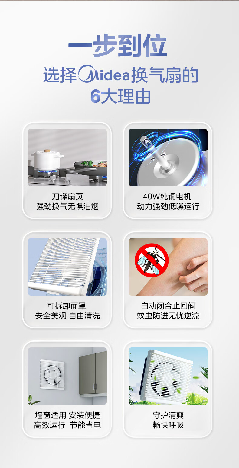 美的(Midea)【窗排】窗式排气扇换气扇卫生间厨房墙用排风扇10寸抽风机